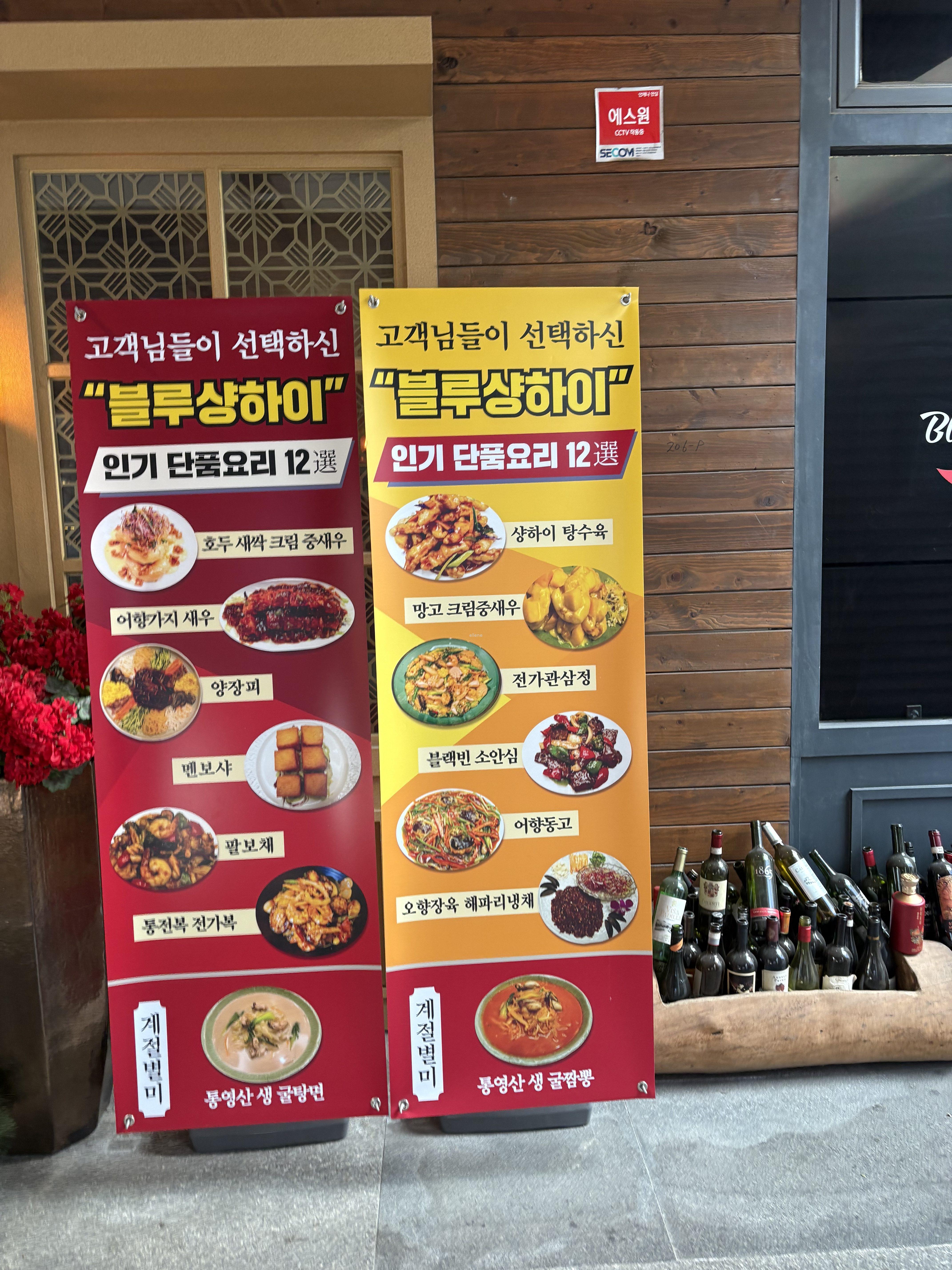 가족들과 함께 분당에 갈 일이 있던 날, 오랜만에 중식이 먹고 싶어져서 유명한 중식당 <블루샹하이>를 찾았어요.