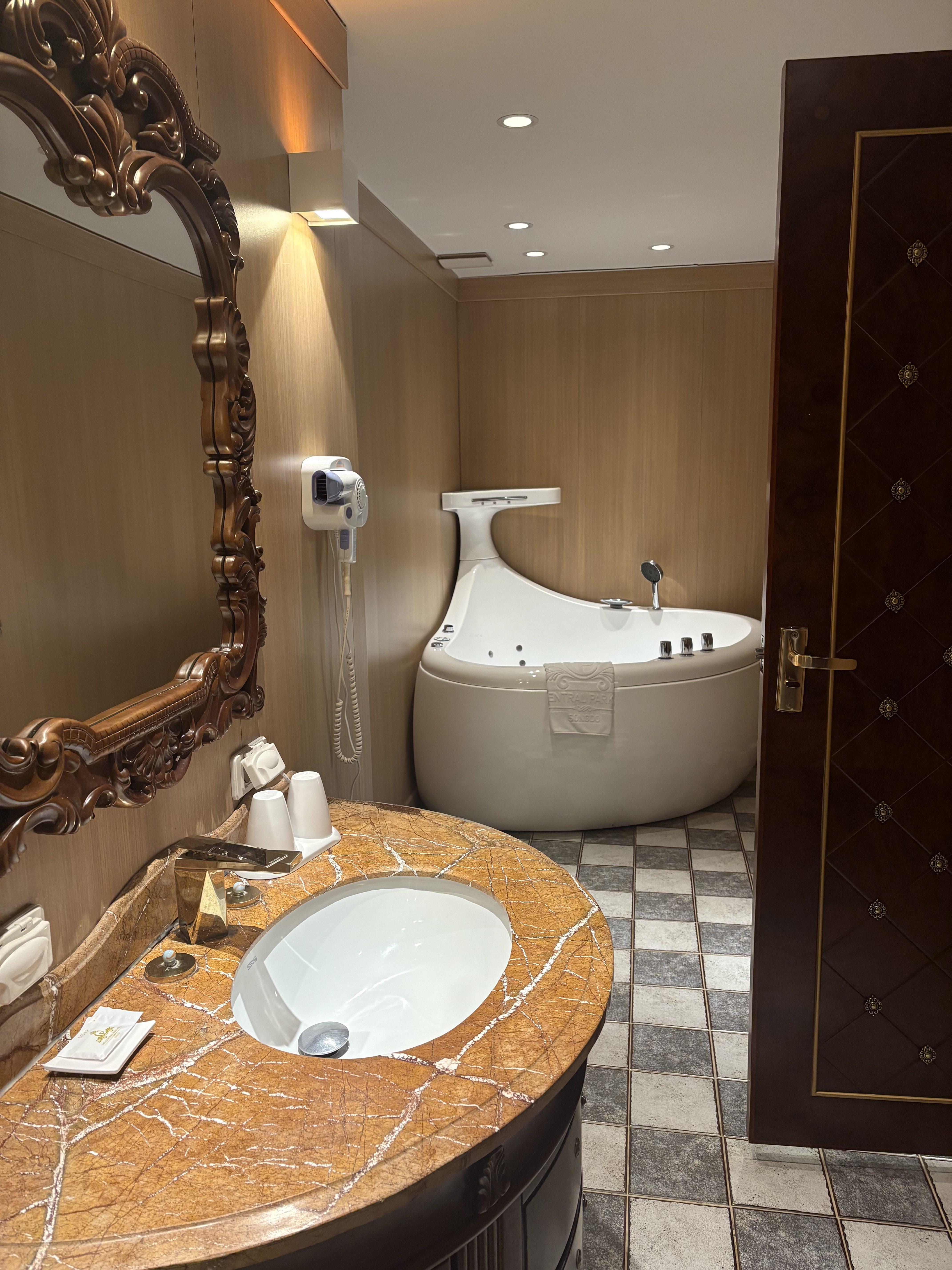 시설은 낙후되었고 인테리어도 약간은 촌스러운데, 있을 건 다 있습니다. 침대도 넓고 특히 버블욕조는 아기를 데리고 놀기 참 좋아요. - 뷰: 굿.