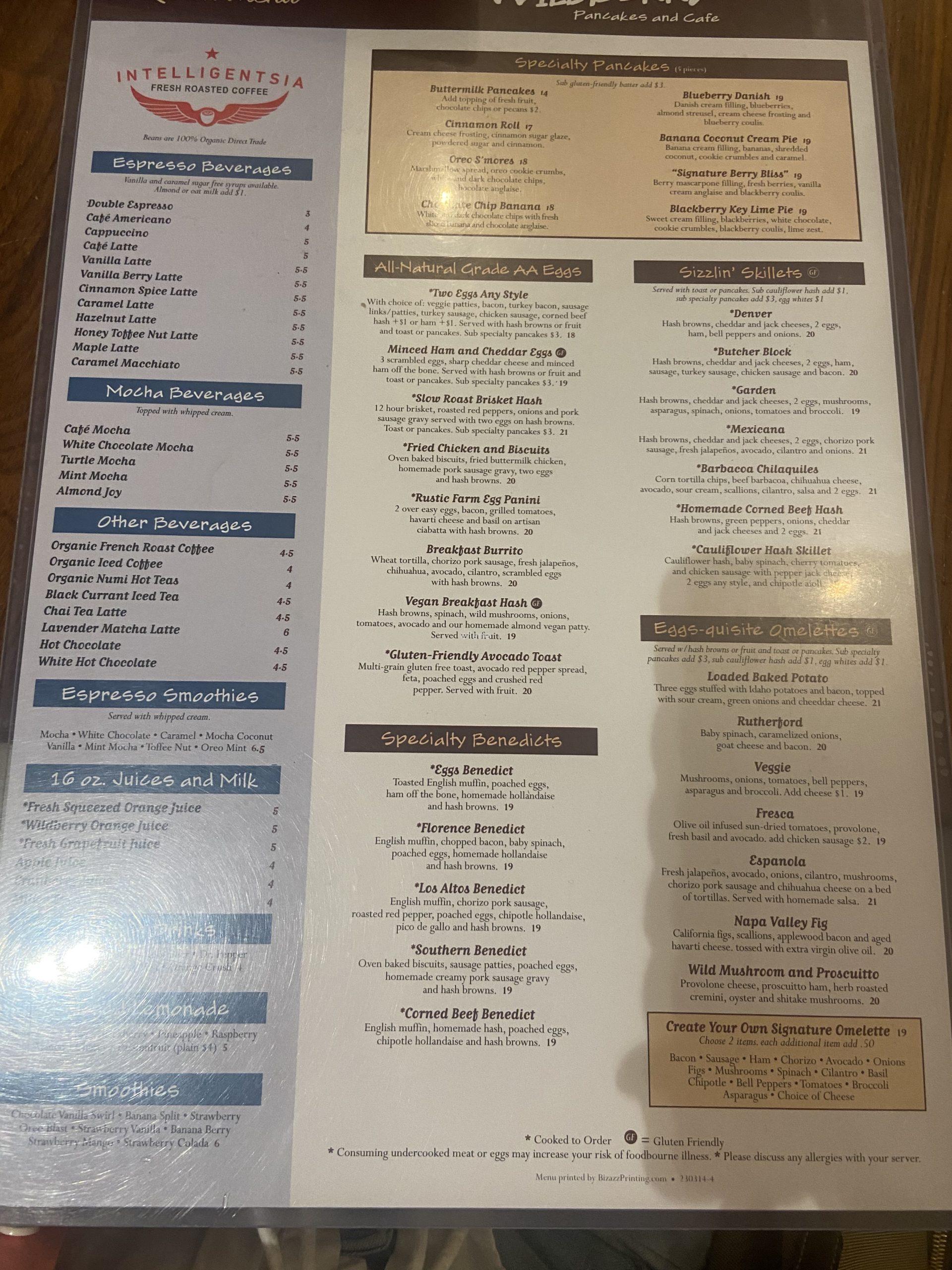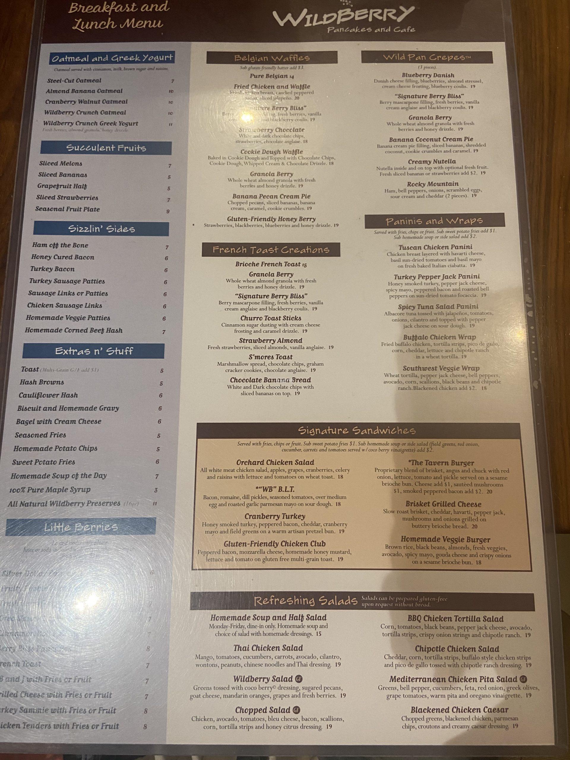 와일드베리는 팬케이크 외에도 프렌치토스트, 빠니니, 와플 등 다양한 브런치 메뉴를 판매하고 있다 .가격은 메뉴 당 15~25불 선. 한국보다는 약간 더 비싸다.
