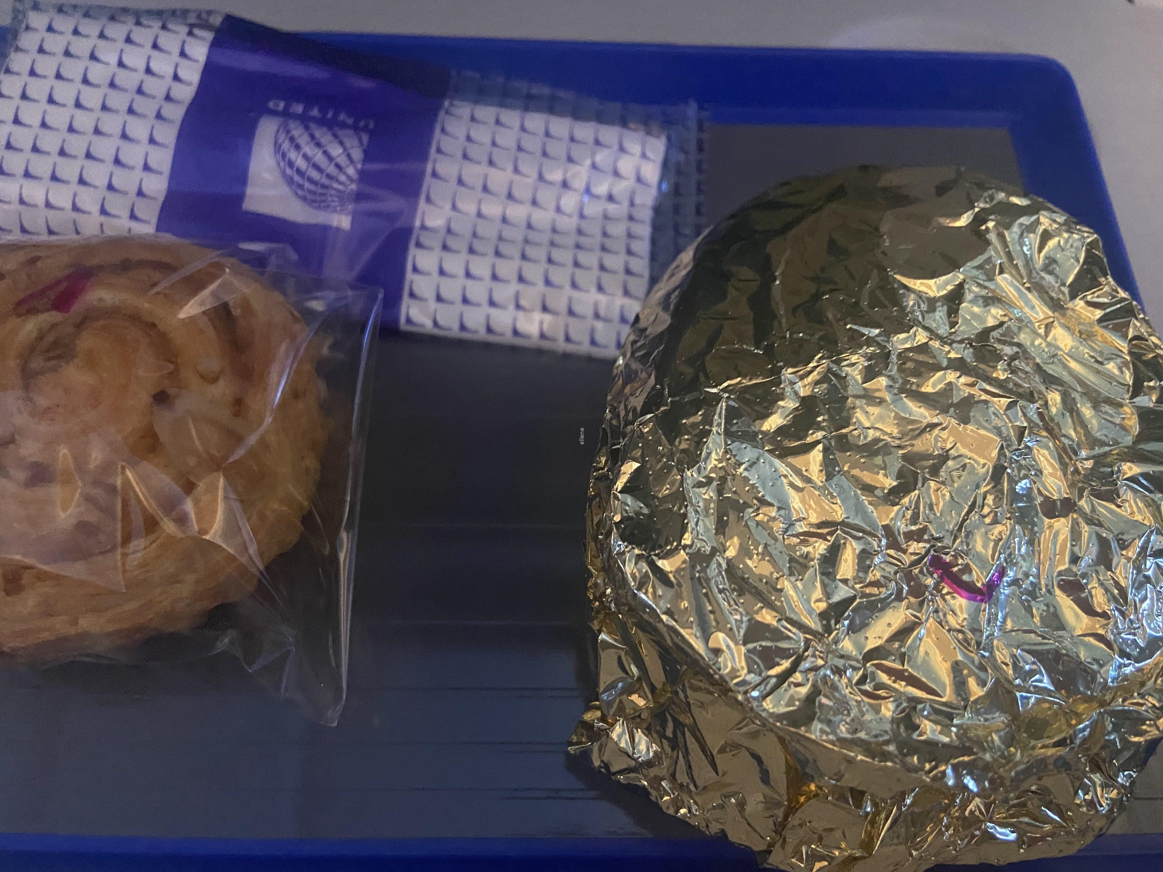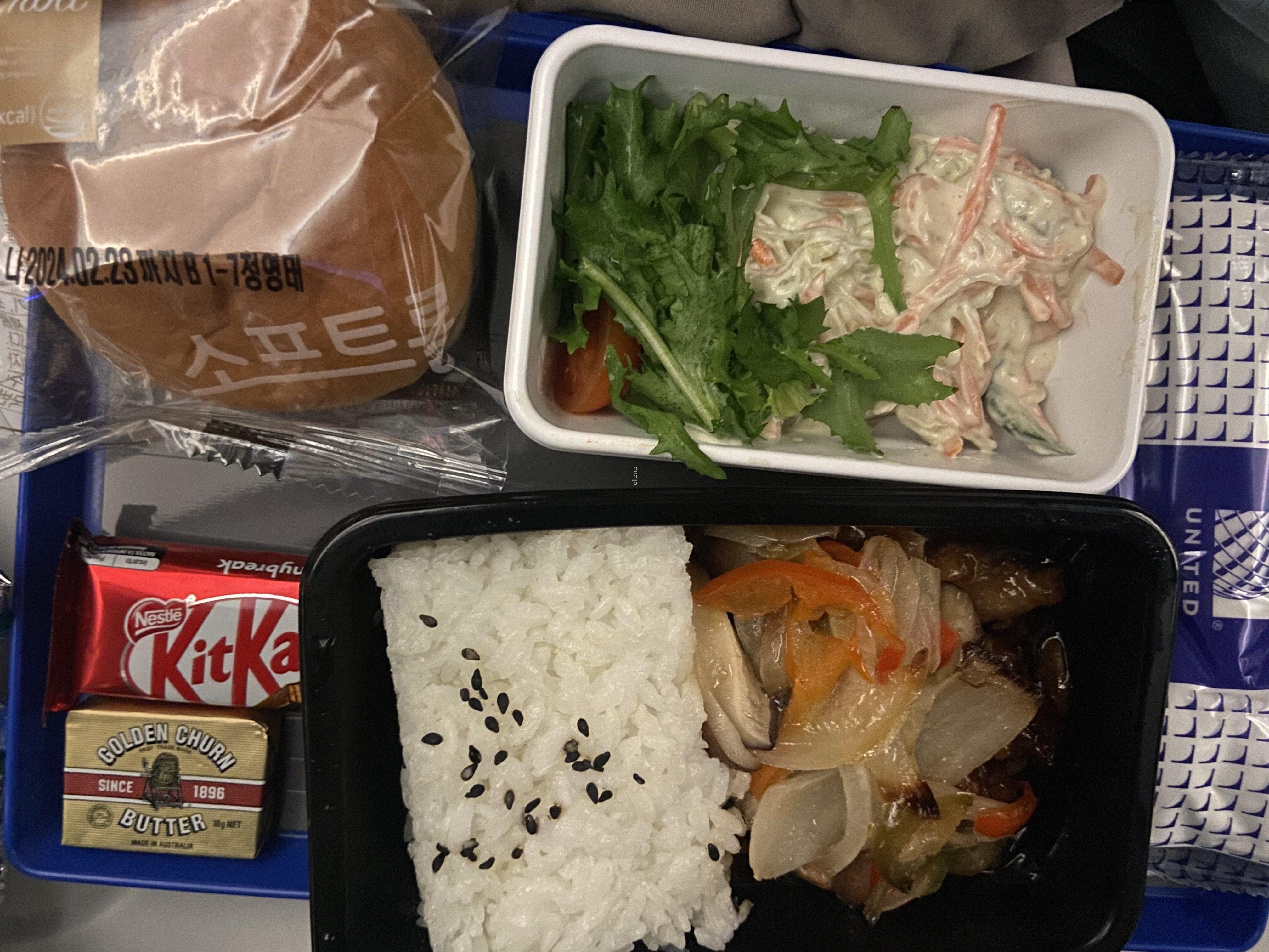 비행기 이륙 후 30분 쯤 지났을 때 기내식이 나왔다. 악명 높은 유나이티드 기내식은 어떨까.