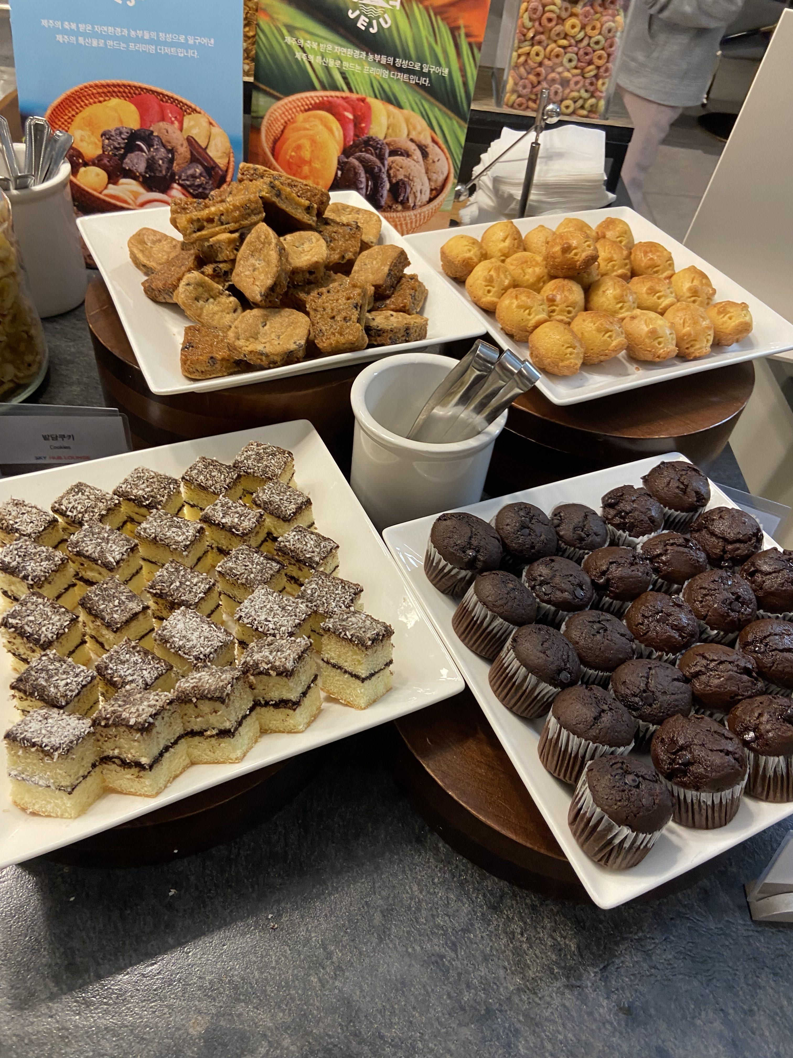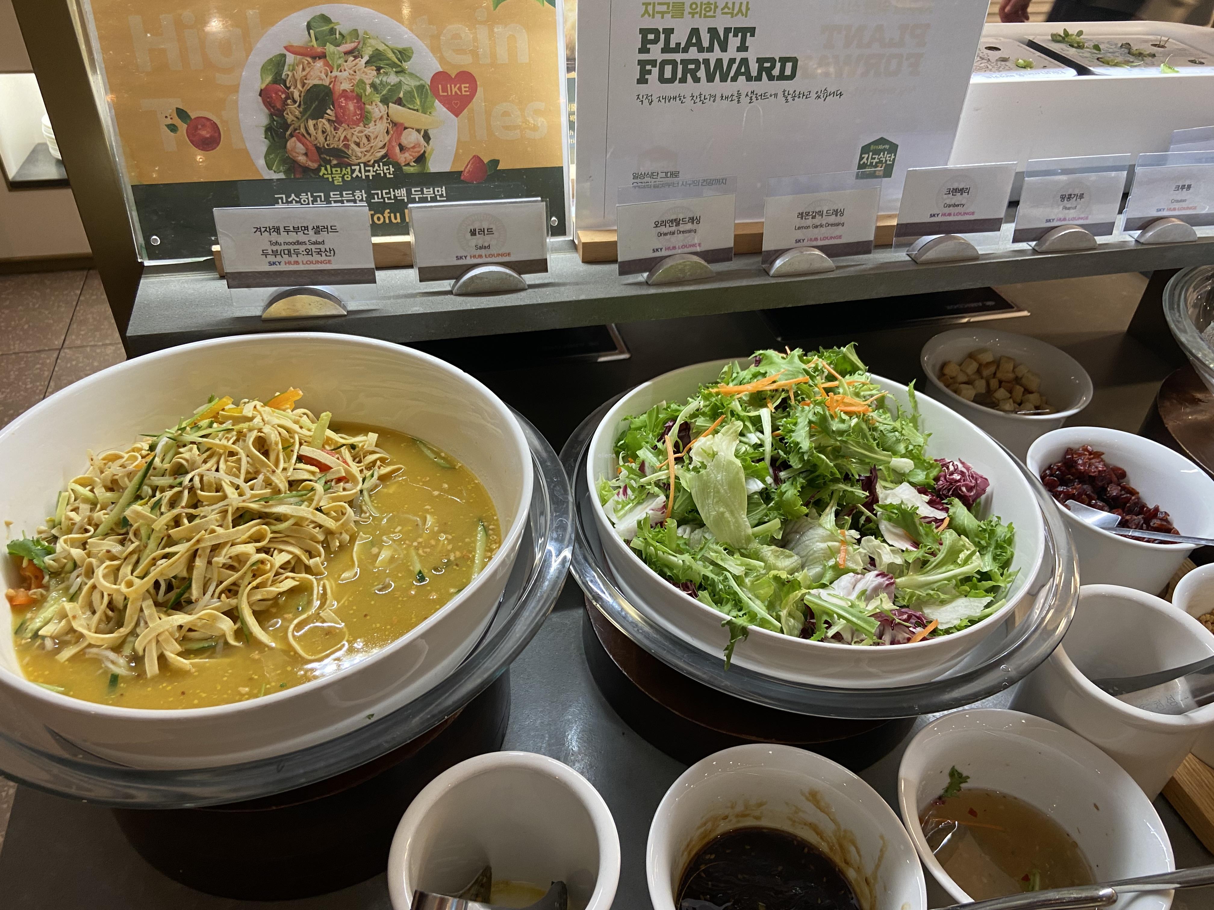 오랜만에 들른 이 곳엔 역시 샐러드부터 간단한 식사 메뉴, 디저트, 과일 등 다양한 음식이 구비되어있었다.
