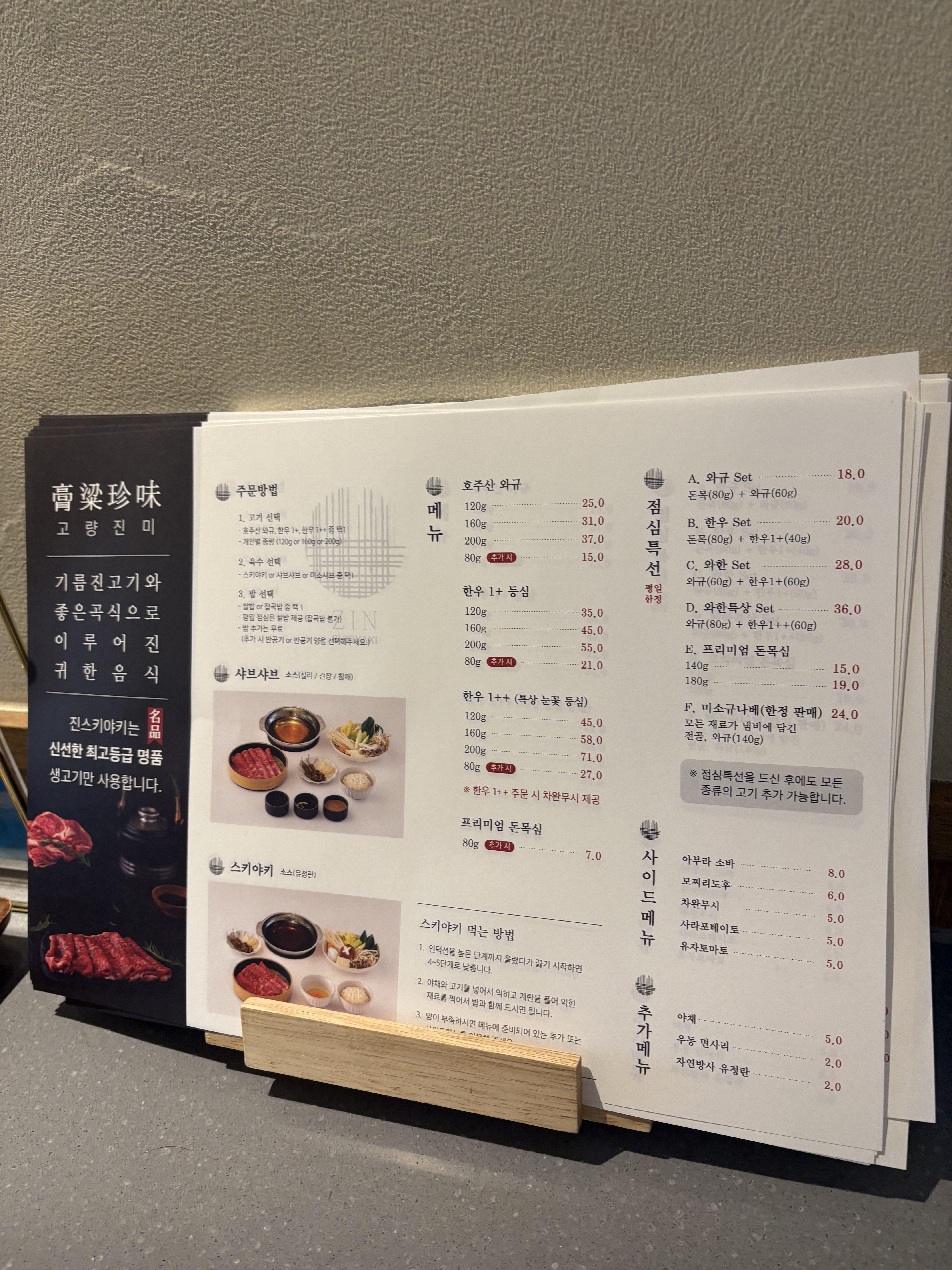 진 스키야키 런치 메뉴
