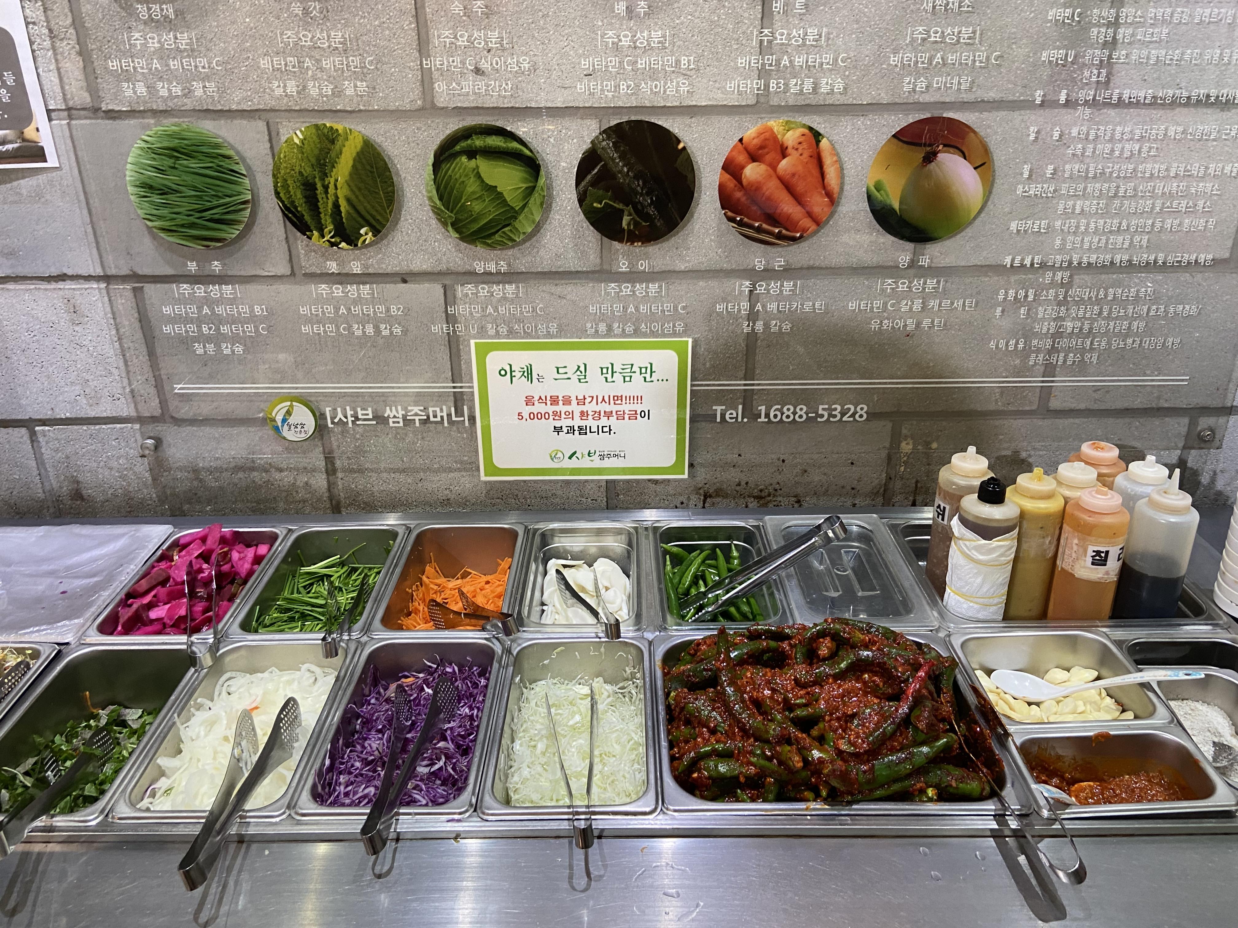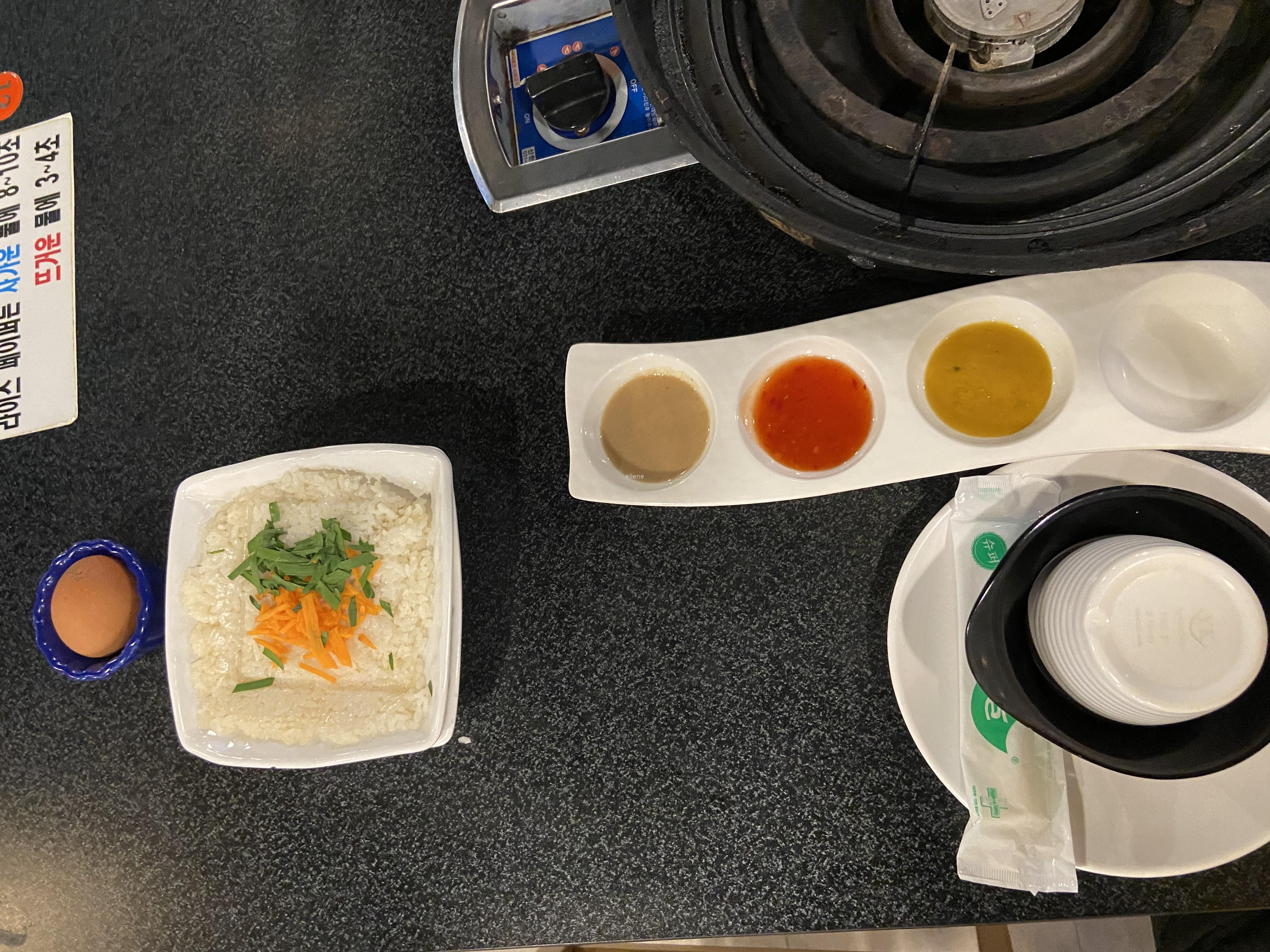 테이블에 깔려있지 않던 김치, 마늘, 쌈장도 여기서 가져갈 수 있다. 먹고 싶은 만큼 편안하게 가져다 먹을 수 있는 이런 시스템이 참 마음에 들더라.