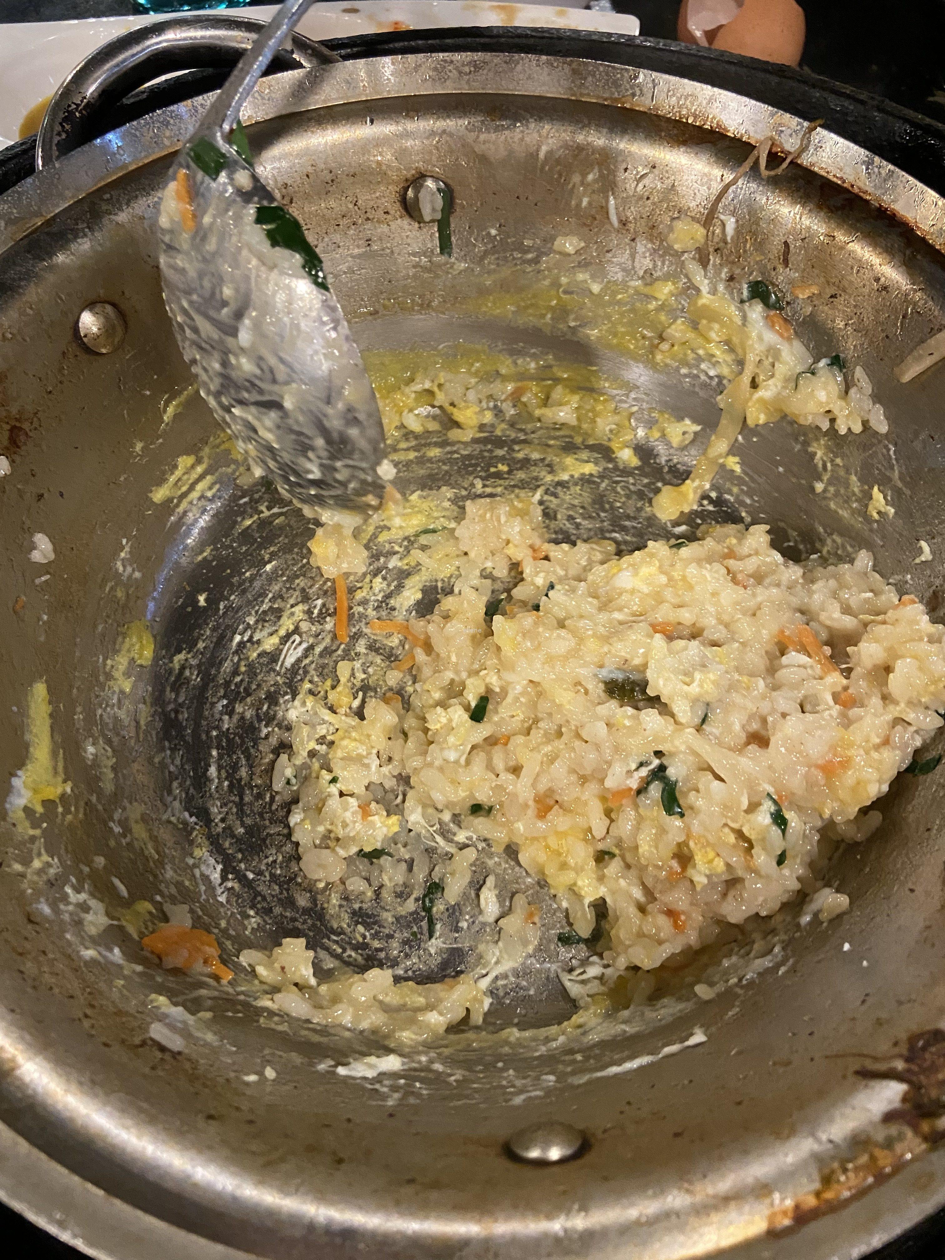 마지막으로, 가이드된 죽 만드는 방법을 참고해 남은 국물로 죽을 만들어 먹었다. 달걀까지 야무지게 넣어서 익히고 볶으니 3분 만에 맛있는 죽이 완성됨! 이것도 칼국수 못지 않게 맛이 기가 막히다. 짭짤하고 깊은 맛의 육수와 고소한 계란이 어우러지면 아무리 배가 불러도 남기지 못하고 다 먹게 된다. 이렇게 우리는 샤브샤브부터 월남쌈, 칼국수, 죽까지 모든 음식을 풀코스로 먹었다.