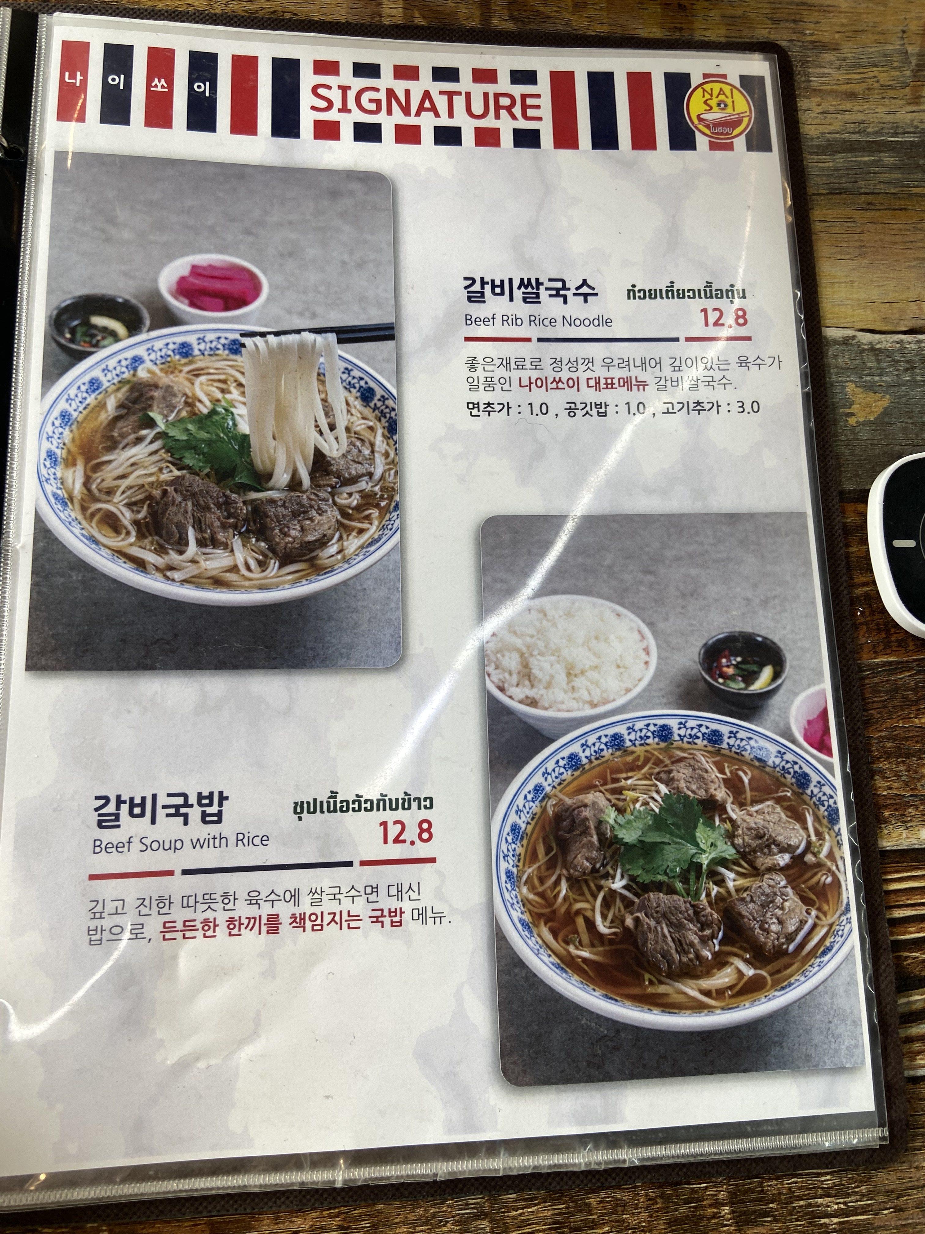 그런데 이번에 나이쏘이 메뉴판을 보니 시그니처 메뉴로 갈비쌀국수를 밀고 있어서, 한 번 먹어볼까 싶은 충동이 아주 살짝 생겼다.