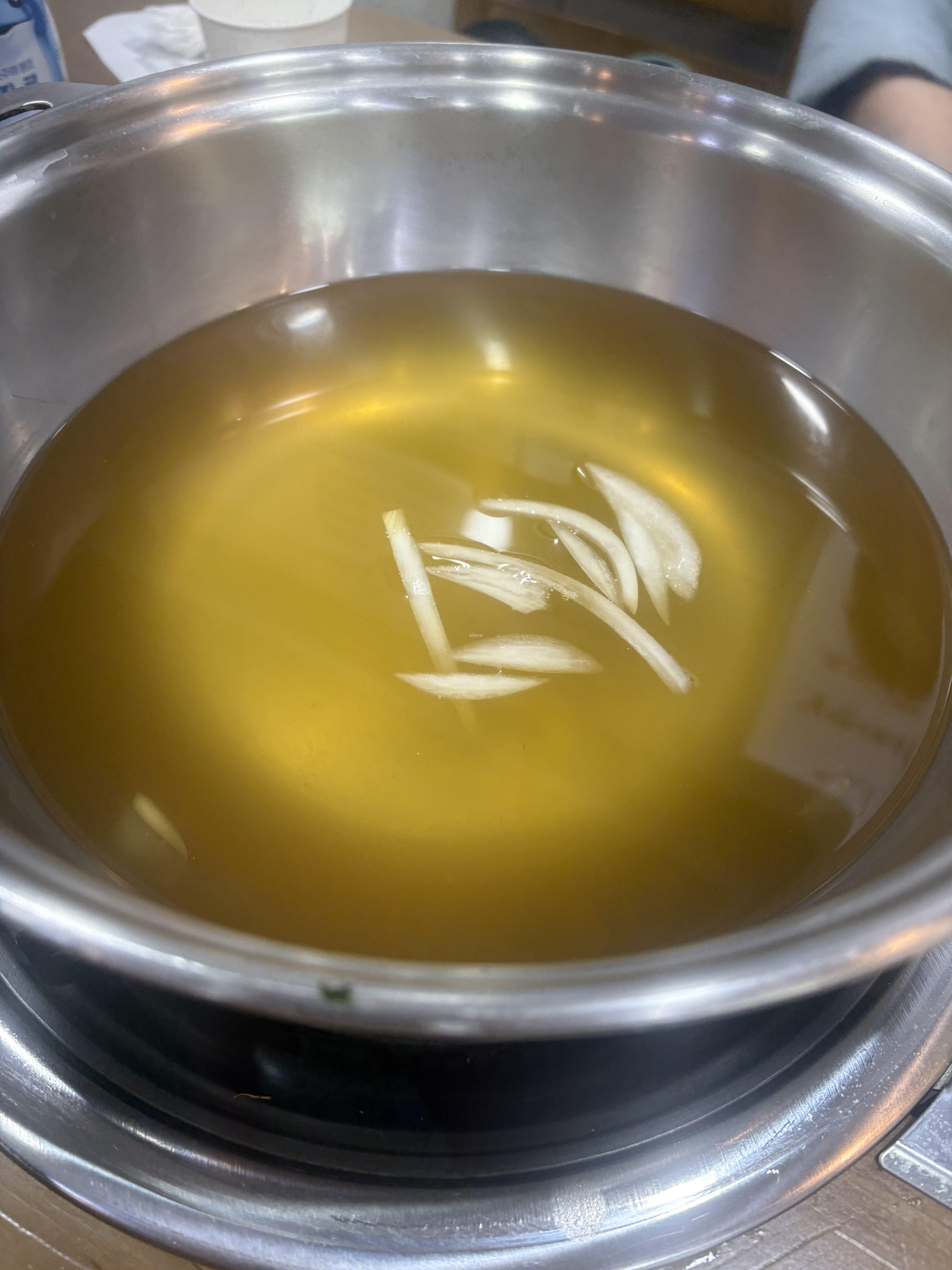 테이블 정 중앙에는 육수가 담긴 냄비가 올라가고,