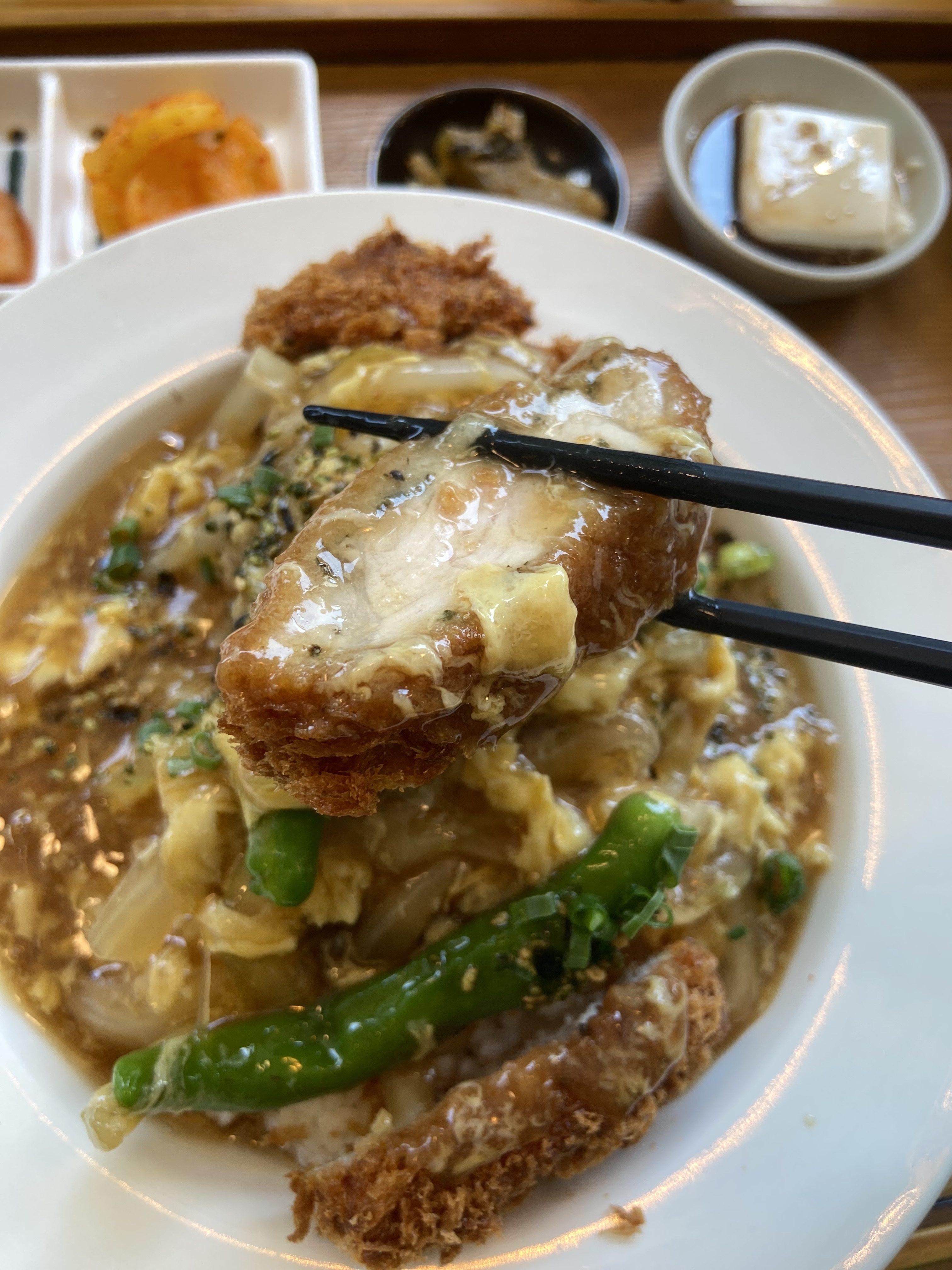 나는 가츠동을 주문했다. 참고로 어떤 덮밥 메뉴를 주문해도 한상차림으로 제공된다고 한다.