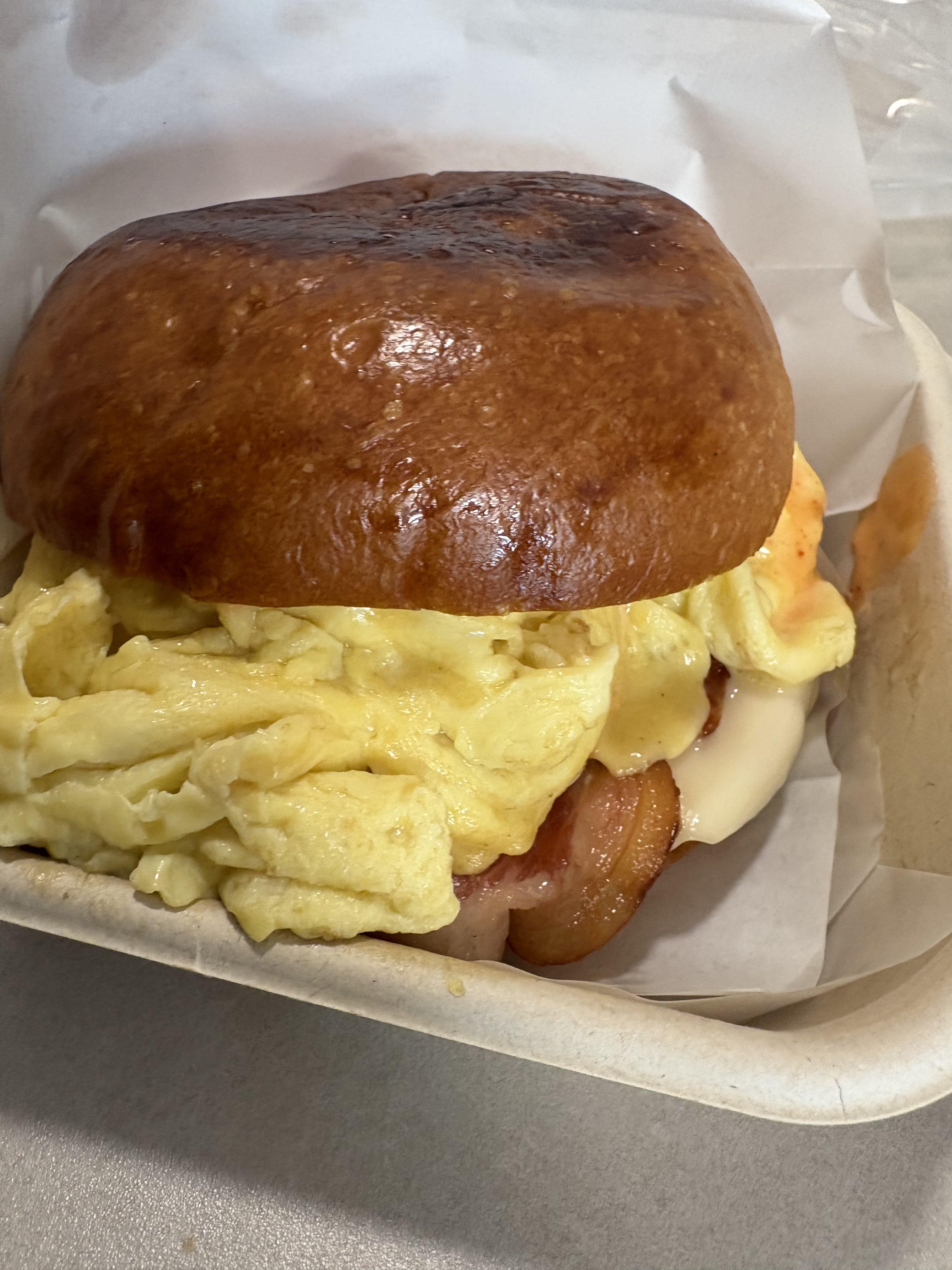 계란 뿐 아니라 베이컨, 치즈도 들어있어서 아주 고소했어요.