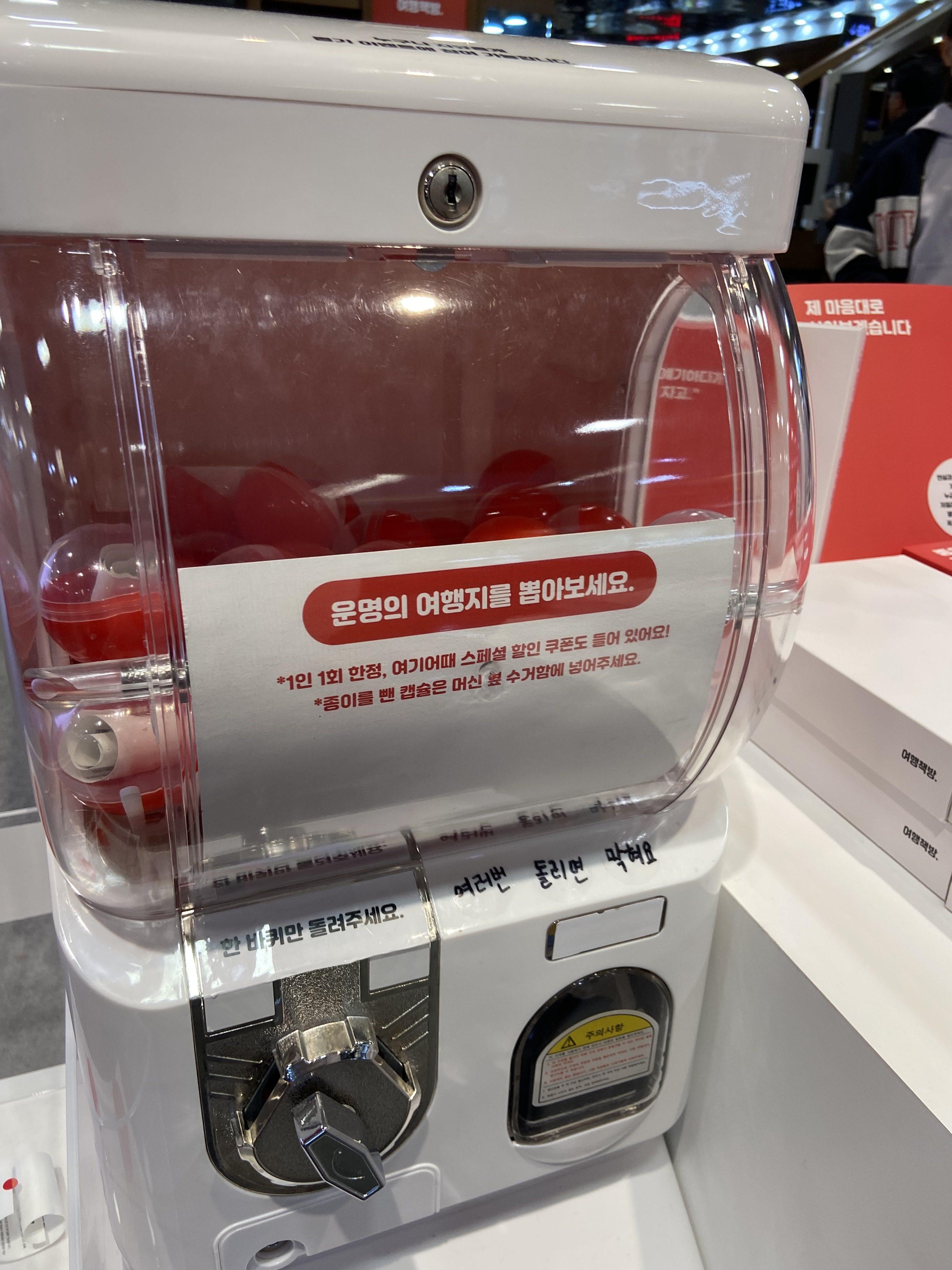 예쁜 엽서들을 직접 꾸민 카드홀더에 담고 주변을 둘러보니 뽑기 기계가 보였다.