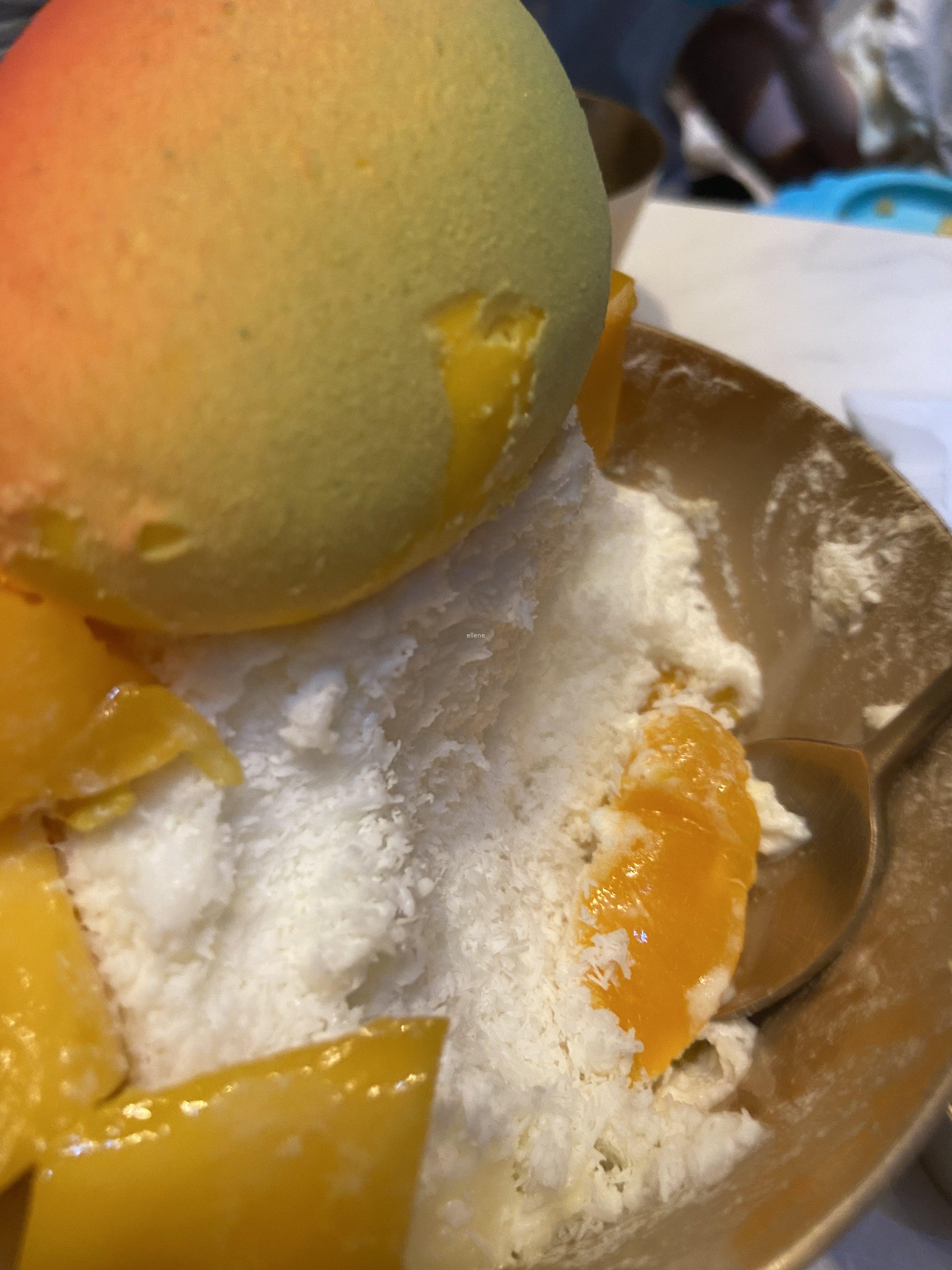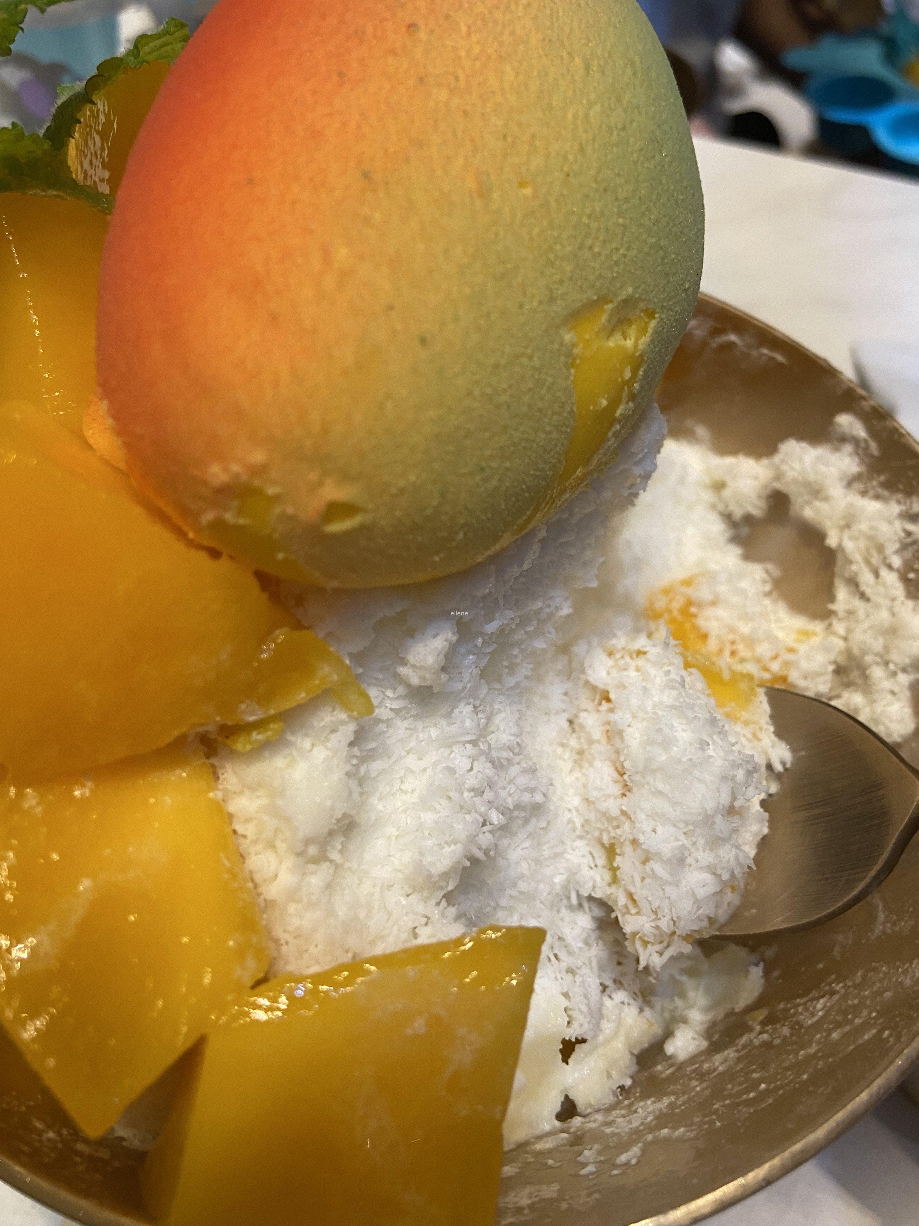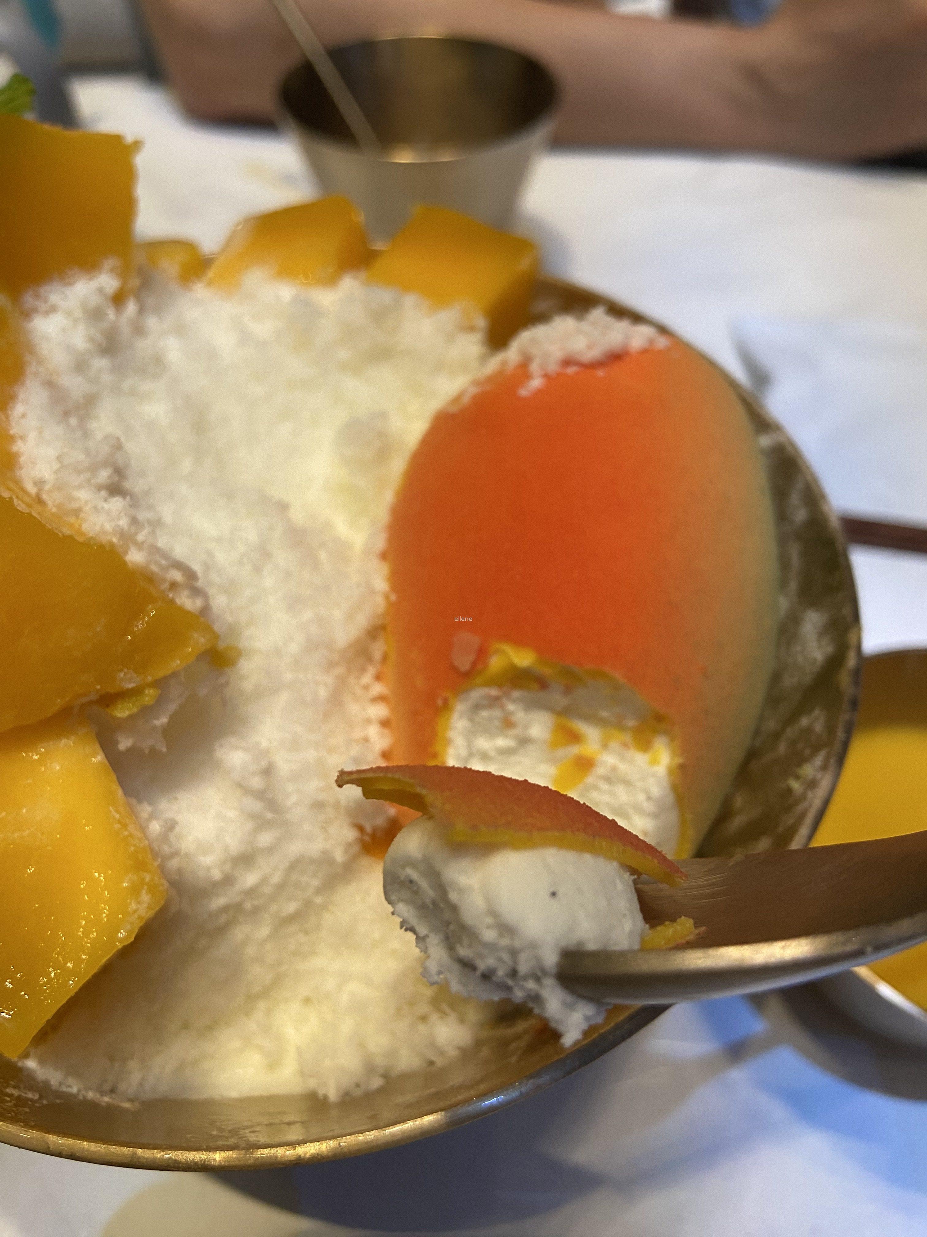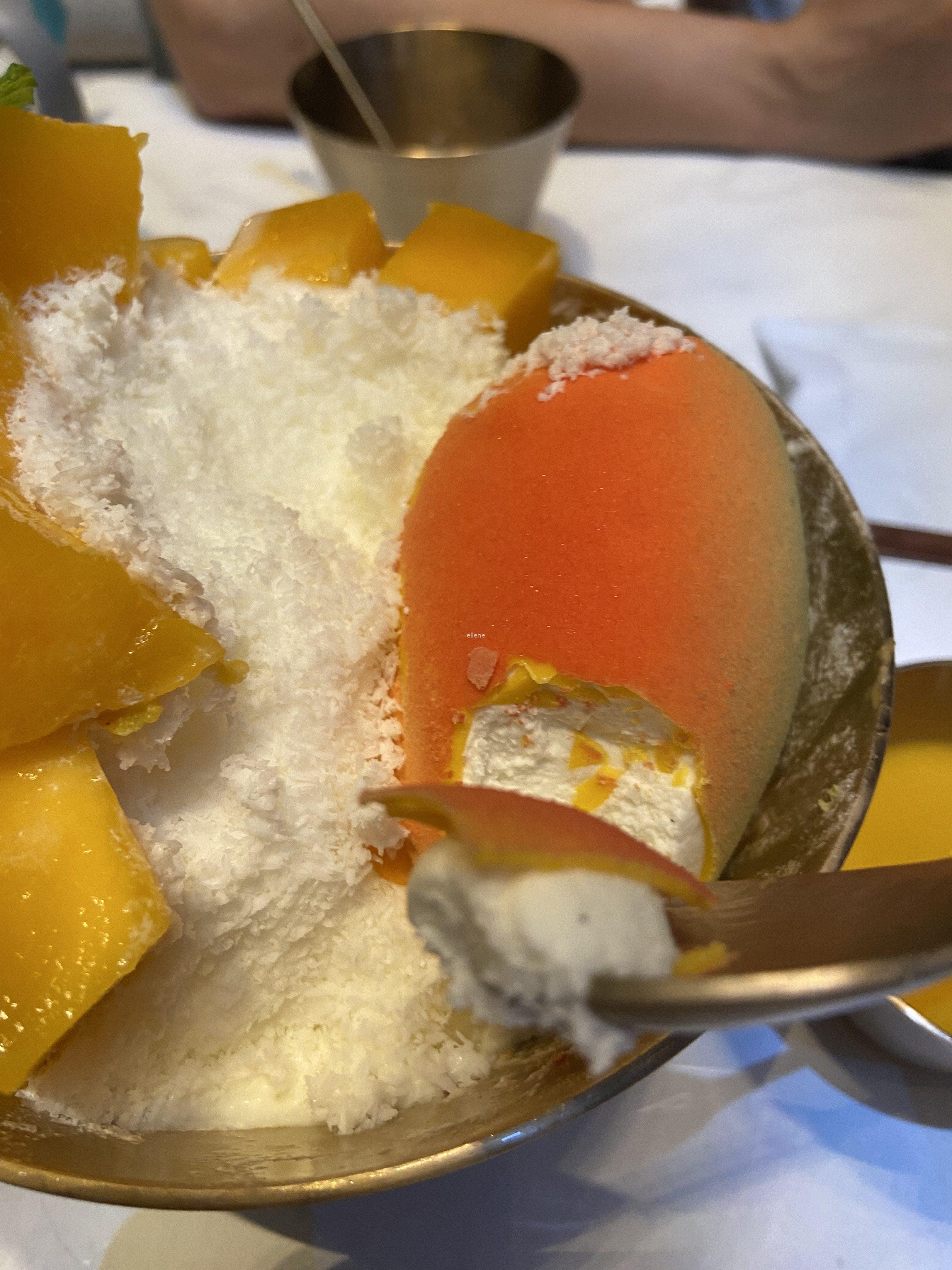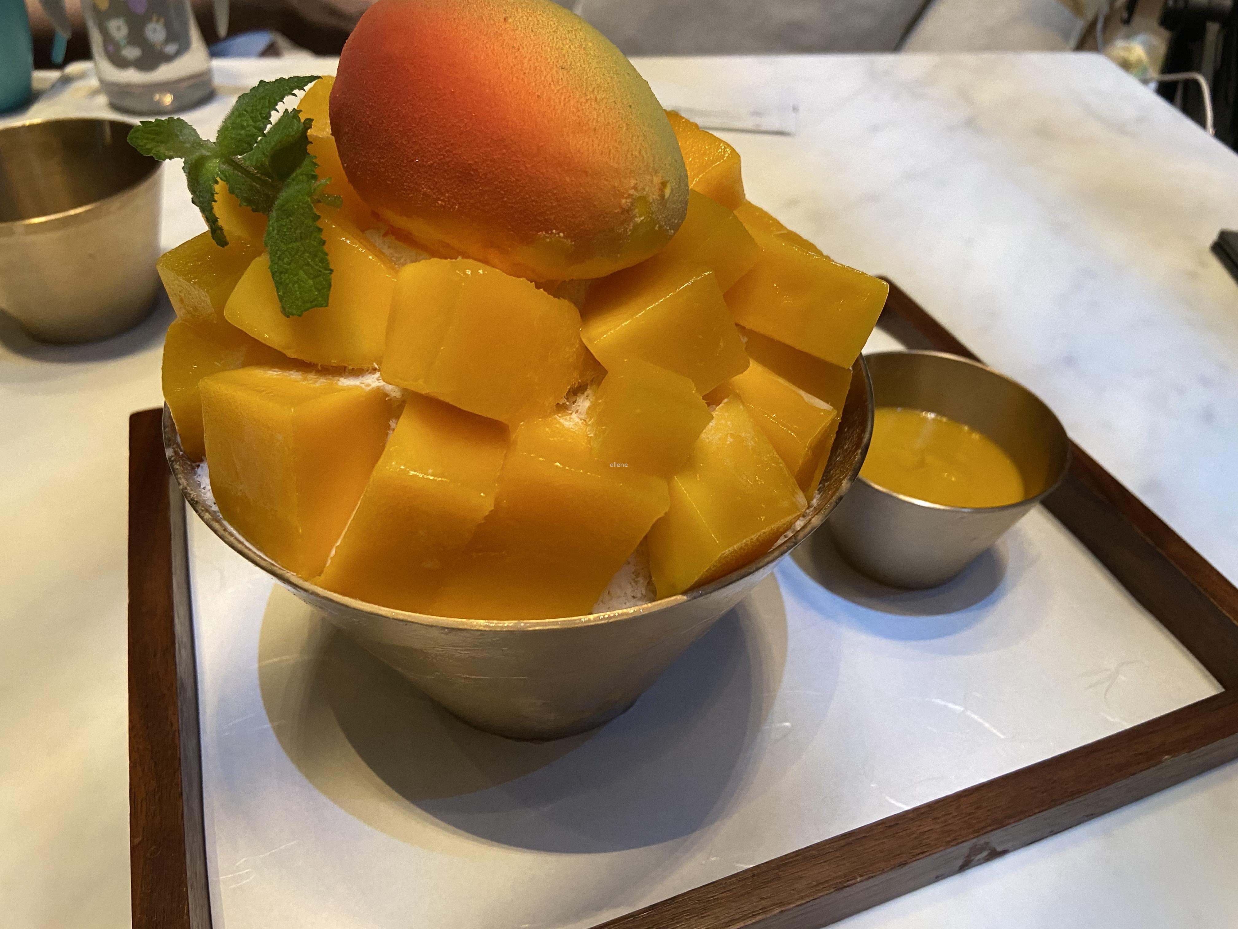 조금 기다리자 빙수가 제공됐다. 딱 봐도 질 좋은 망고가 아낌없이 들어있을 것 같은, 시원하고 맛있어보이는 망고빙수!