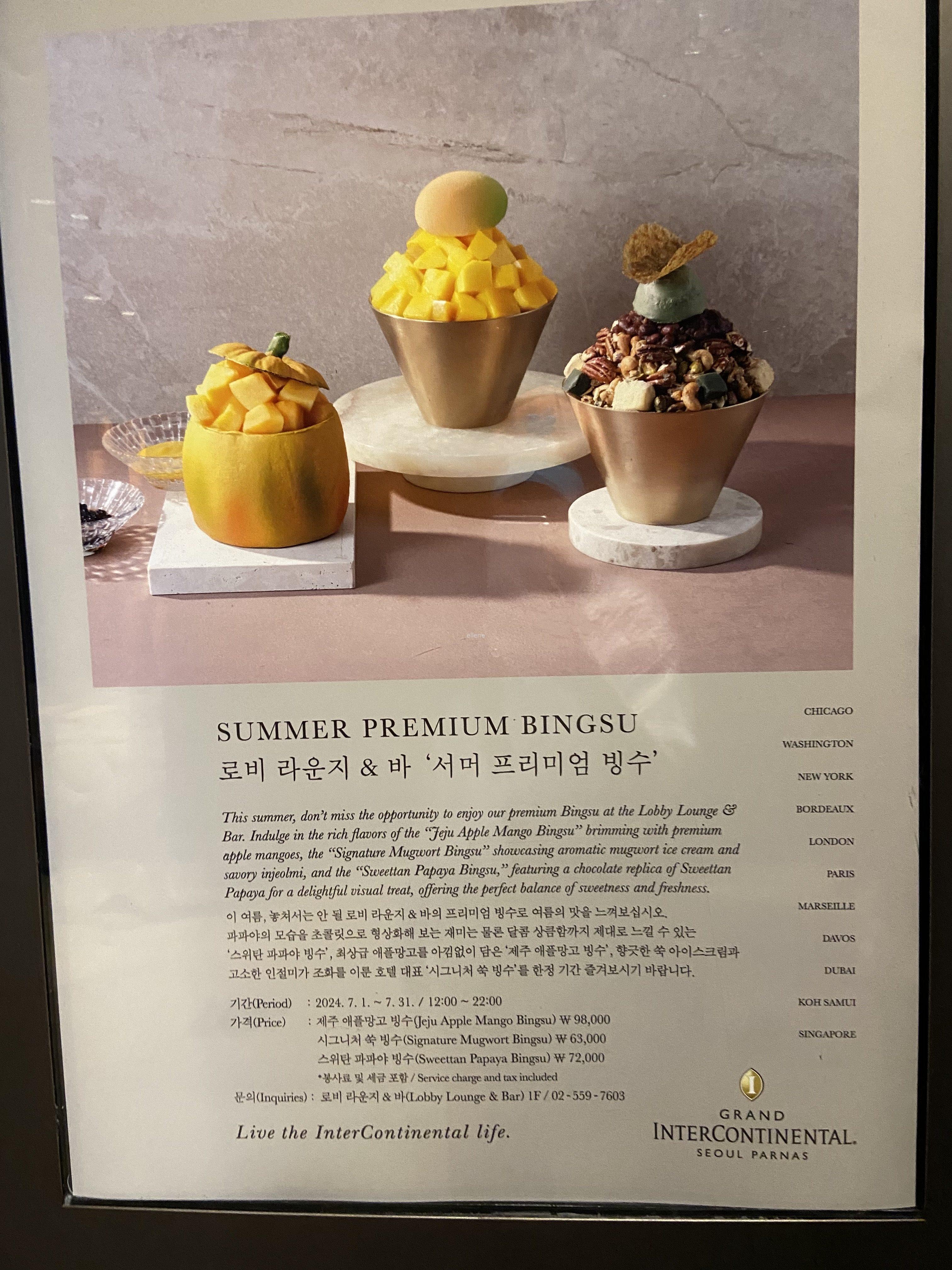 그랜드 인터컨티넨탈 파르나스 로비라운지 제주 애플망고 빙수 리뷰