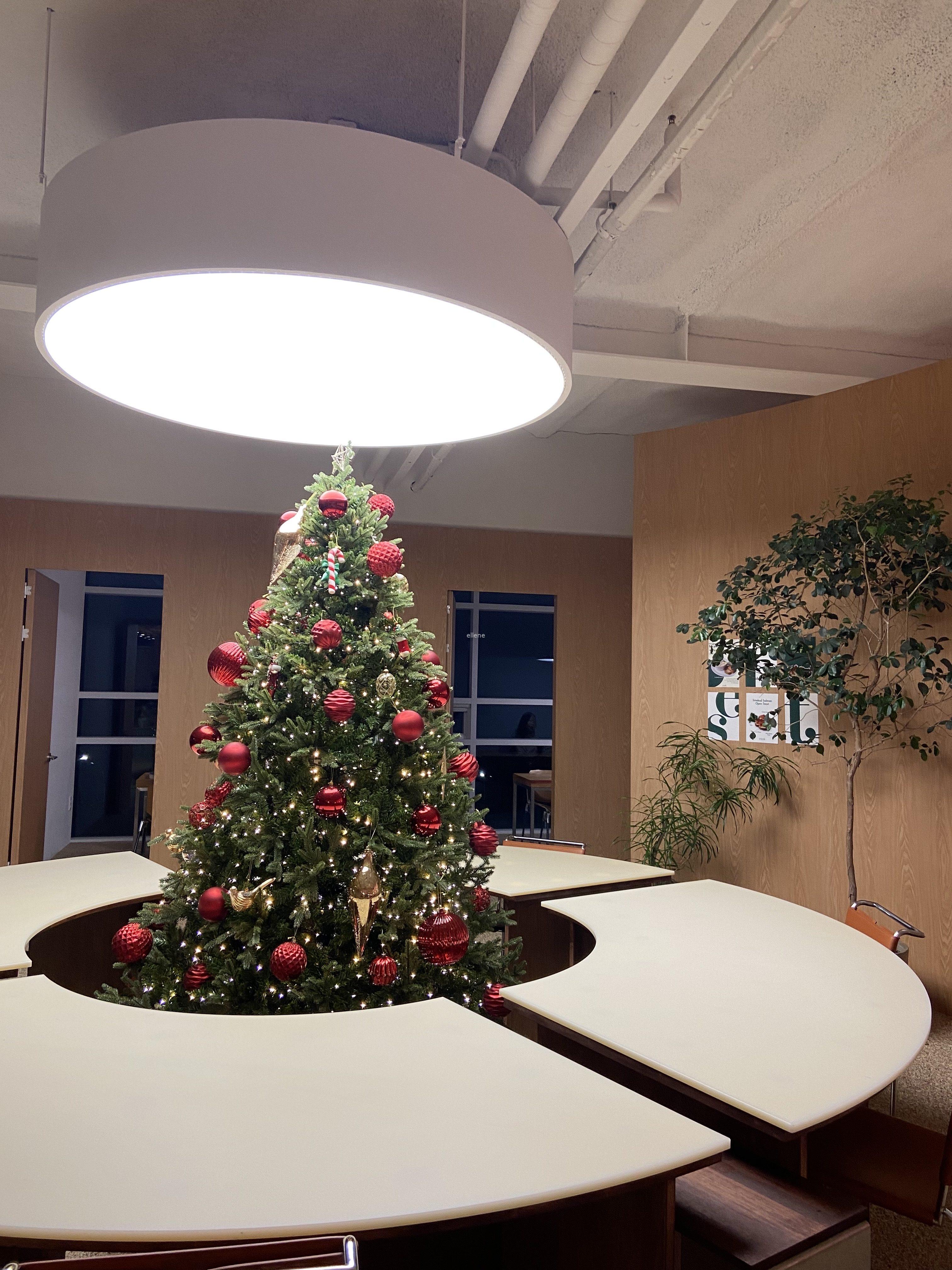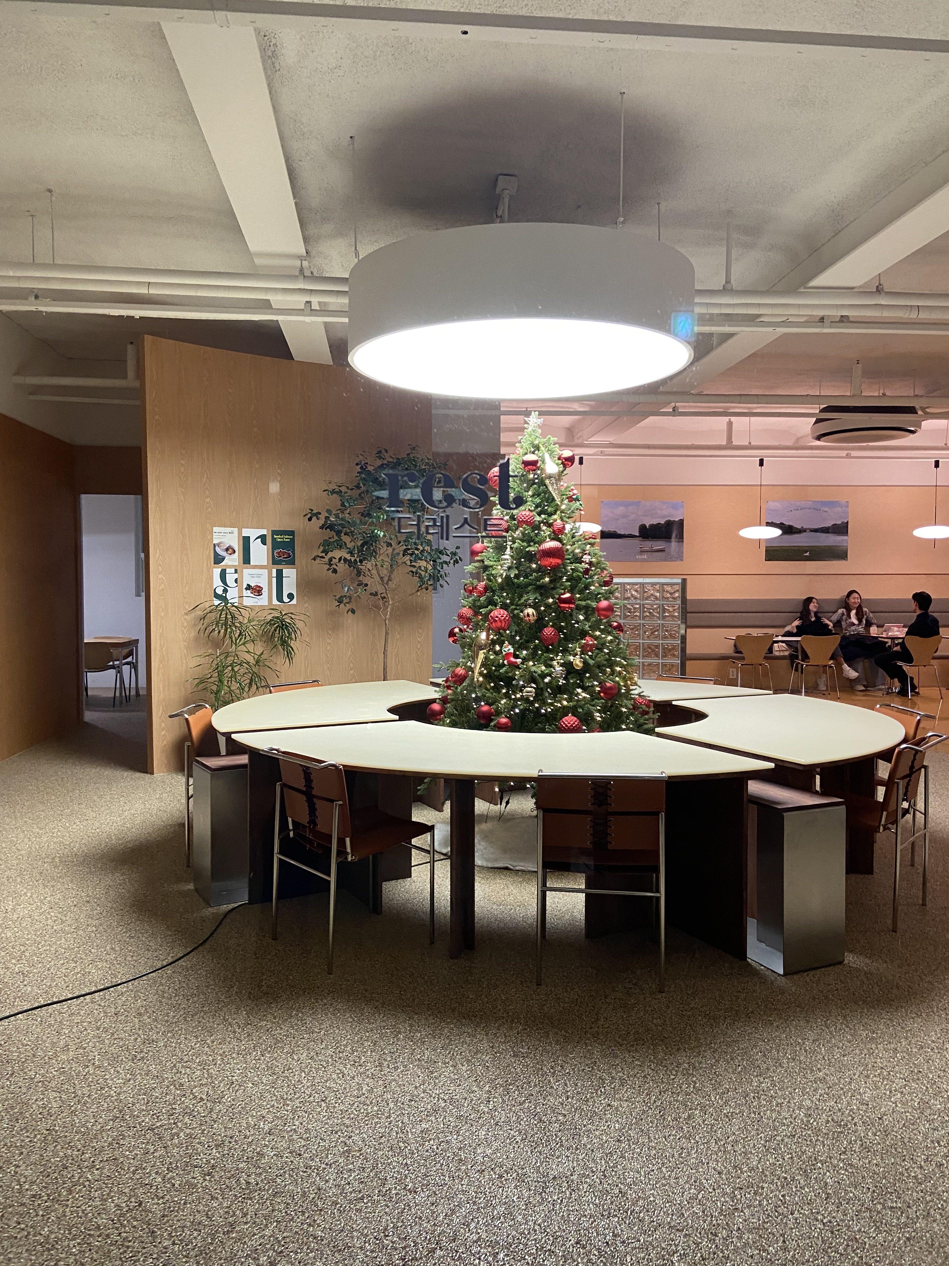 카페 안으로 들어가자 커다란 트리가 먼저 눈에 들어왔다. 이 트리를 중심으로 동그란 좌석이 세팅되어 있는데, 의자도 테이블도 참 편해 보인다.