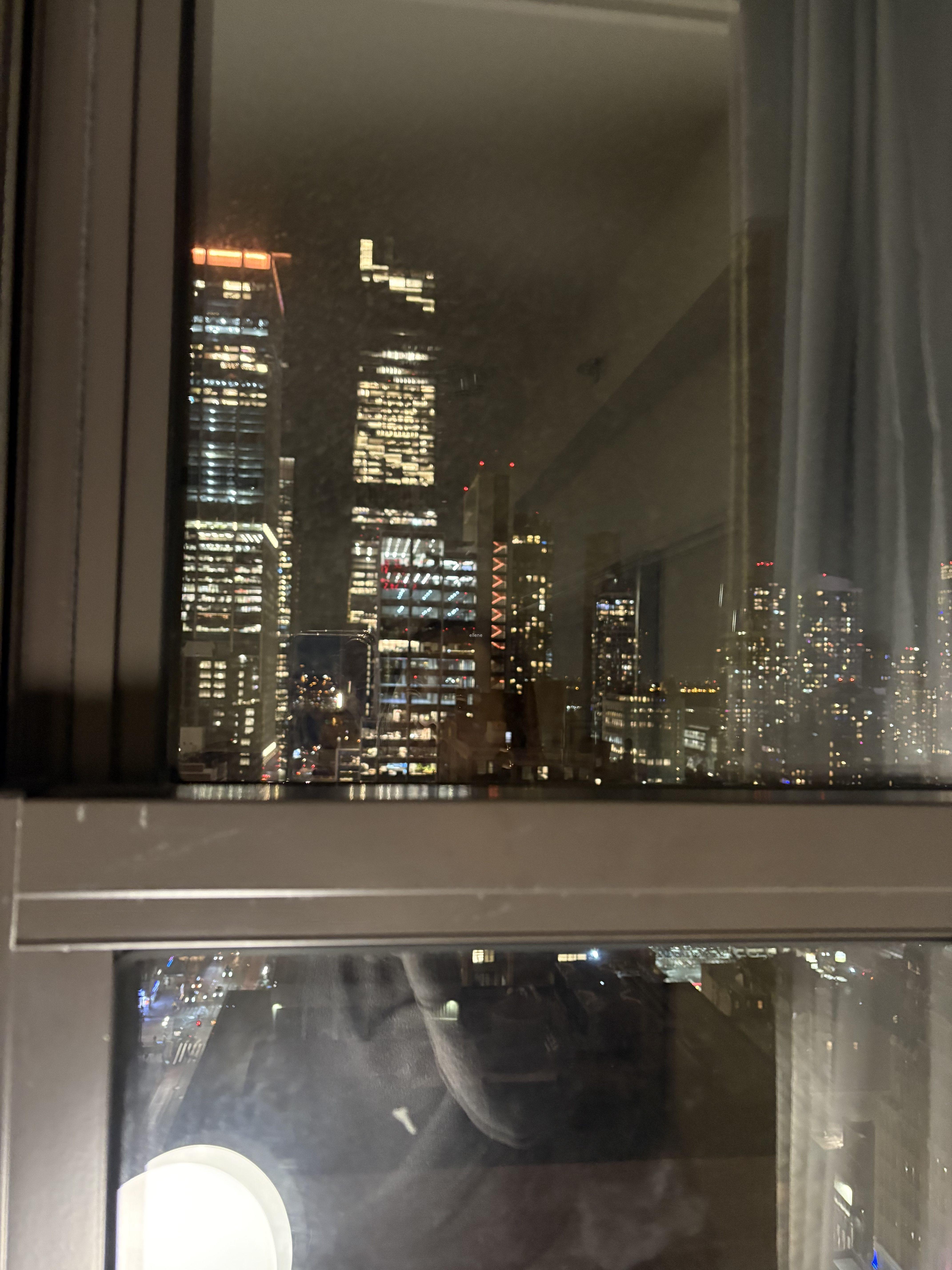 창문이 좁긴 하지만, 커튼을 열면 이렇게 맨하탄의 시티뷰를 볼 수 있어요.