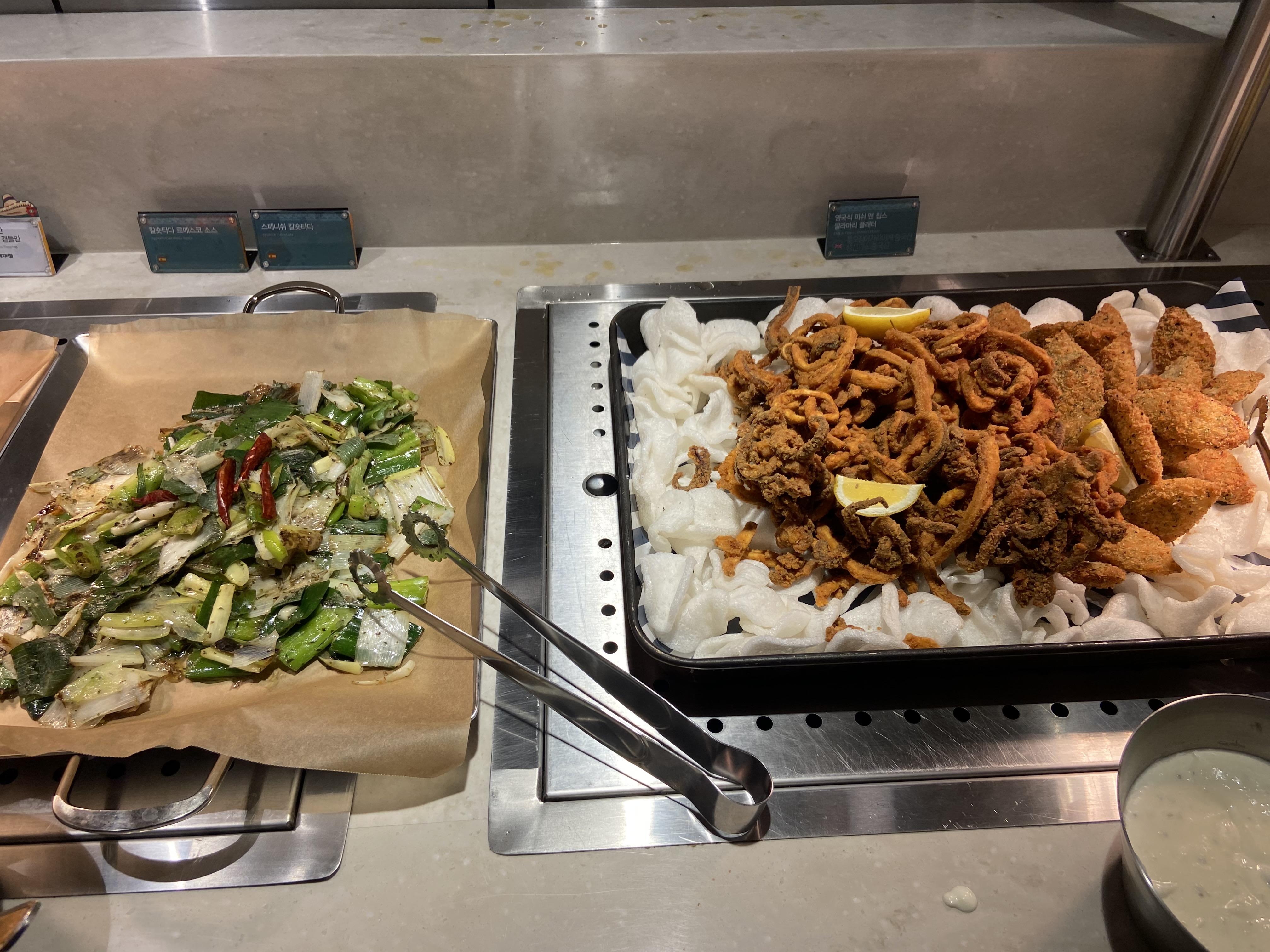 사람들이 다양한 맛을 고루 즐길 수 있도록 한국 음식과 일반 뷔페 메뉴, 해외 유명 음식들을 잘 섞어 매치해둔 듯.