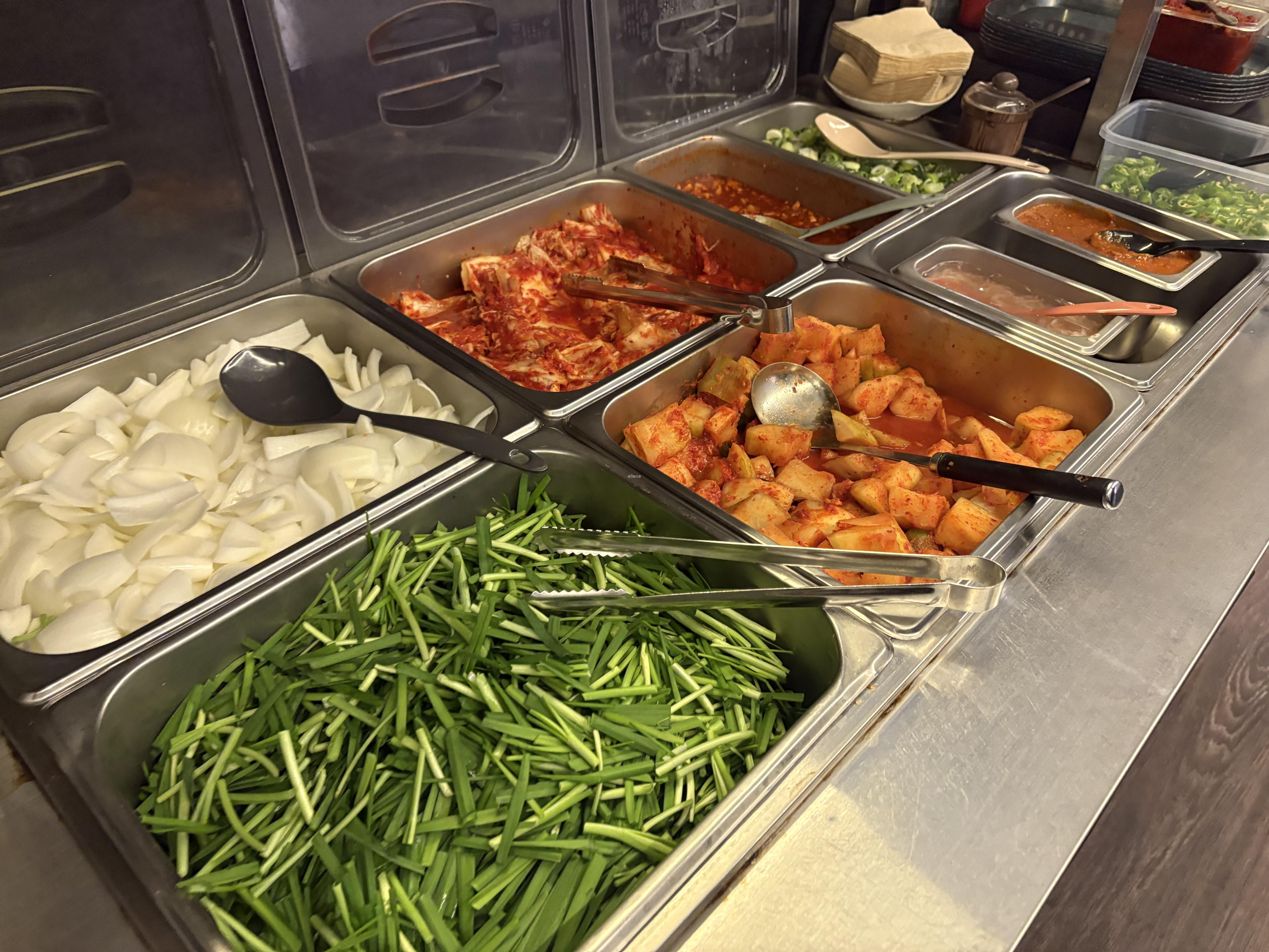 이 메뉴들은 가게 한 쪽에 있는 셀프바에서 무한으로 가져다 먹을 수 있습니다.