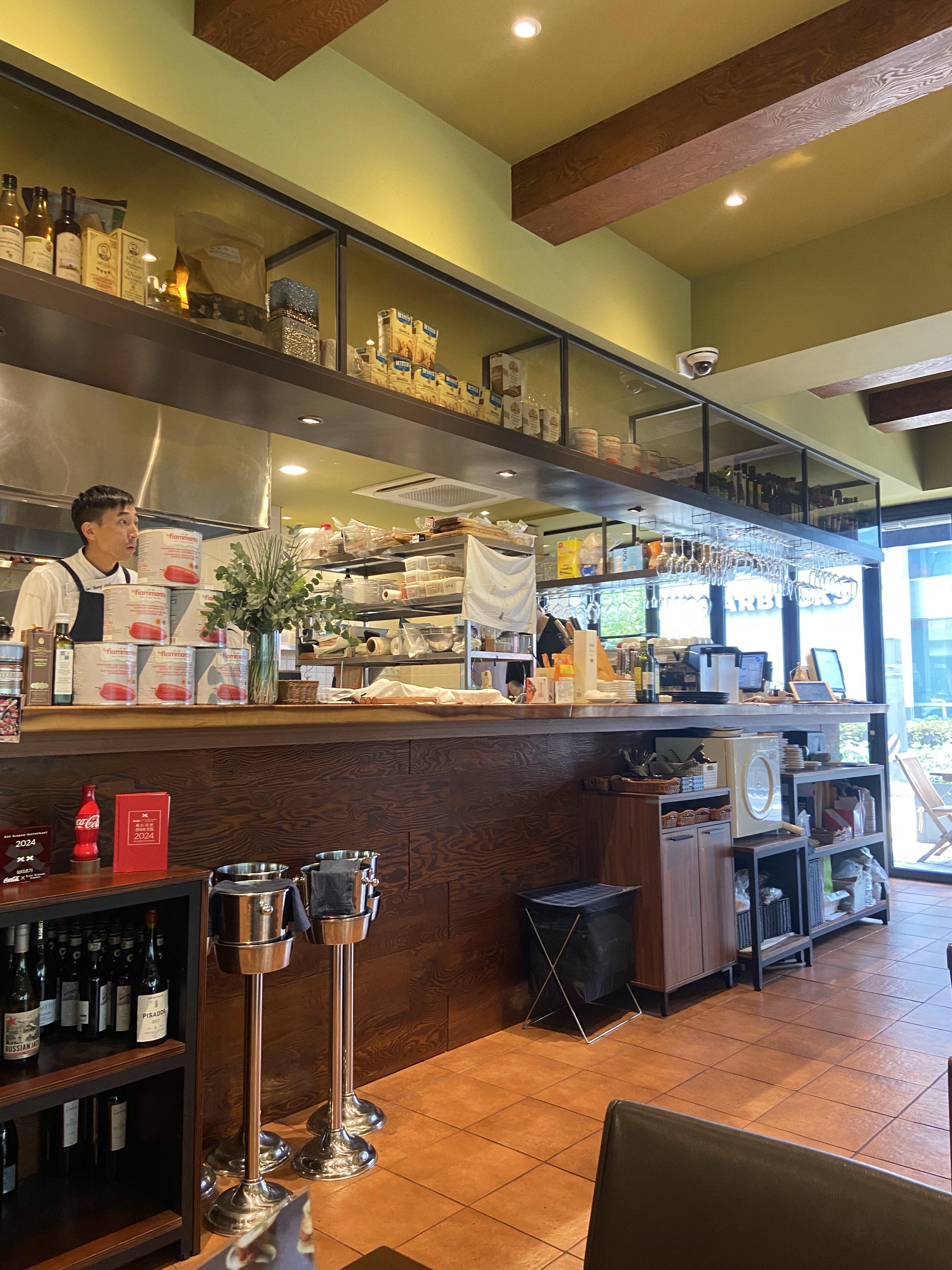 주방도 오픈키친형태로 되어있어서 안쪽 조리과정이 조금은 보였어요. 이런 다 보이는 주방 너무 좋아요! 왠지 더 깔끔할 것 같고, 주방이 깨끗하게 관리될 것 같거든요.