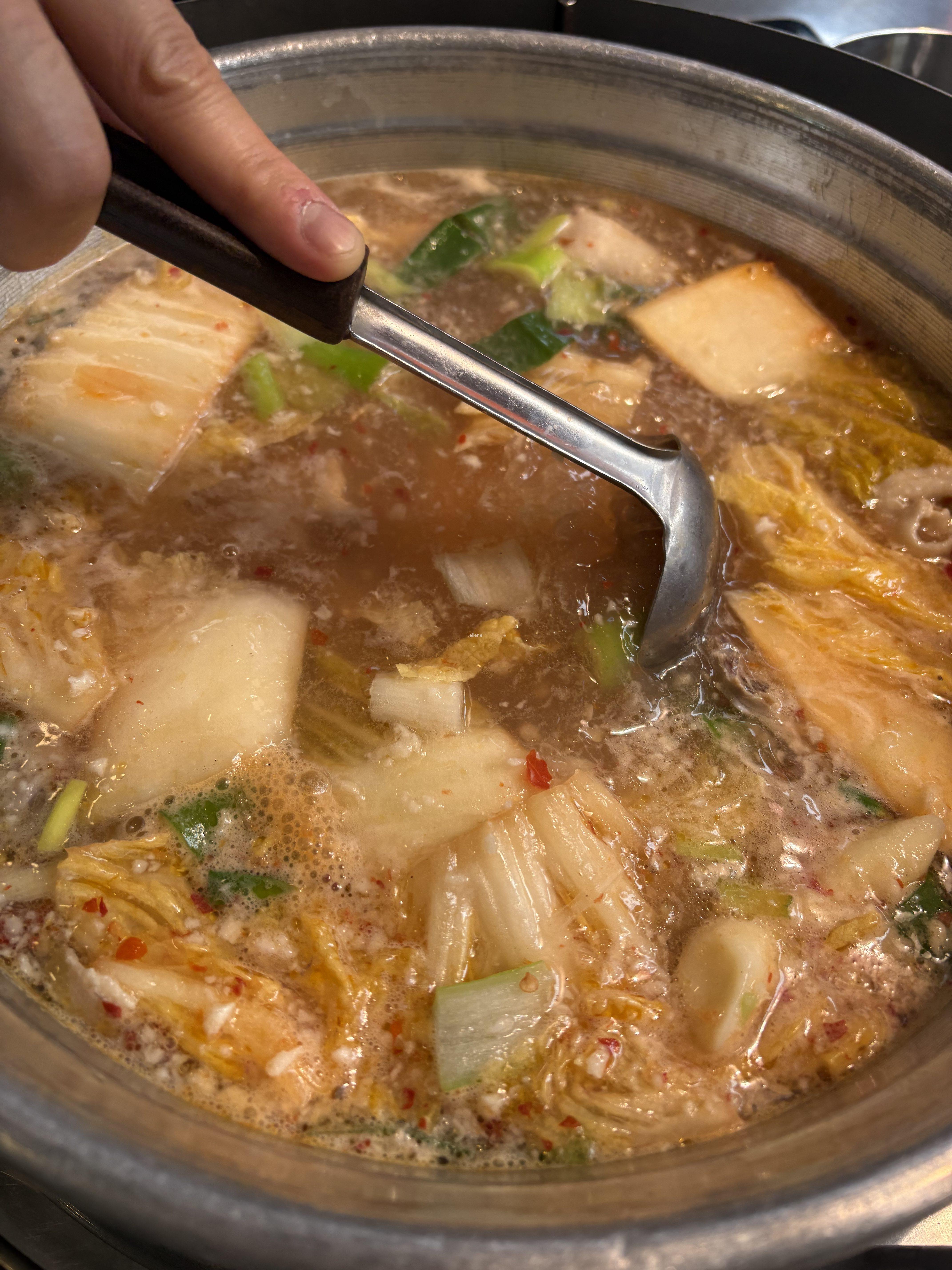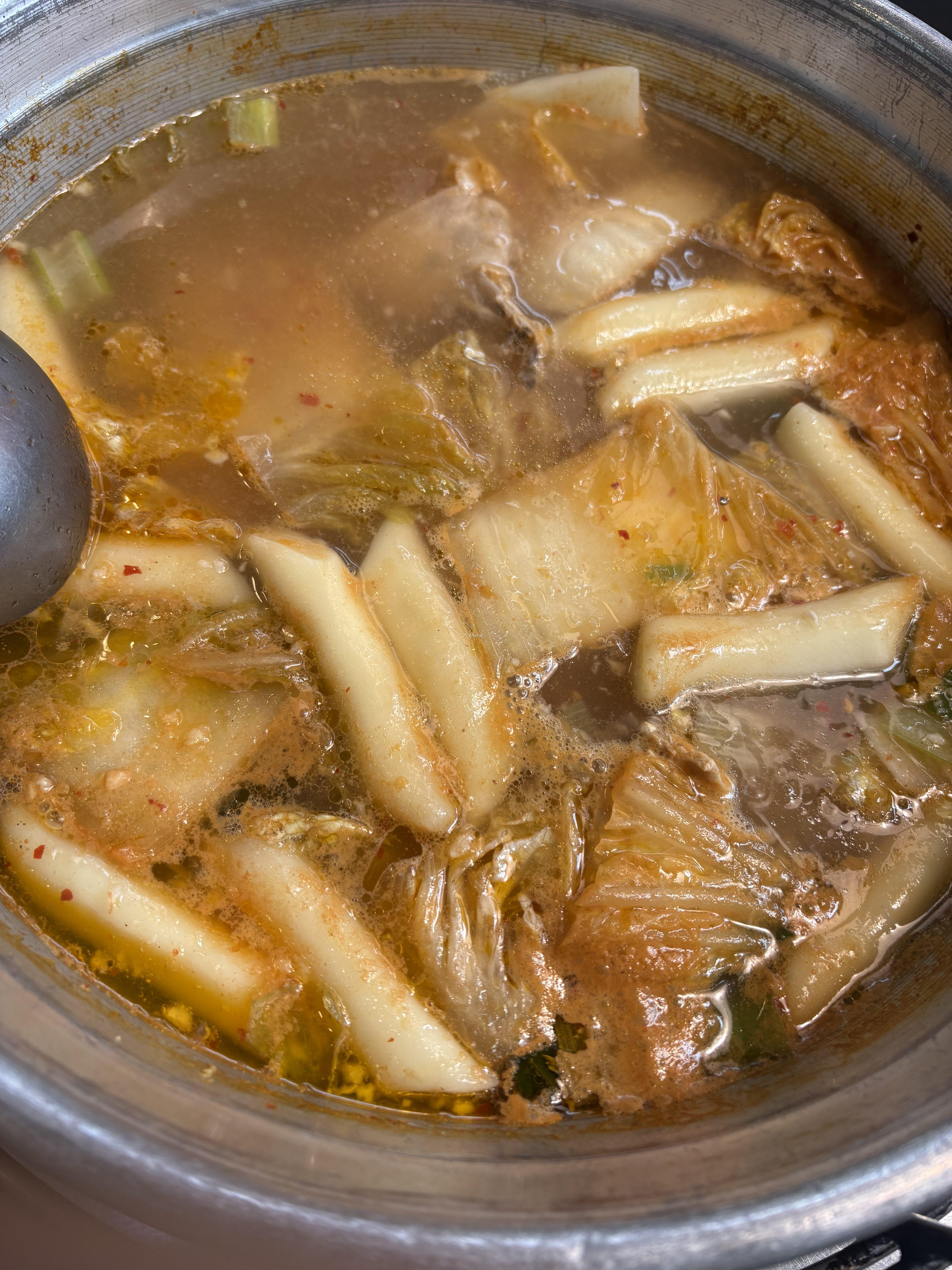 이 때쯤 직원이 우리가 주문한 떡사리도 가져다주셔서, 우리는 떡도 냄비 안에 같이 넣고 보글보글 끓였다.