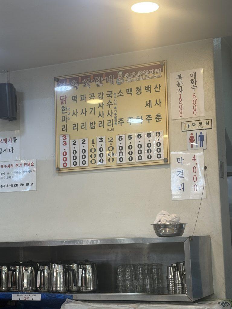 진옥화할매 닭한마리 메뉴