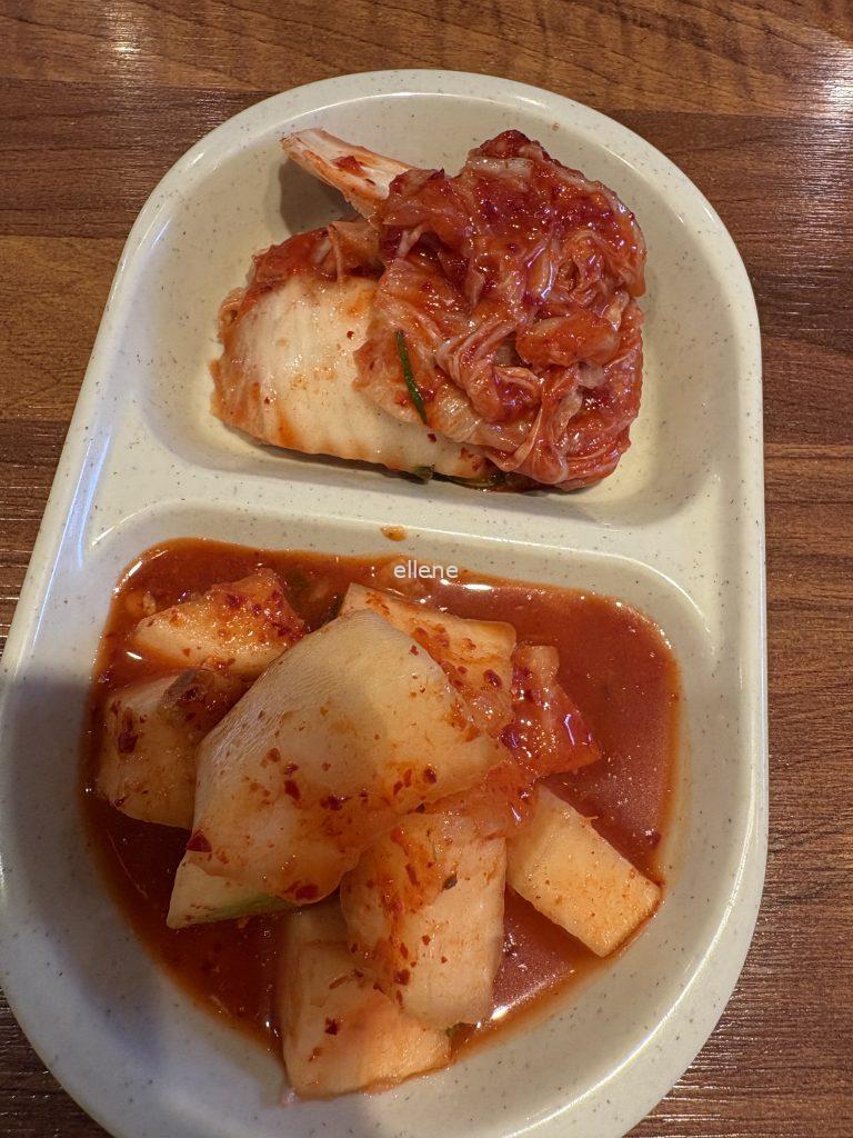 주문하자마자 사장님이 테이블에 김치 2종을 가져다 주셨다.