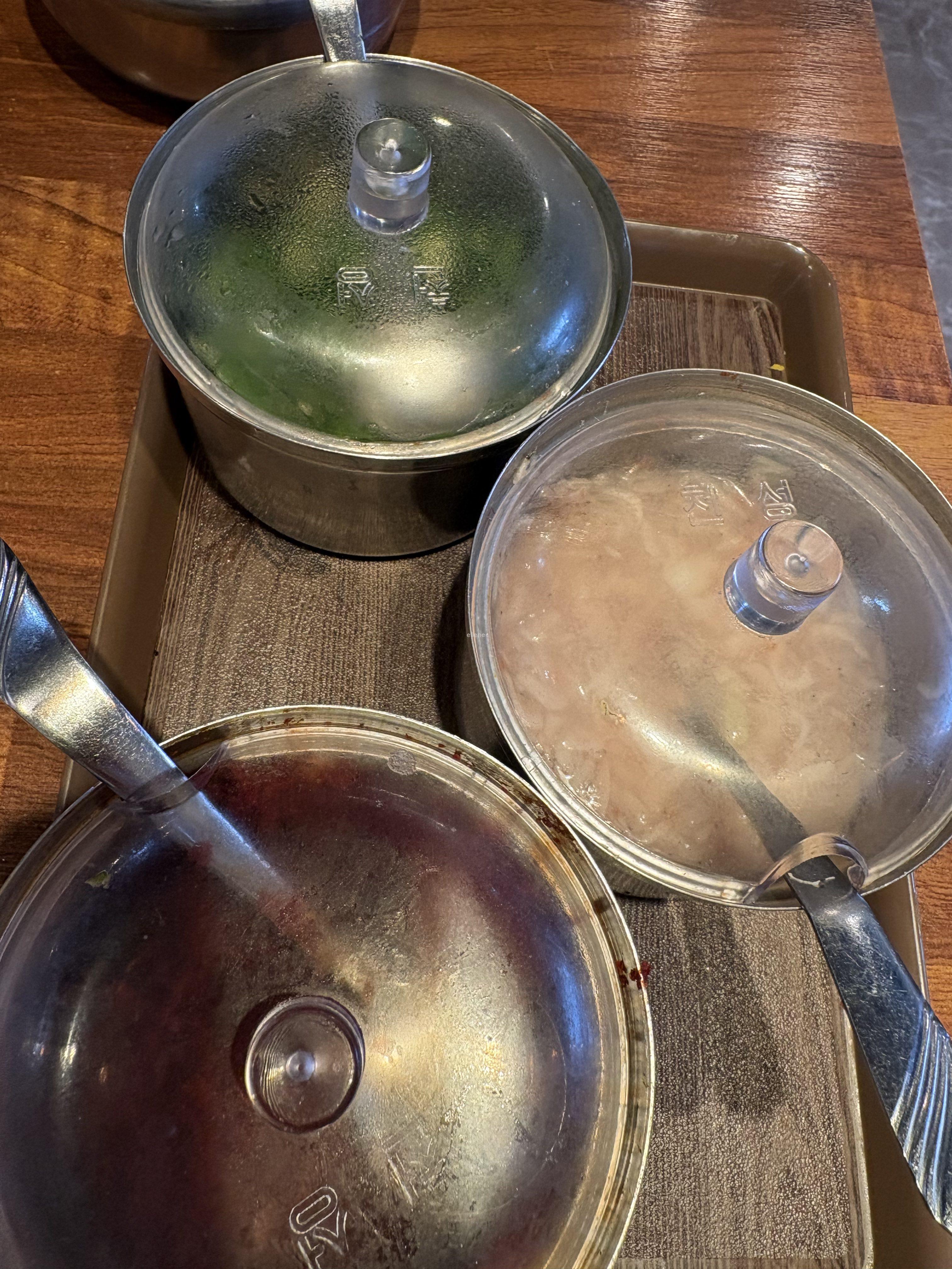 우리는 일반 순대국 정식과 얼큰 순대국 정식을 주문했다.