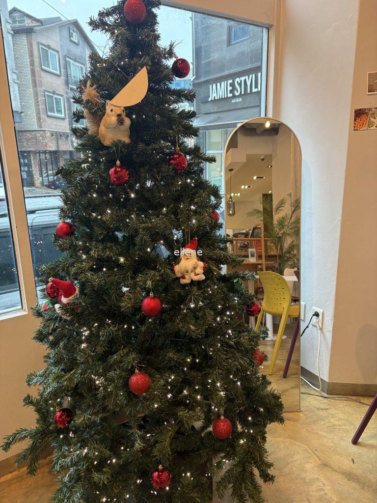 크리스마스 시즌이라 꽤 큰 트리도 카페 한 쪽에 두셨고(심지어 전신거울 옆에!)