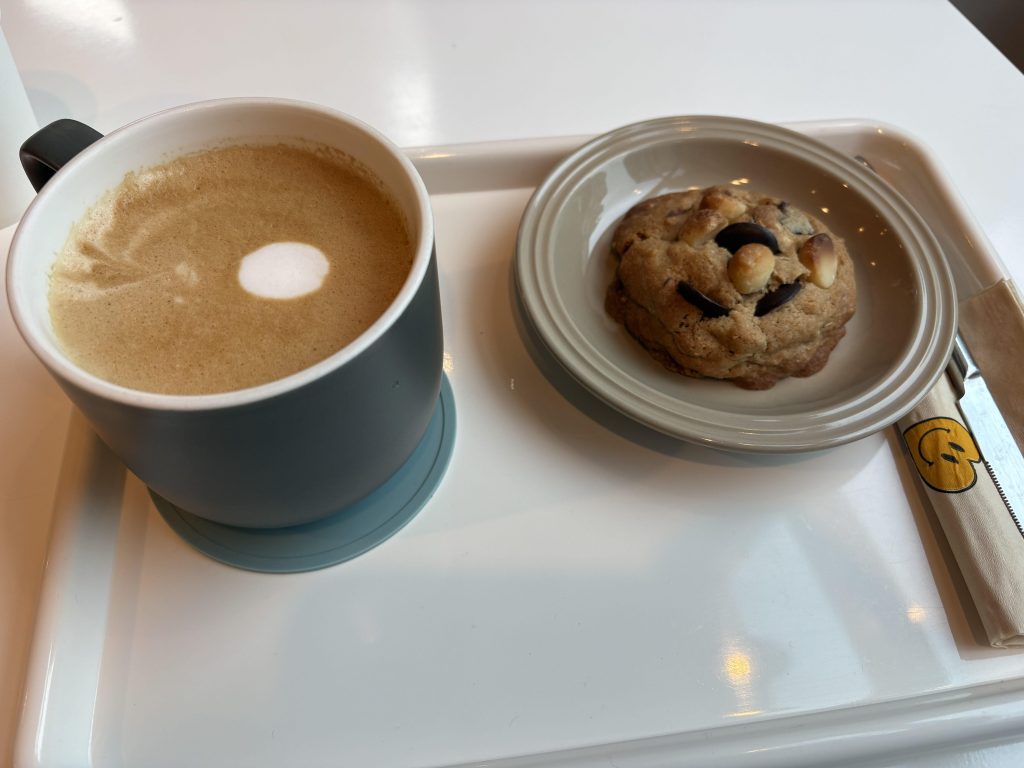 내가 주문한 라떼와 쿠키가 예쁜 트레이에 제공되었다.