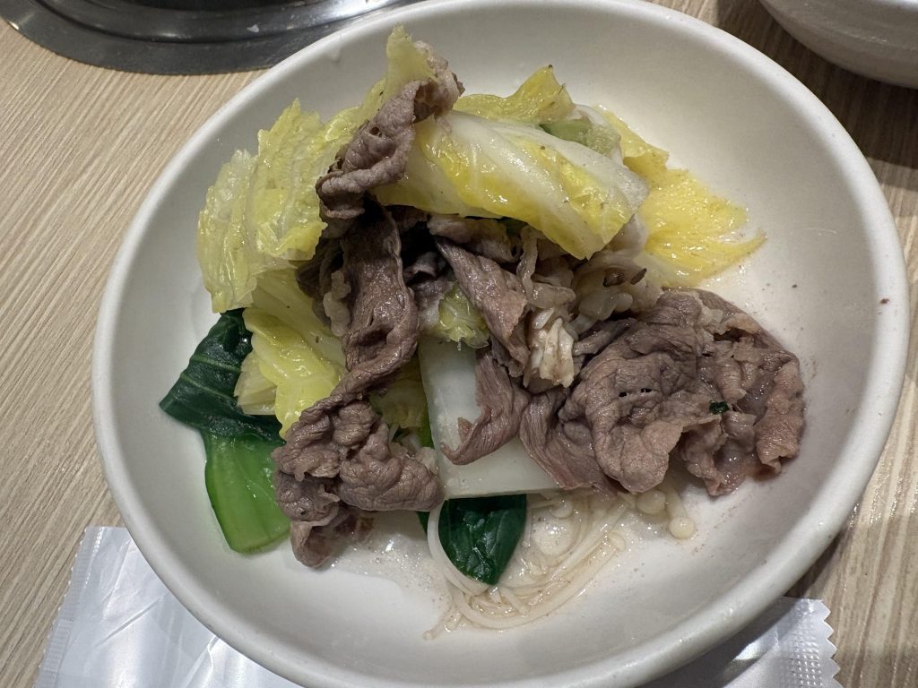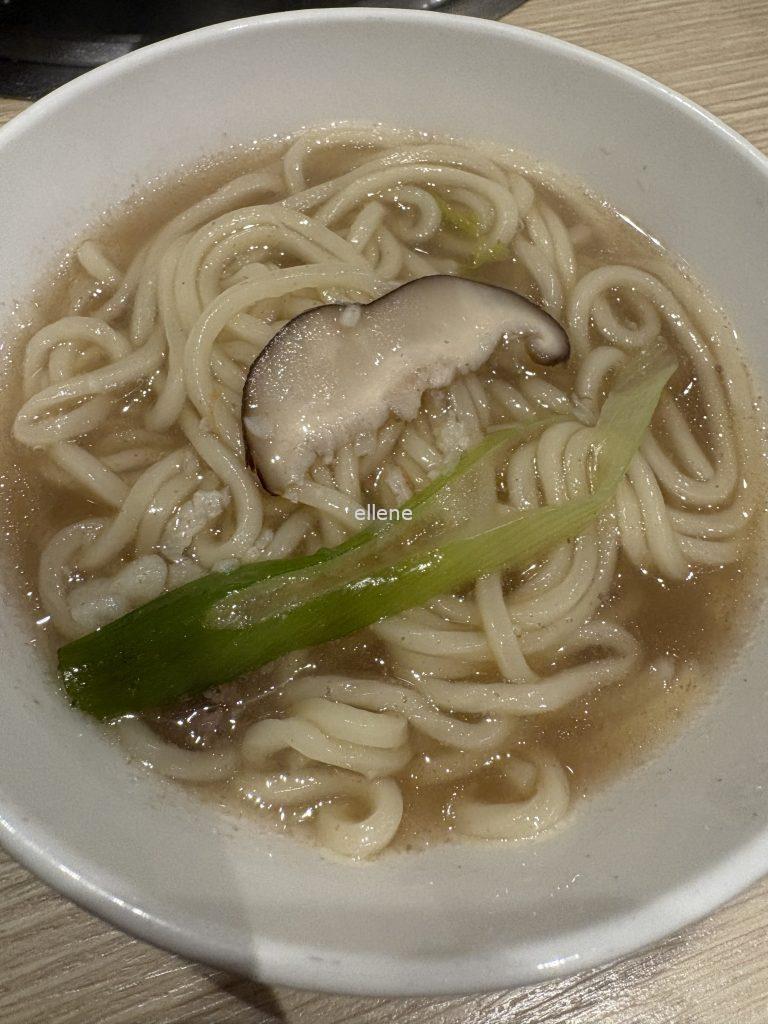 우리는 샤브샤브의 채소와 고기를 먹은 뒤 국수를 2인분 주문했다.