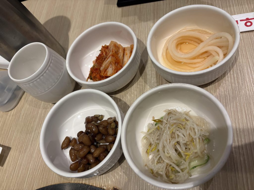 땅콩, 숙주나물무침, 김치, 무나물 4종인데, 이 중에서 나는 김치와 무나물이 가장 맛있었다.