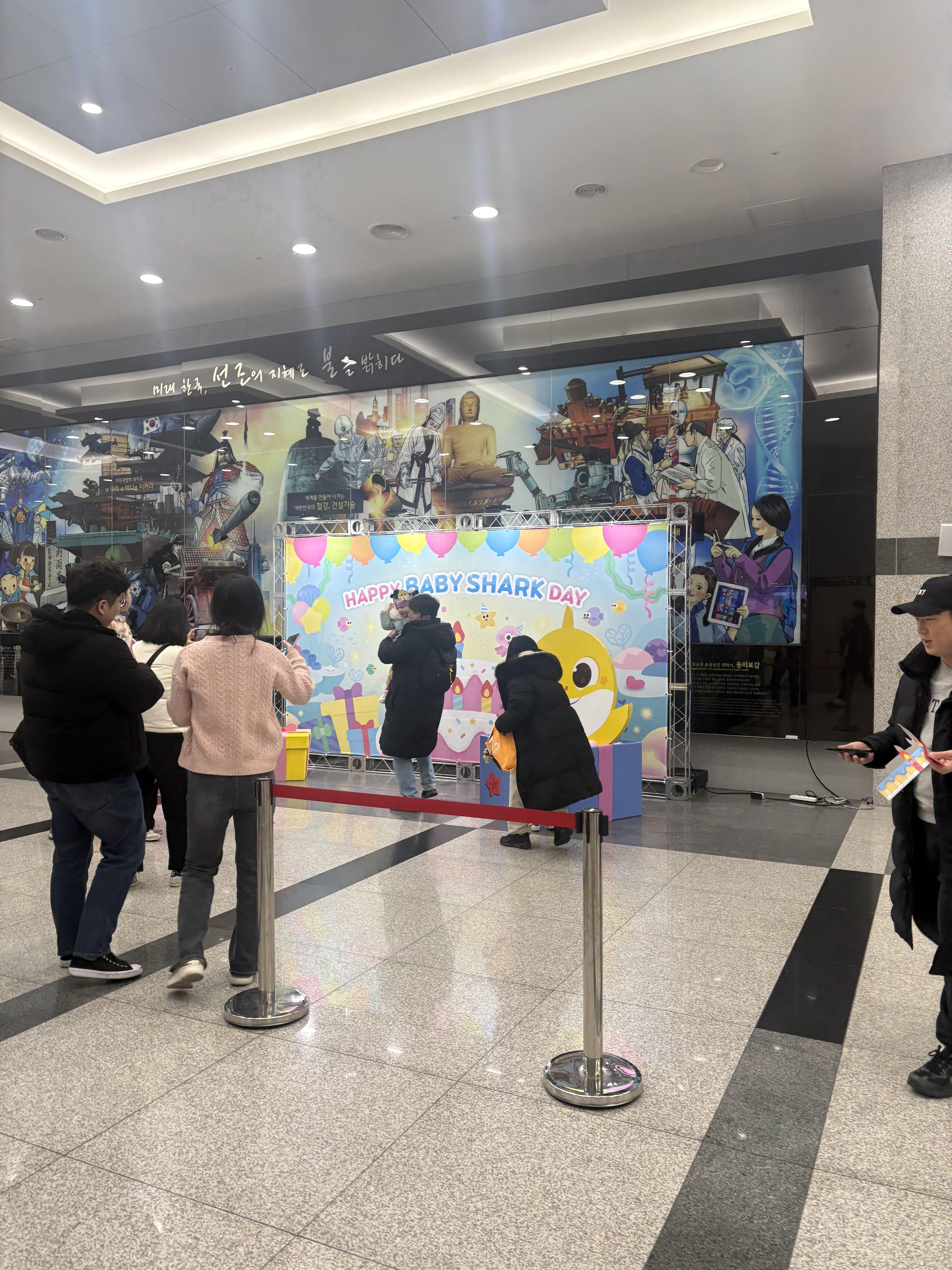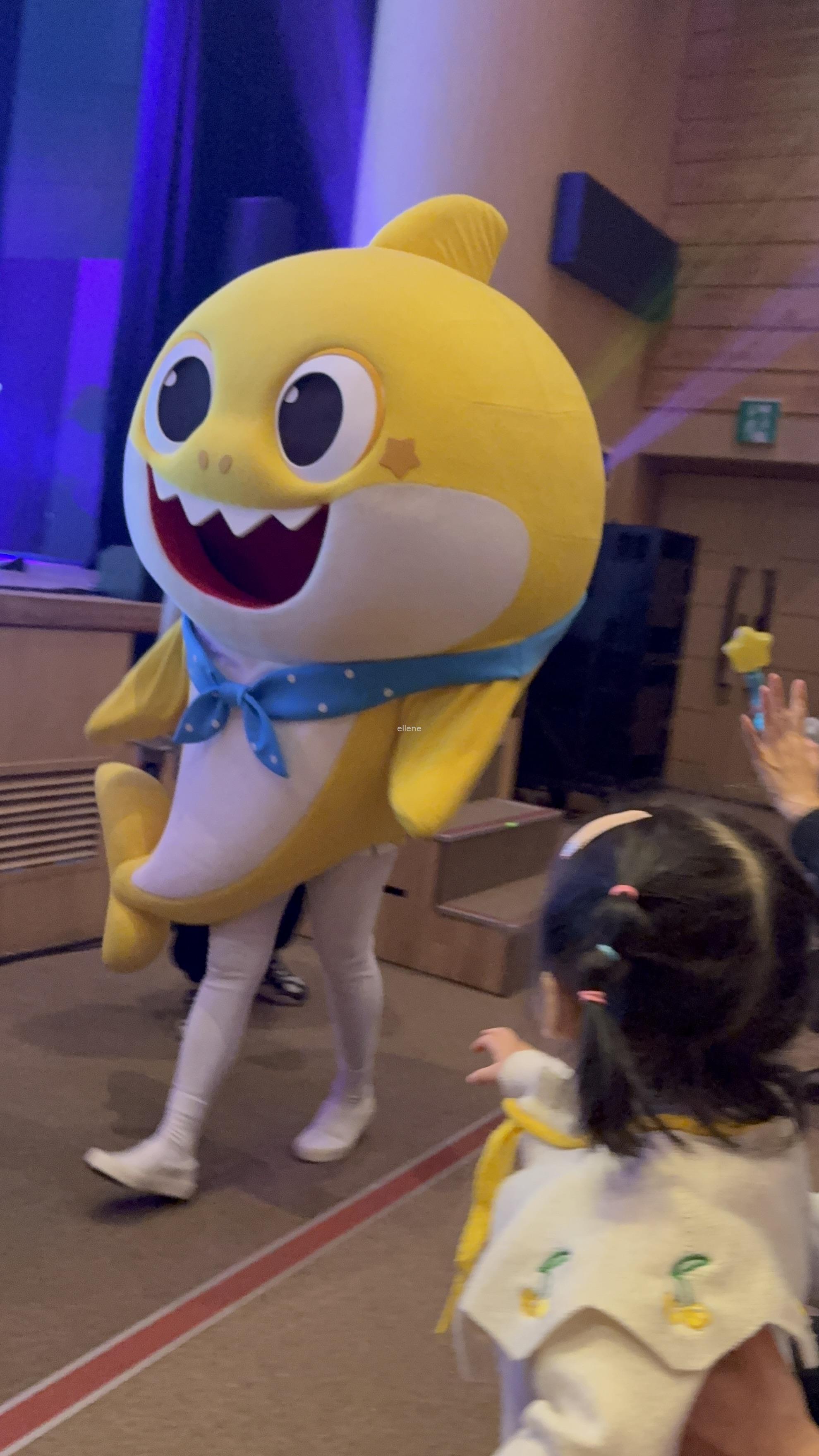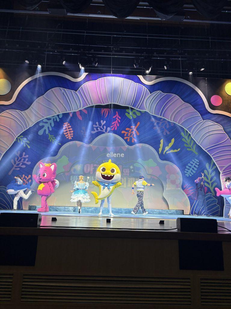 캐릭터들이 관객석을 돌아다니며 인사하고, 아기상어 노래에 맞춰 춤도 추고,