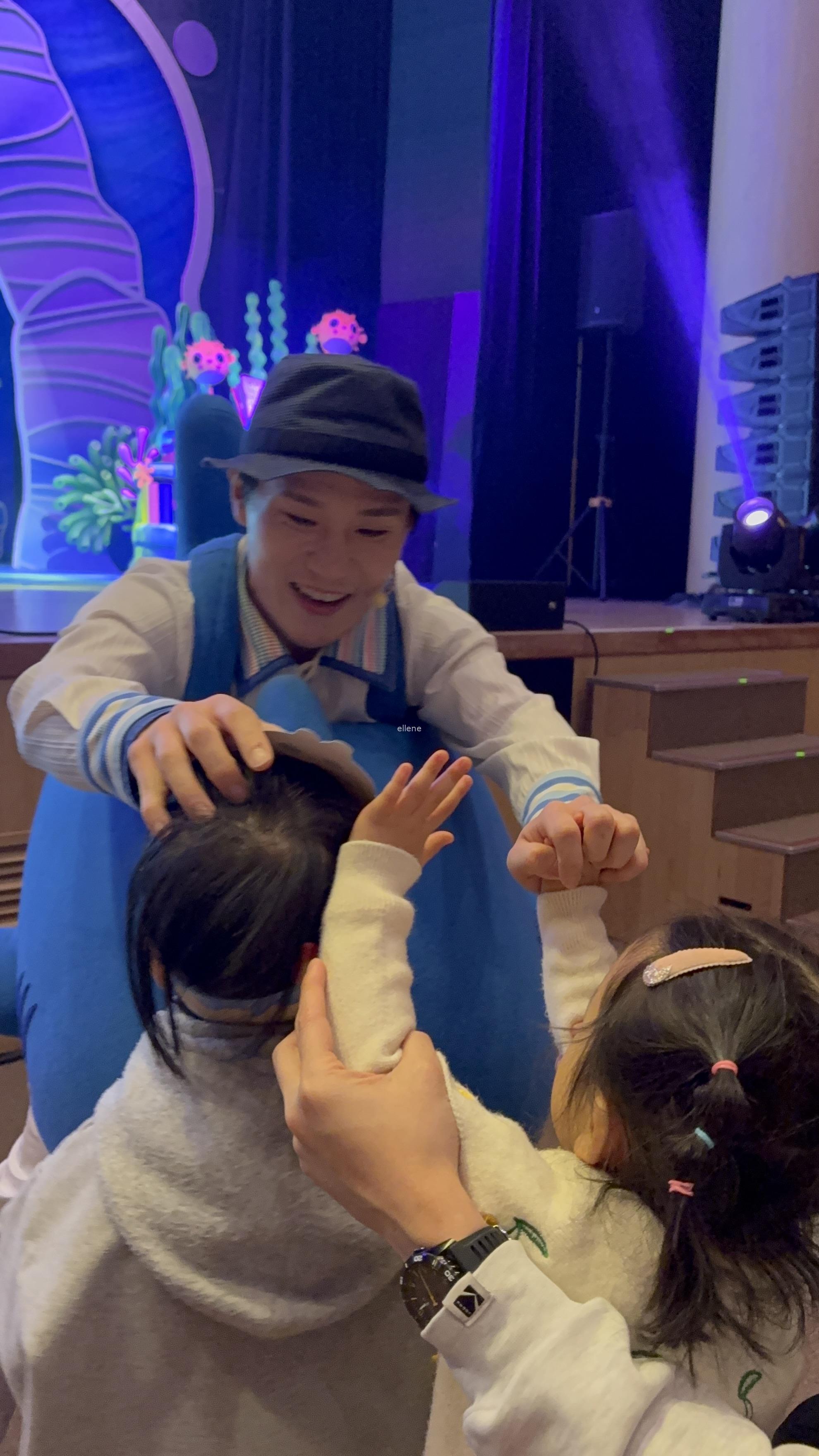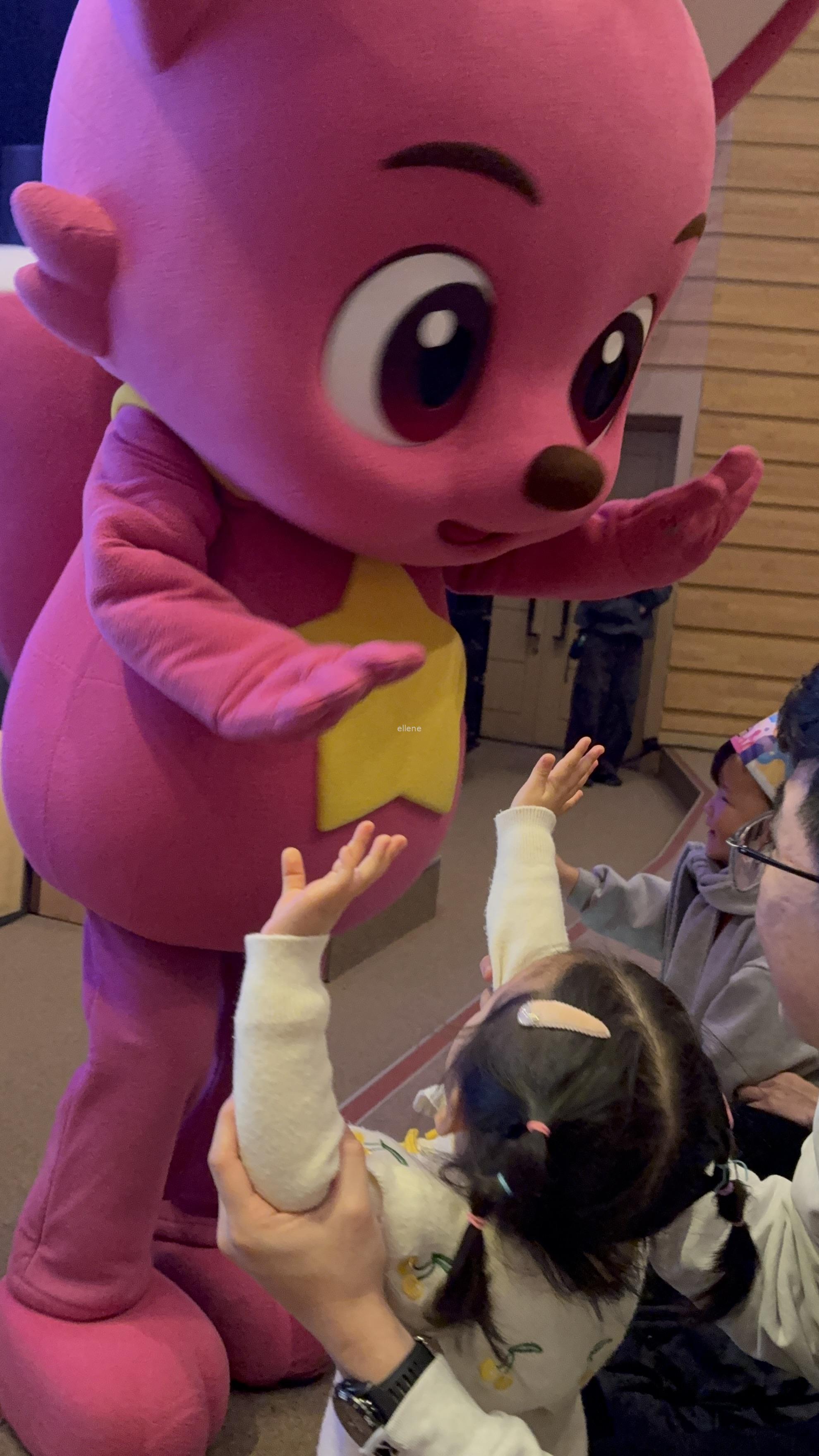 캐릭터들이 관객석을 돌아다니며 인사하고, 아기상어 노래에 맞춰 춤도 추고,