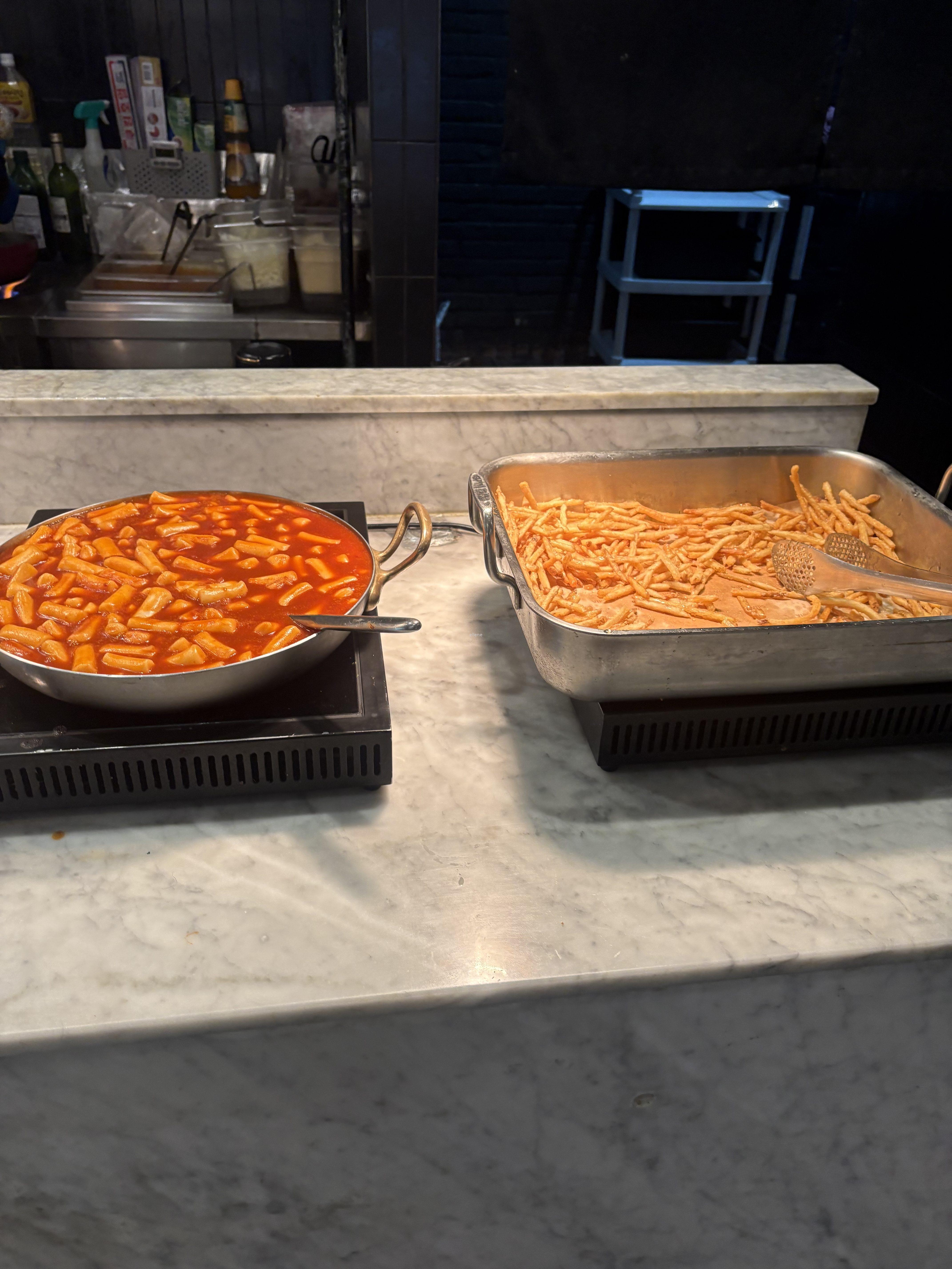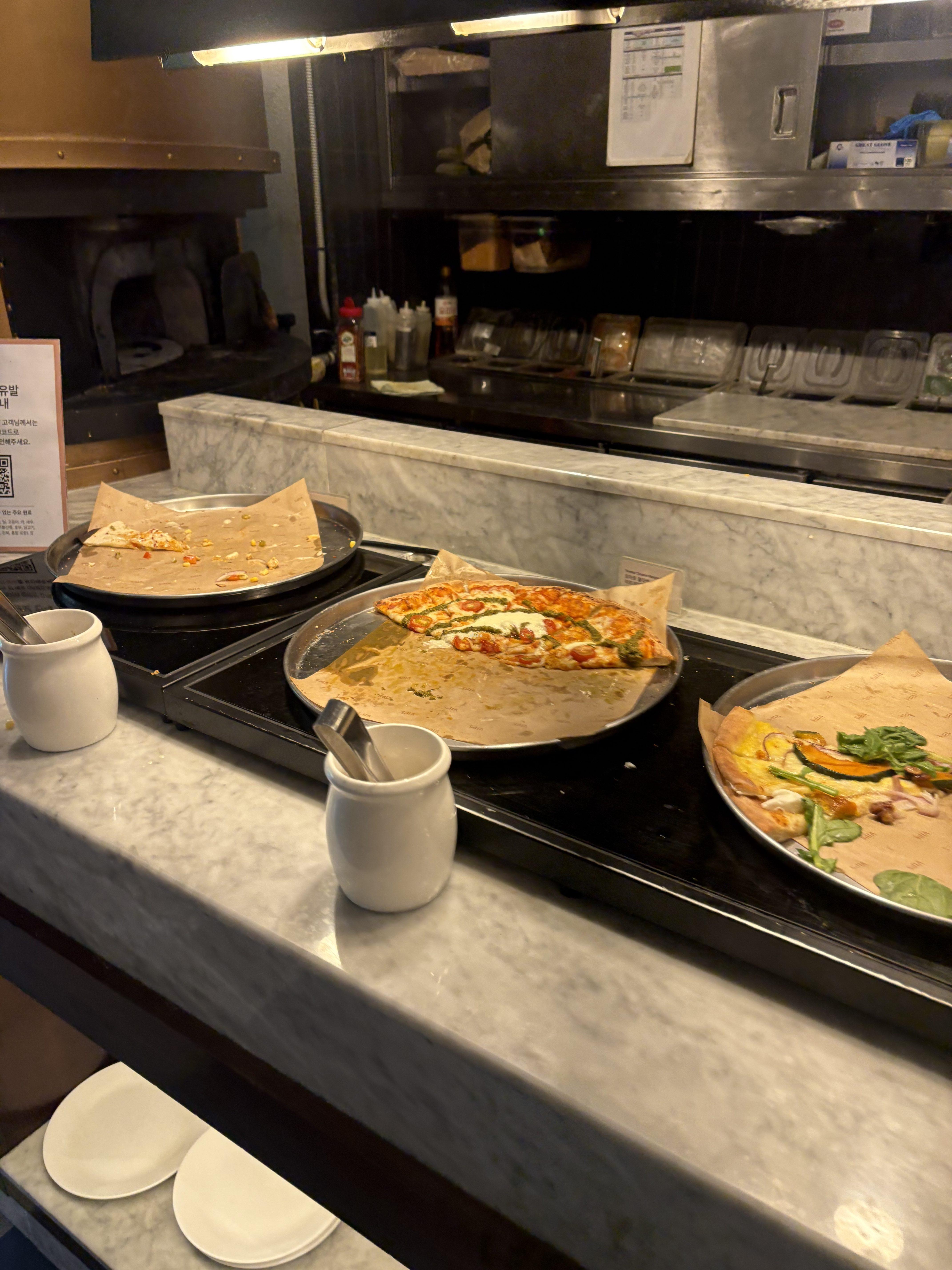 떡볶이, 연어샐러드, 스위트 감자튀김과 같은 대표 메뉴들도 여전히 있었는데, 피자는 조금 특이했다.