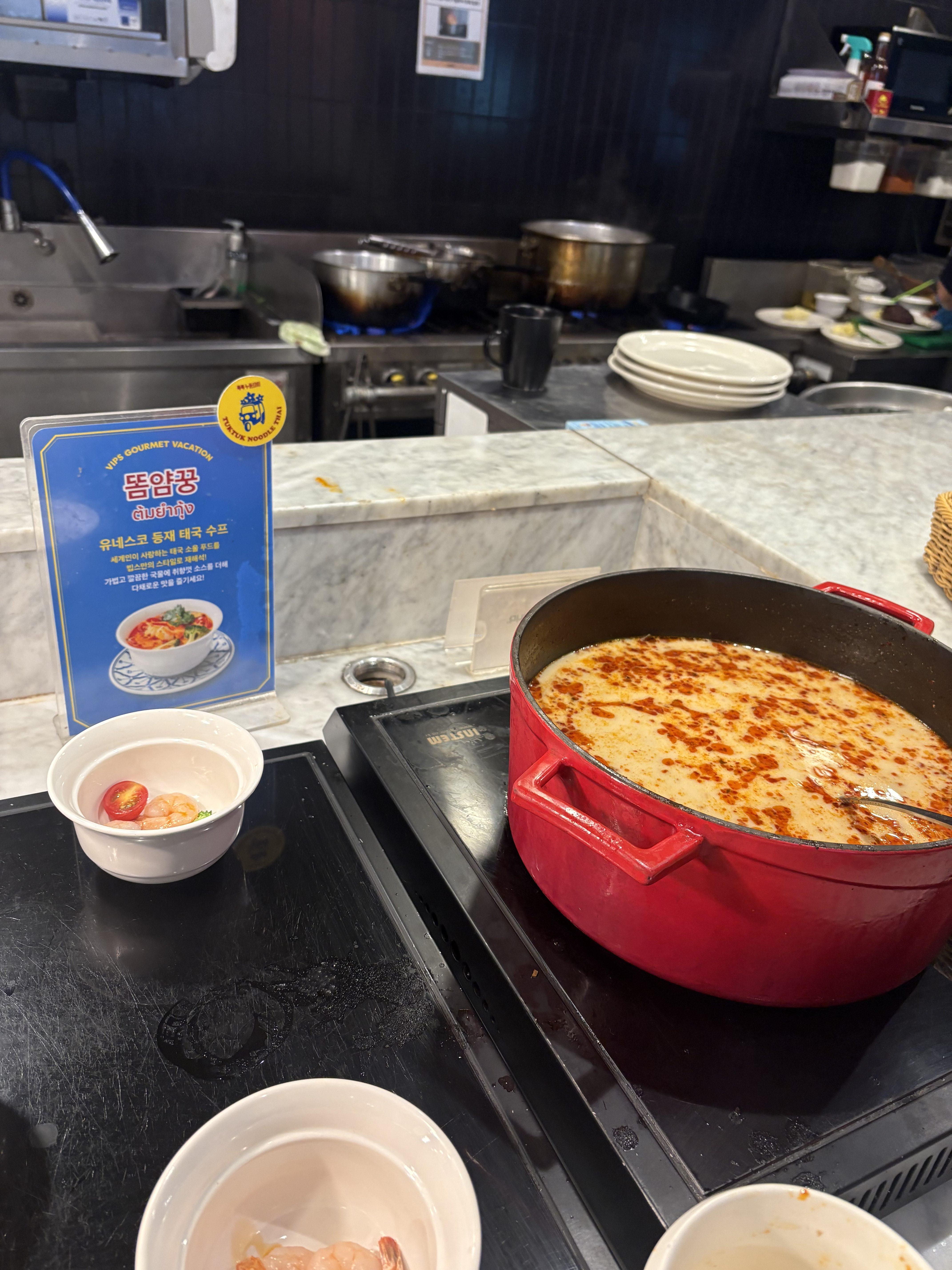 메인 메뉴인 연어나 치킨은 있었고 태국음식 위크인지 똠양꿍 등 유명한 태국음식들이 꽤 많이 있었다.