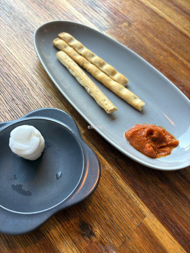 주문하자마자 작은 브레드스틱이 제공되었다.