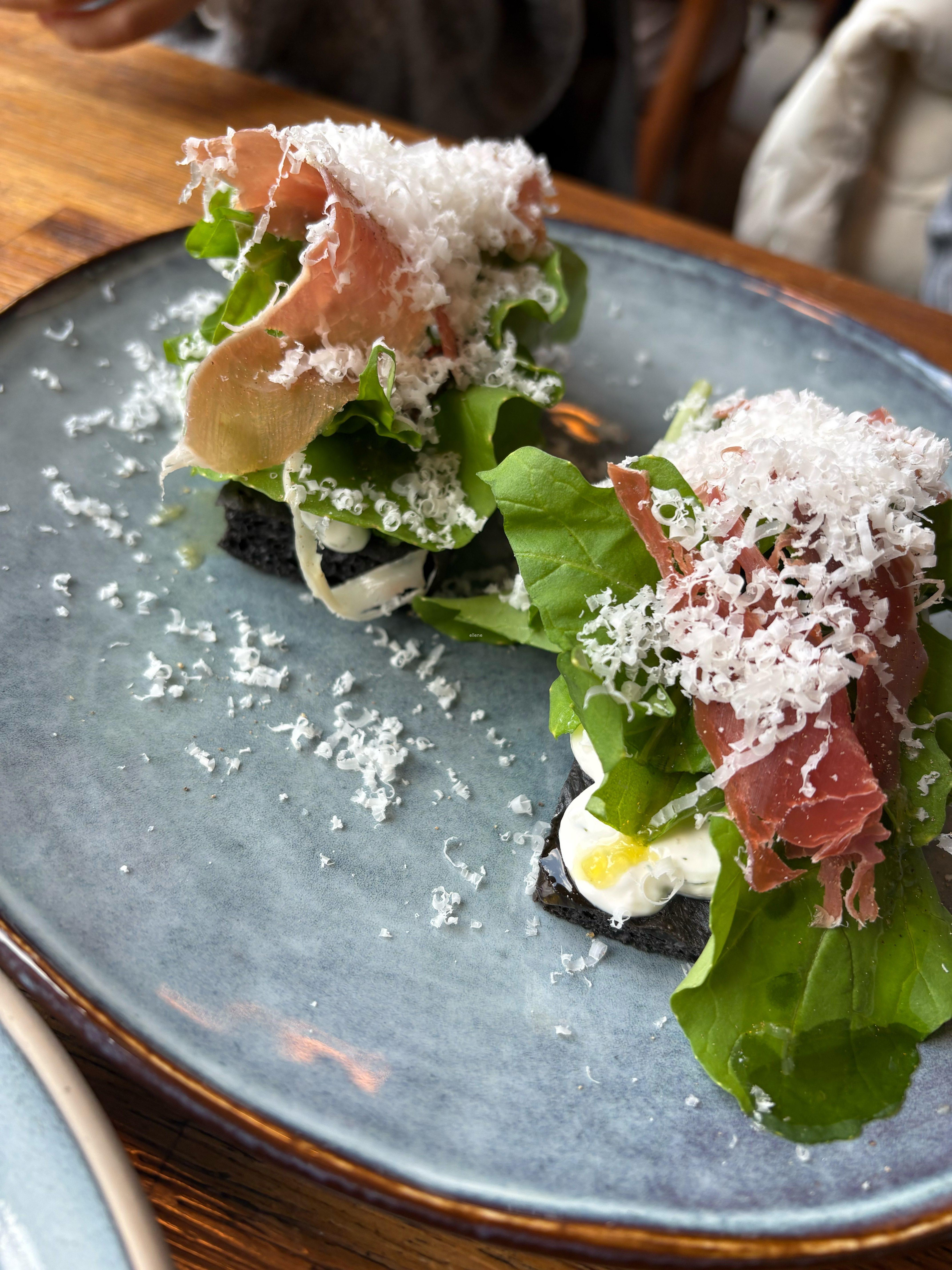 브루스게타 / 단새우 2피스(24,000원), 하몽 루꼴라 2피스(20,000원)