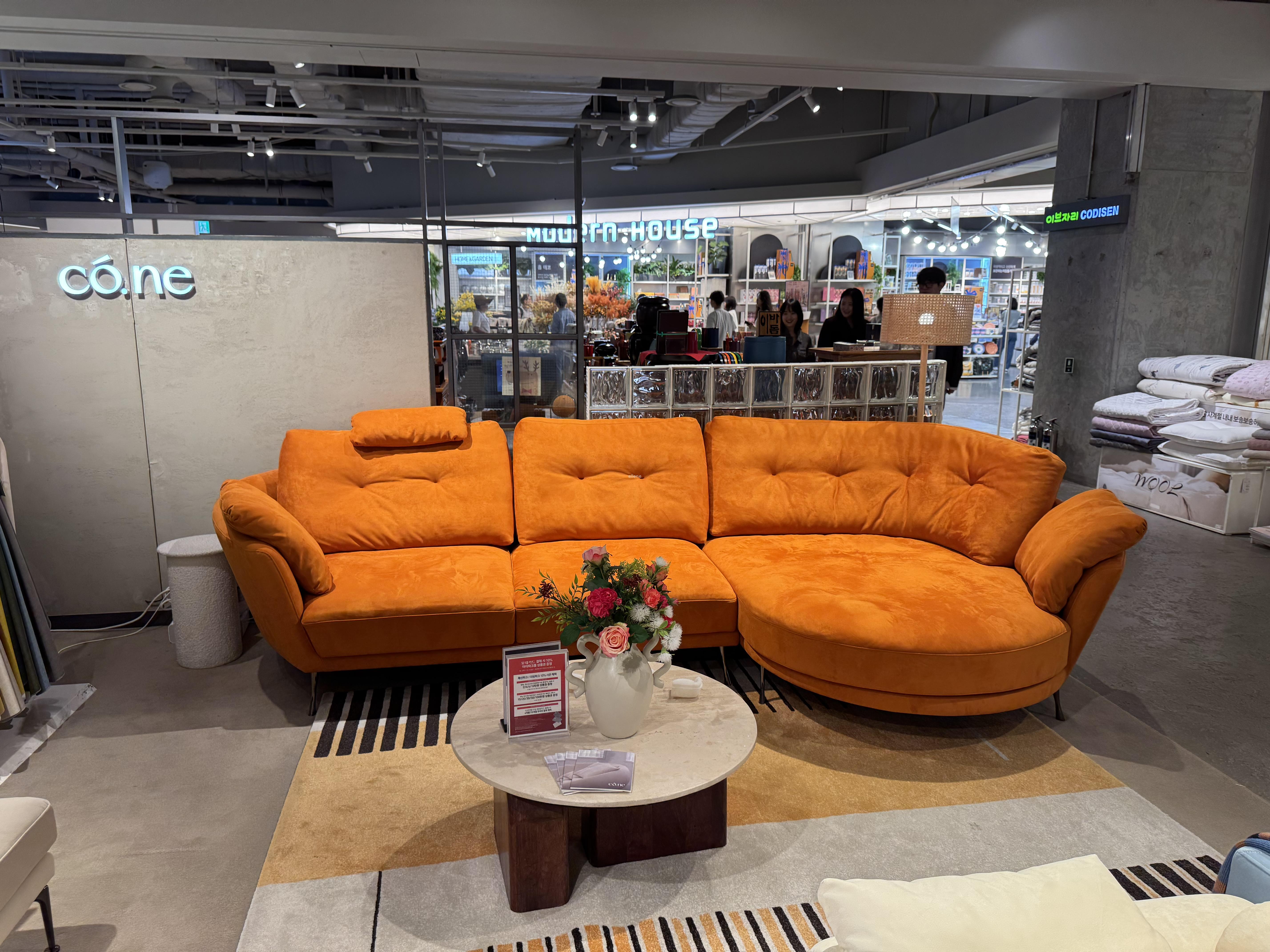 • West elm: 판교 현대백화점에서 소파 하나를 봤는데, 디자인이 꽤 예쁘더라고요. 수입 가구인 점도 마음에 들었어요.