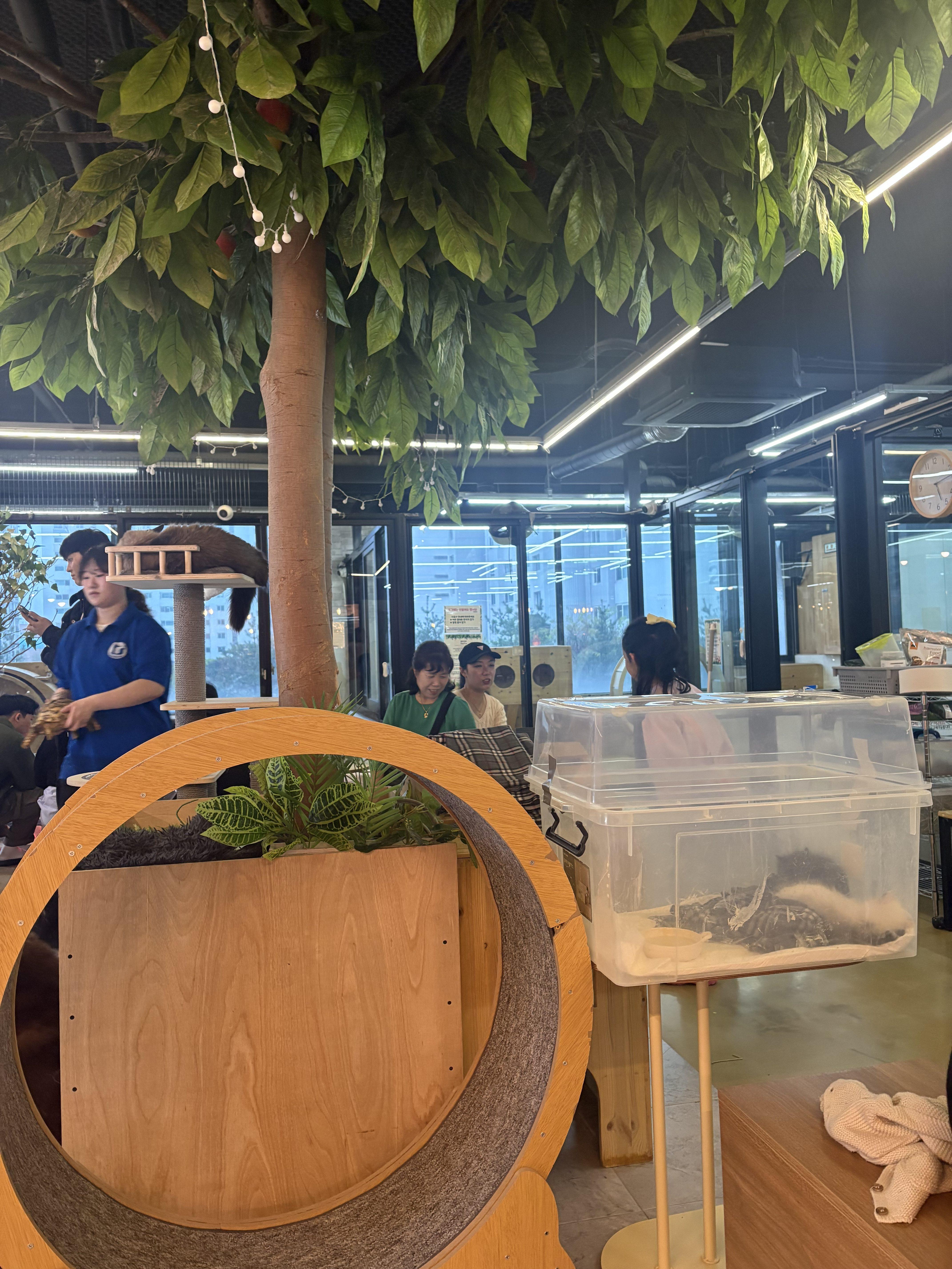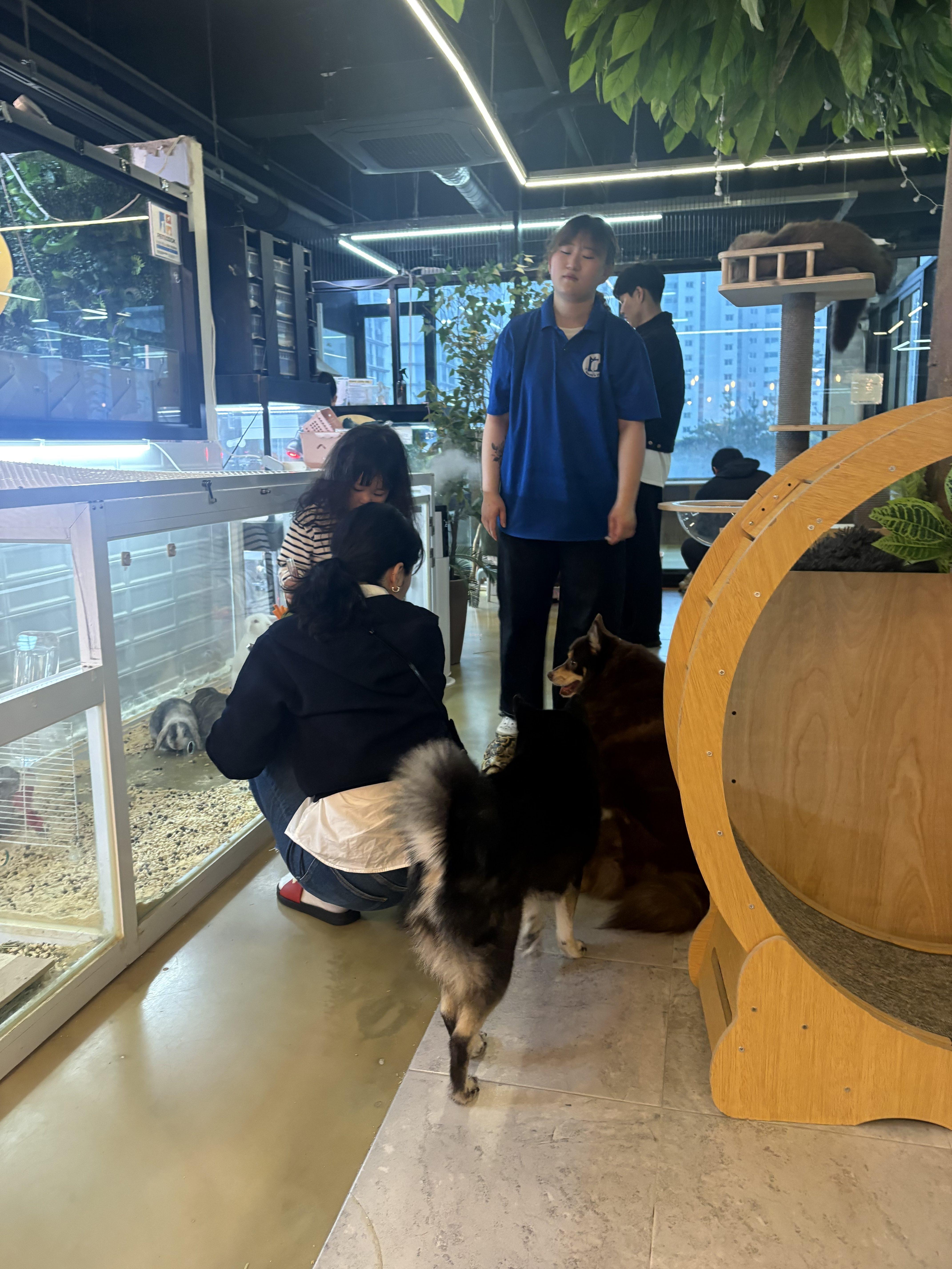 고객들도, 동물들도 하나가 되어 자유롭게 걸어다니고 교감하는 분위기였습니다.