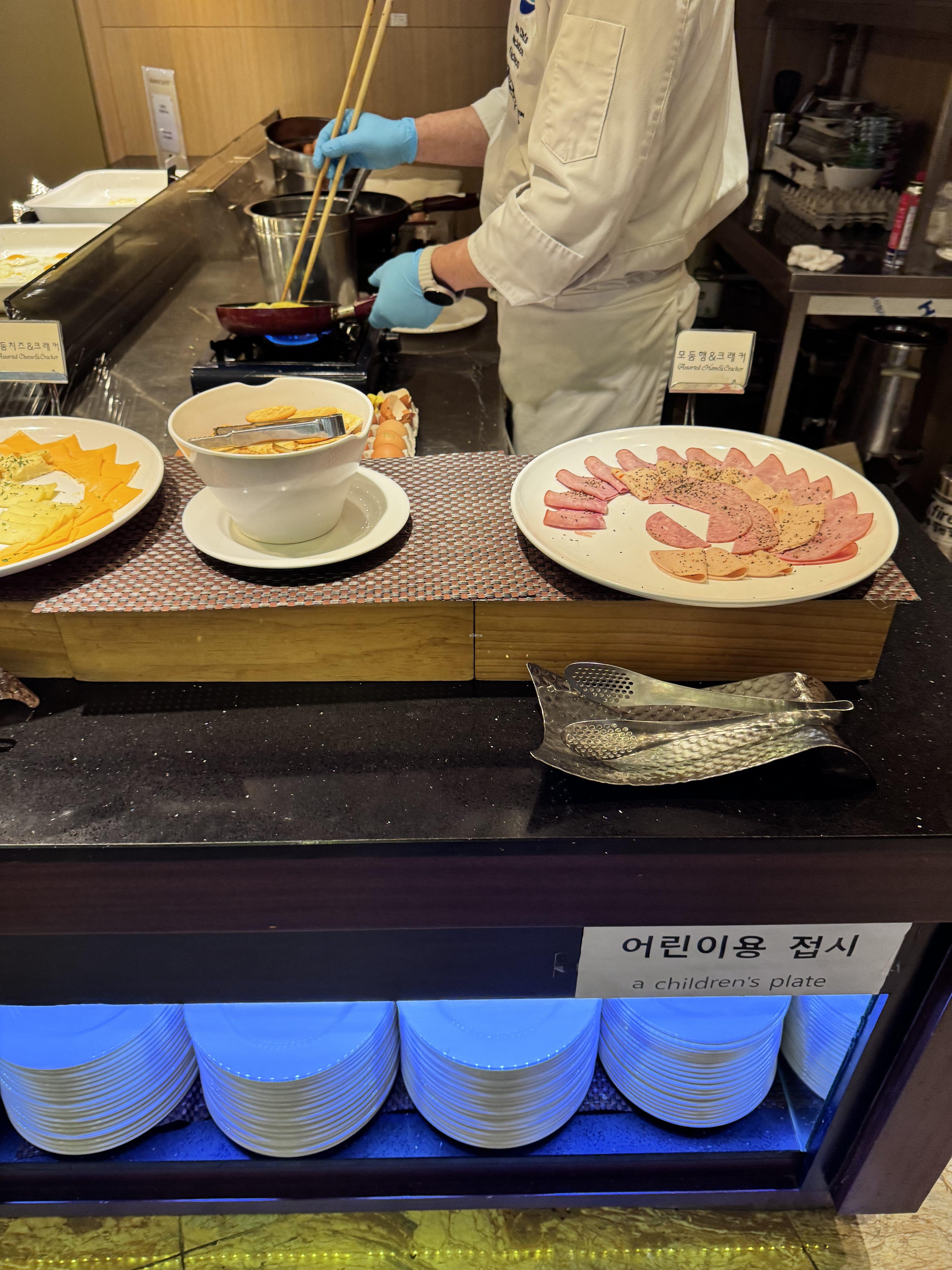 일반 뷔페에 있는 치즈, 햄, 달걀요리 등은 모두 있어요. 특히 달걀은 즉석에서 여러가지 형태로 만들어주신답니다.