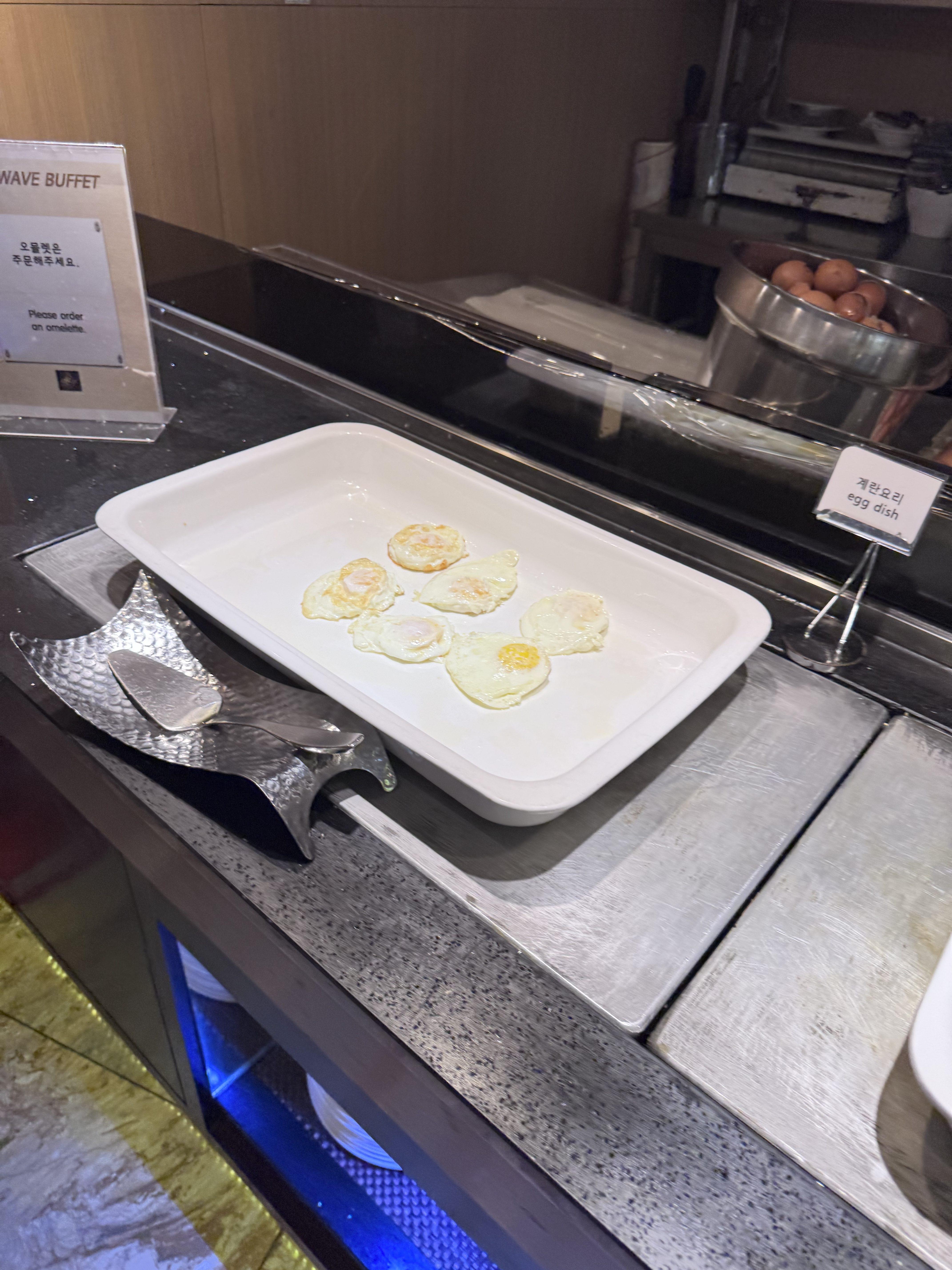 오믈렛, 완숙, 반숙, 말씀드리는대로 다 해주시고 이미 조리된 프라이도 있어서 계란은 정말 양껏 먹었어요.
