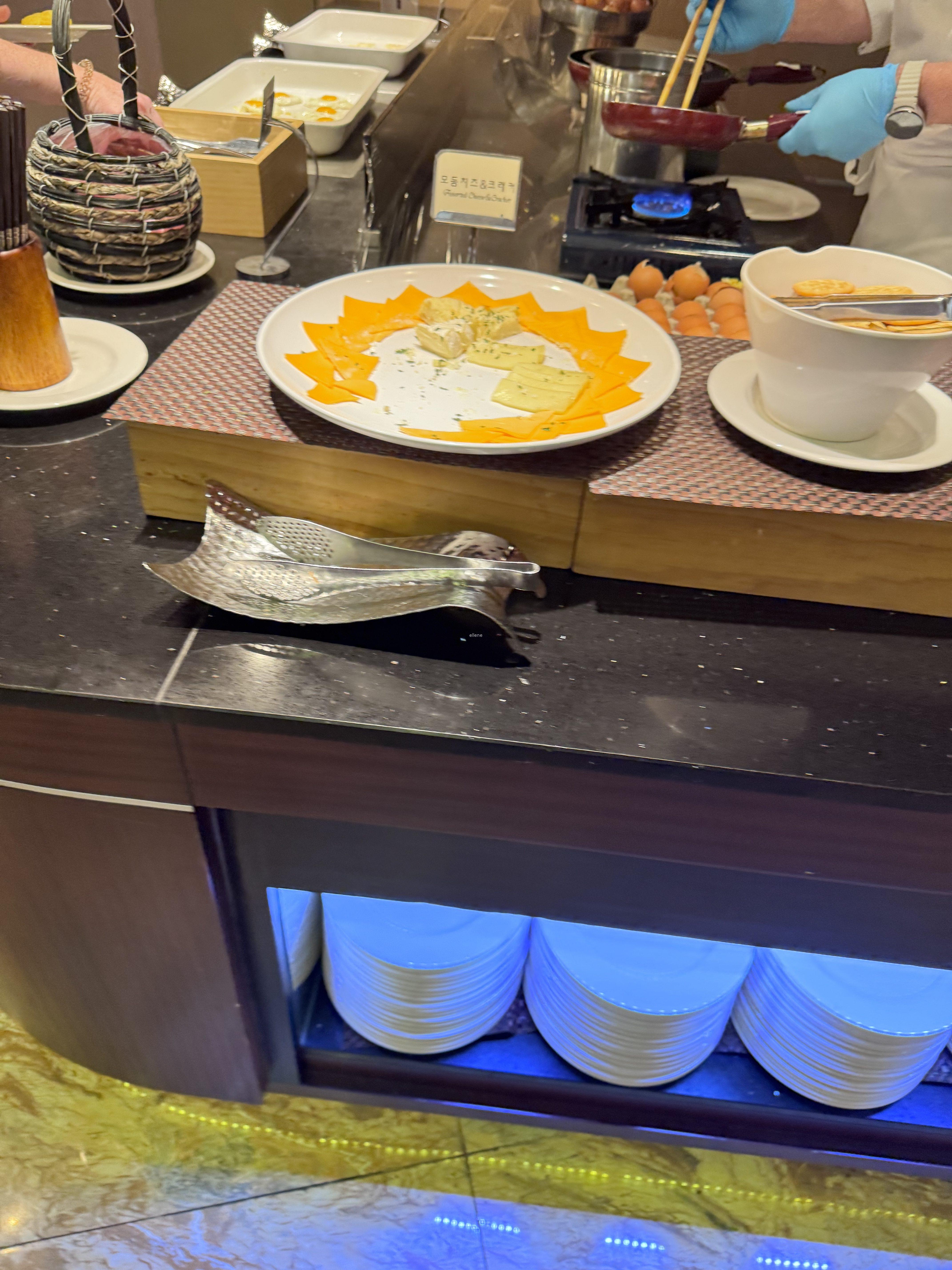 일반 뷔페에 있는 치즈, 햄, 달걀요리 등은 모두 있어요. 특히 달걀은 즉석에서 여러가지 형태로 만들어주신답니다.