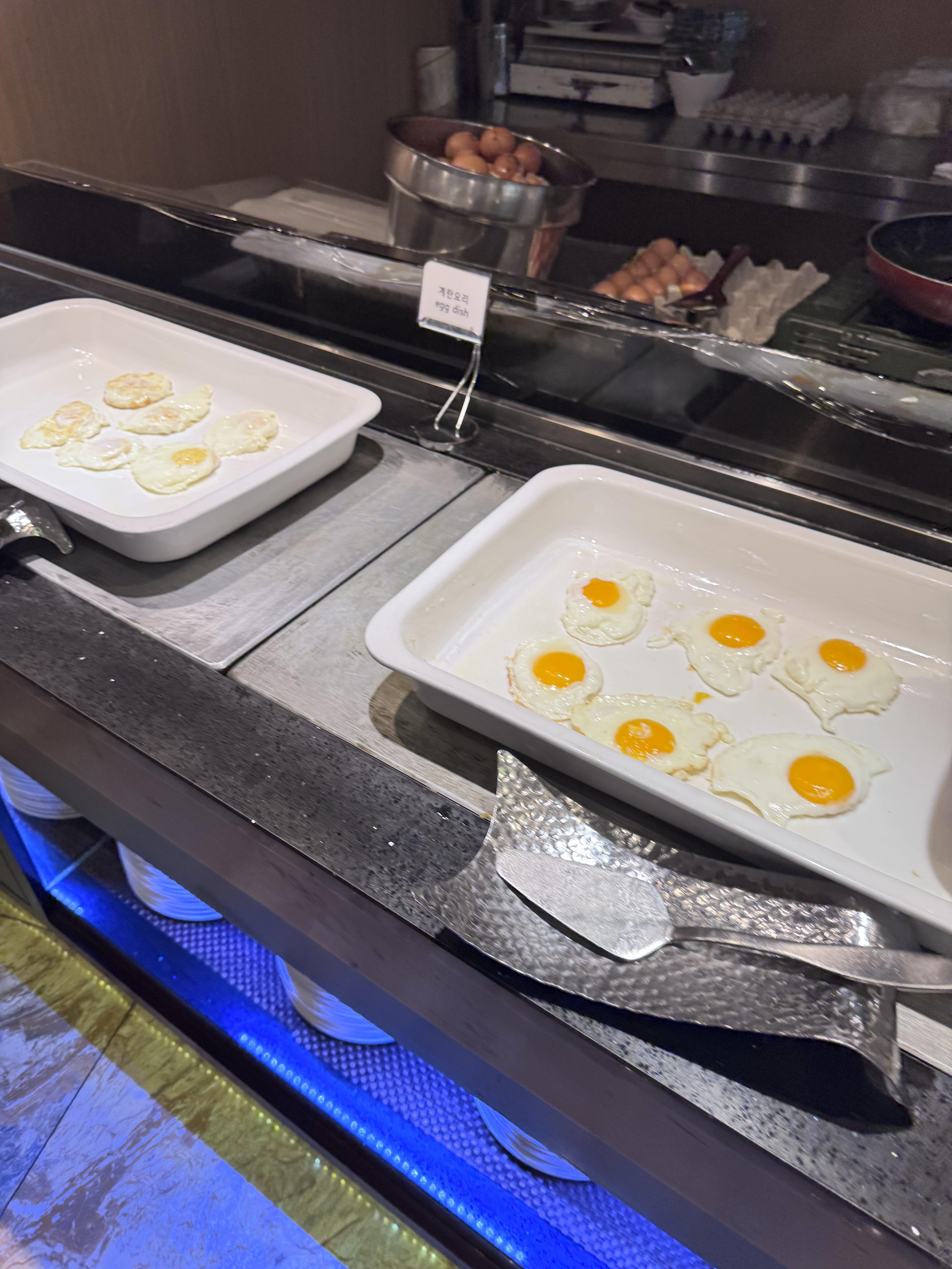 오믈렛, 완숙, 반숙, 말씀드리는대로 다 해주시고 이미 조리된 프라이도 있어서 계란은 정말 양껏 먹었어요.