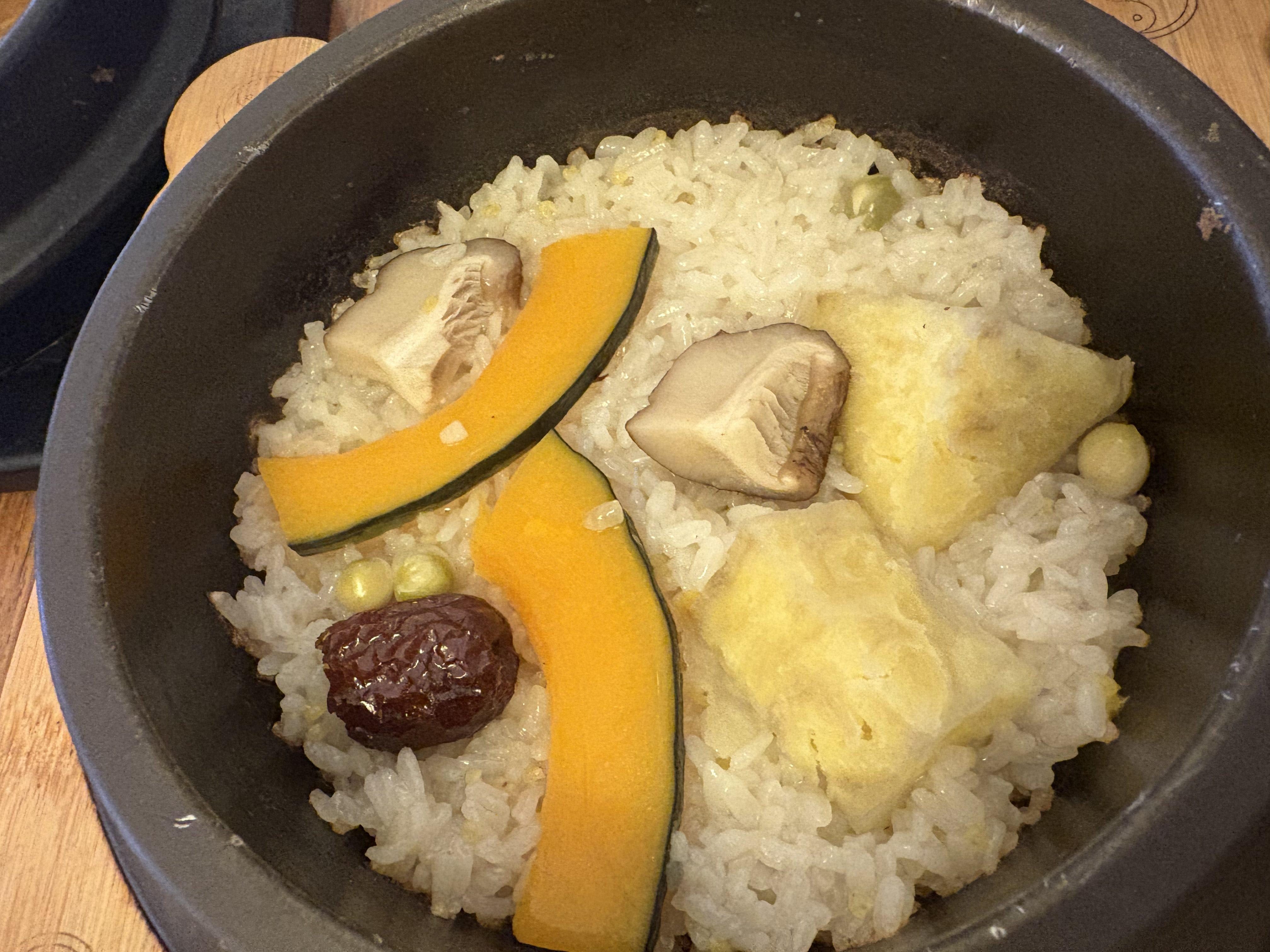 제가 제일 좋아하는 솥밥! 구성도 아주 알차더라구요. 밥 위에 대추, 은행, 버섯, 고구마, 호박까지..!