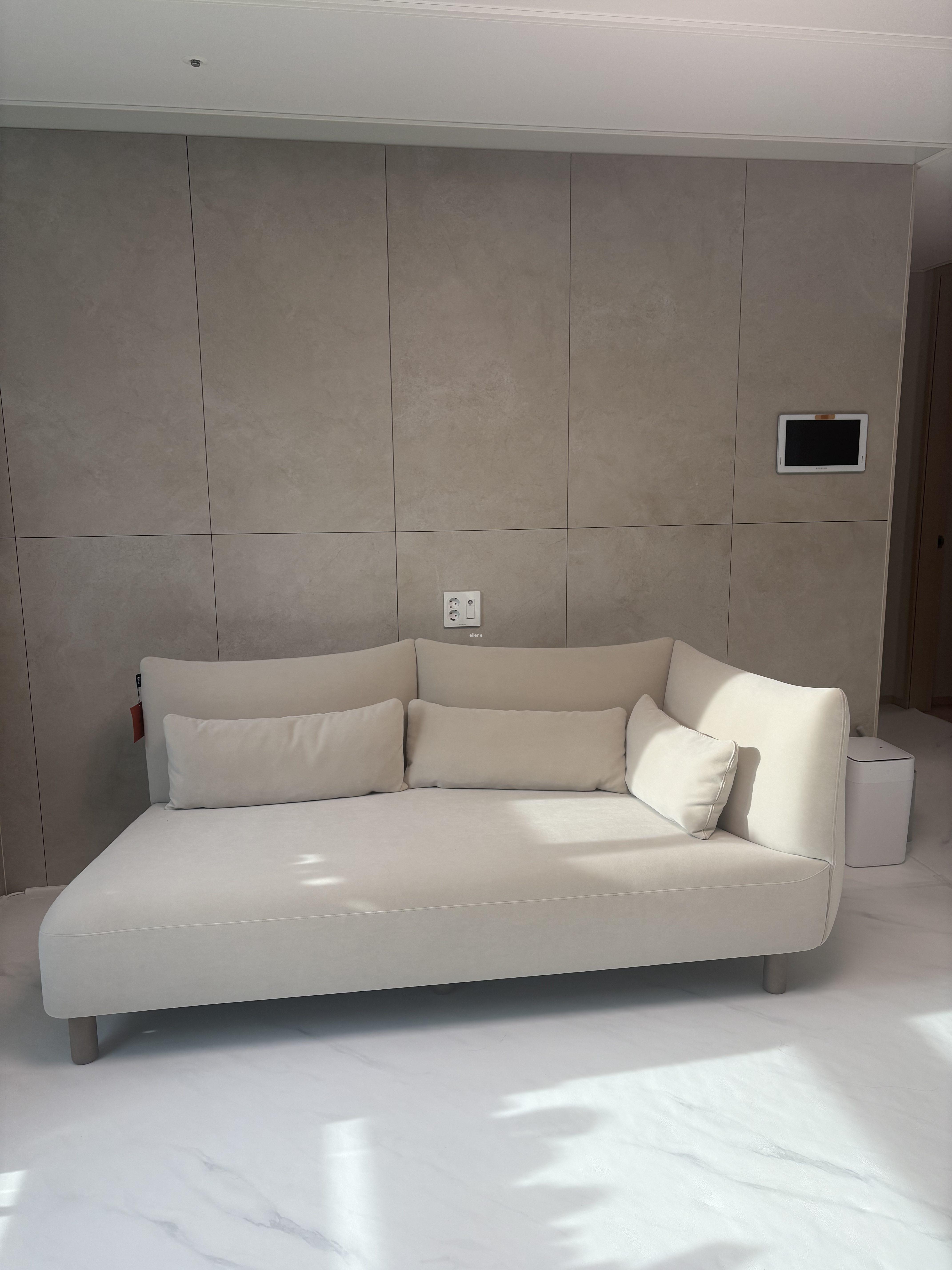 패브릭 소재의 밝은 색 소파라 아무래도 이염이 조금 걱정되지만,