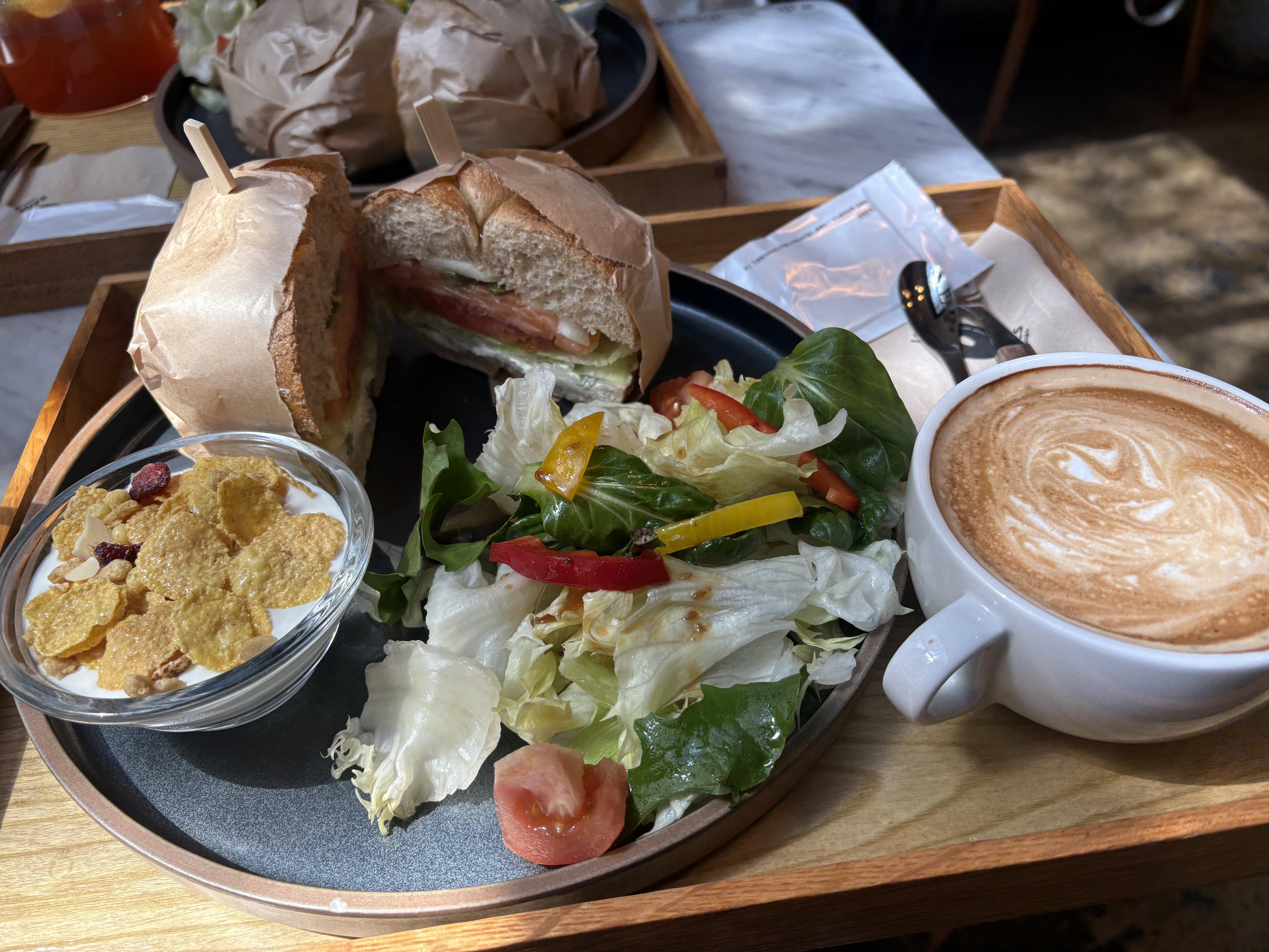 연어 베이글은 정말 크고 통통하다. 같은 트레이에 샐러드, 요거트도 조금씩 나와서 마치 호텔 조식인 양 식사 겸 브런치를 즐길 수 있다.