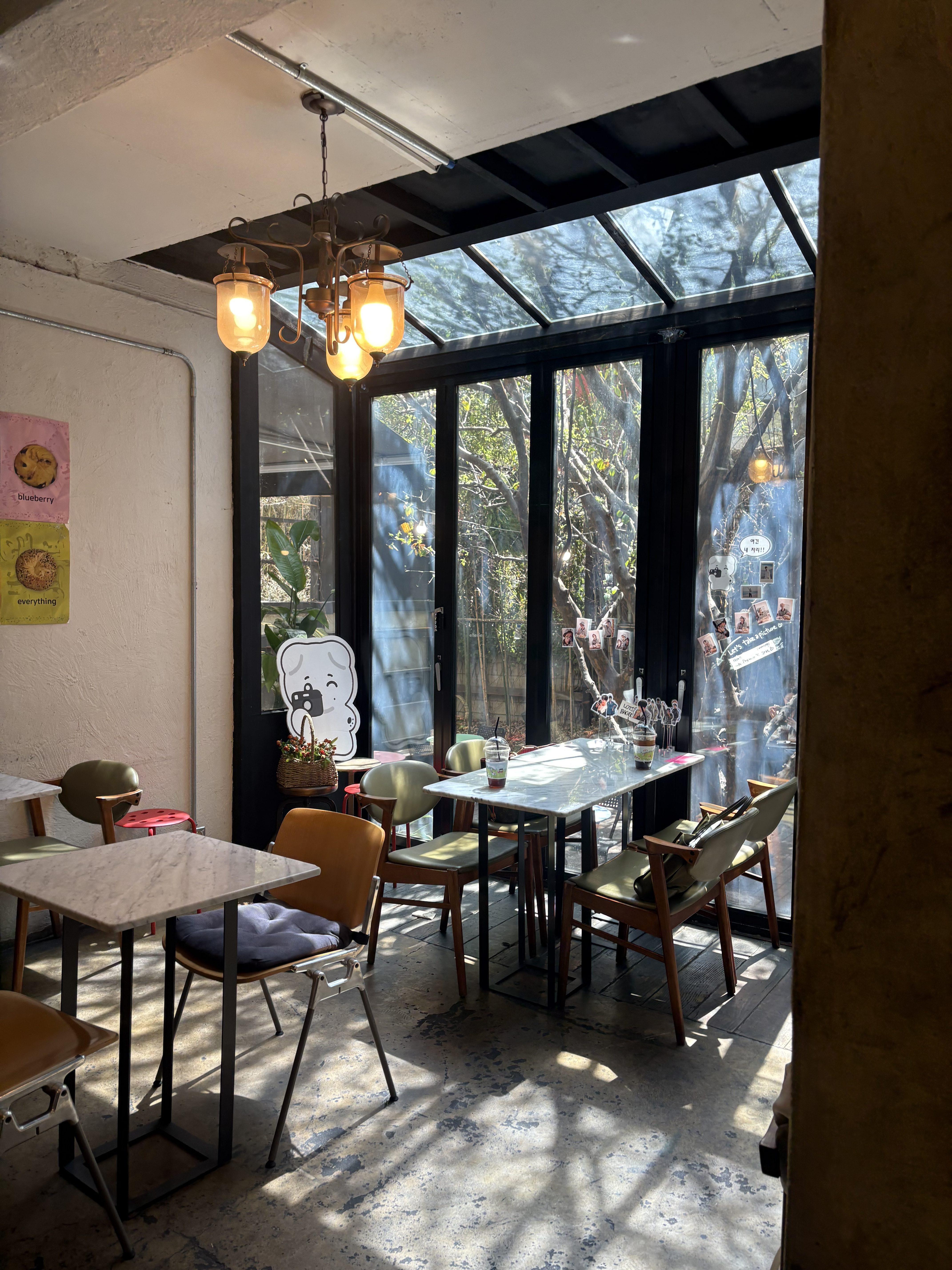 나는 2층보다는 1층을 원했고, 테라스도 좋긴 하지만 한낮이 되면 햇살이 너무 뜨거울 것 같기도 해서 볕이 잘 드는 1층 창가자리에 앉았다.