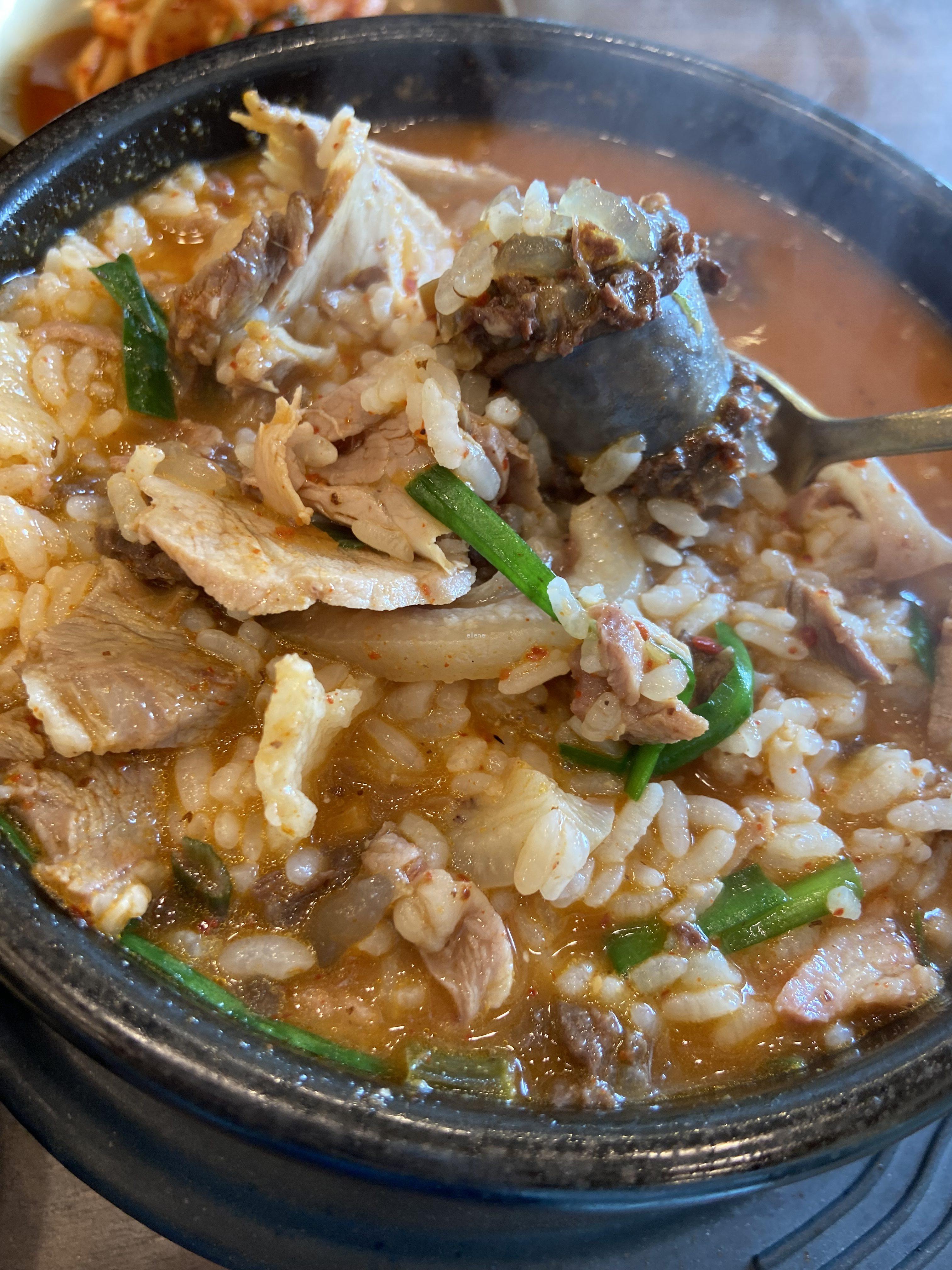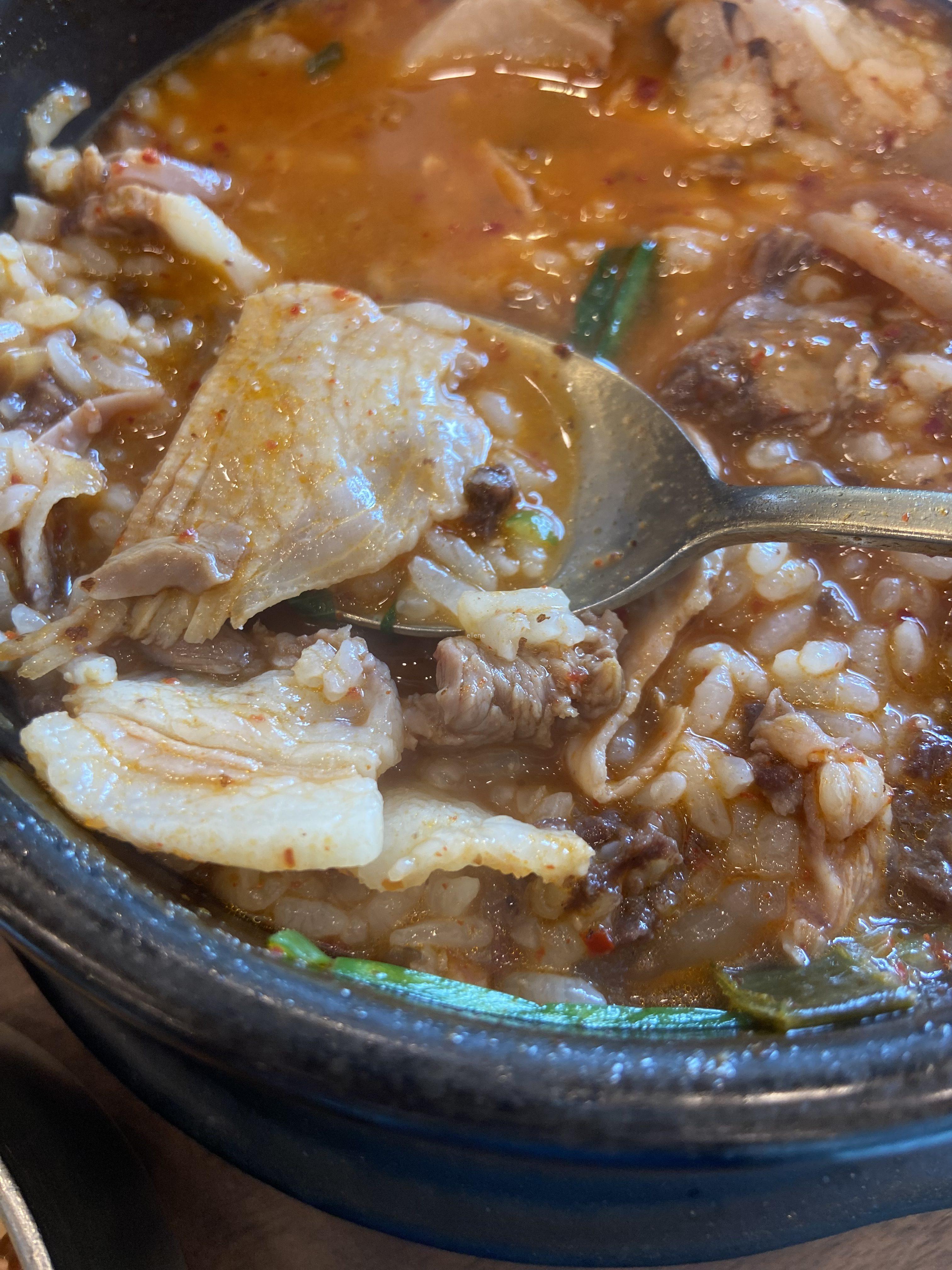 저는 가족들과 식사할 때 밥을 국에 말아먹는 편이에요. 그래서 흰 밥을 순대국에 모두 넣은 후 밥과 국물을 함께 먹었어요.