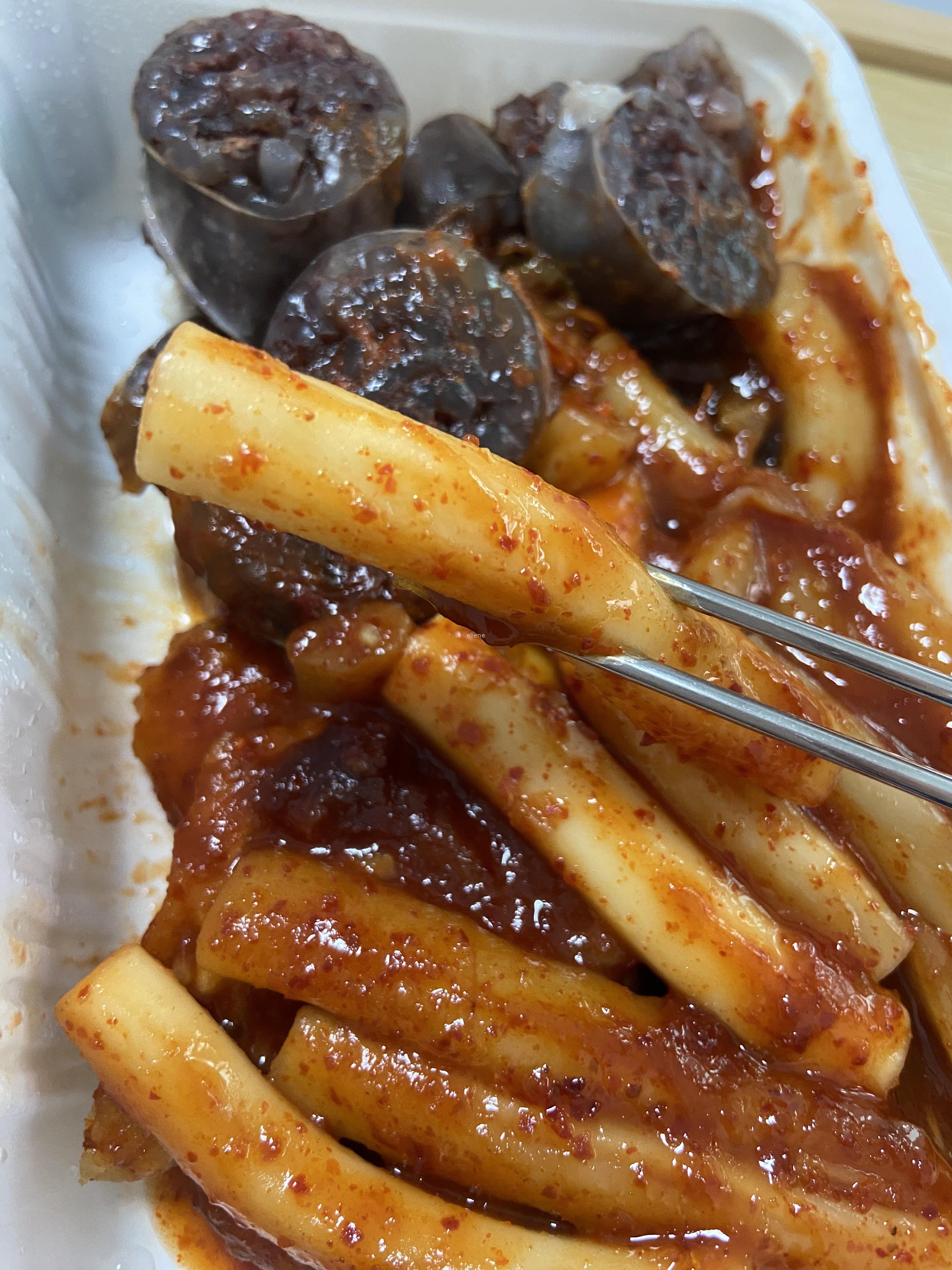 먹어보니 밀떡이 얇아서 그런지 떡에 간이 잘 배어있었다. 양념은 많이 맵지 않았는데, 약간 새콤한 맛이 났다.
