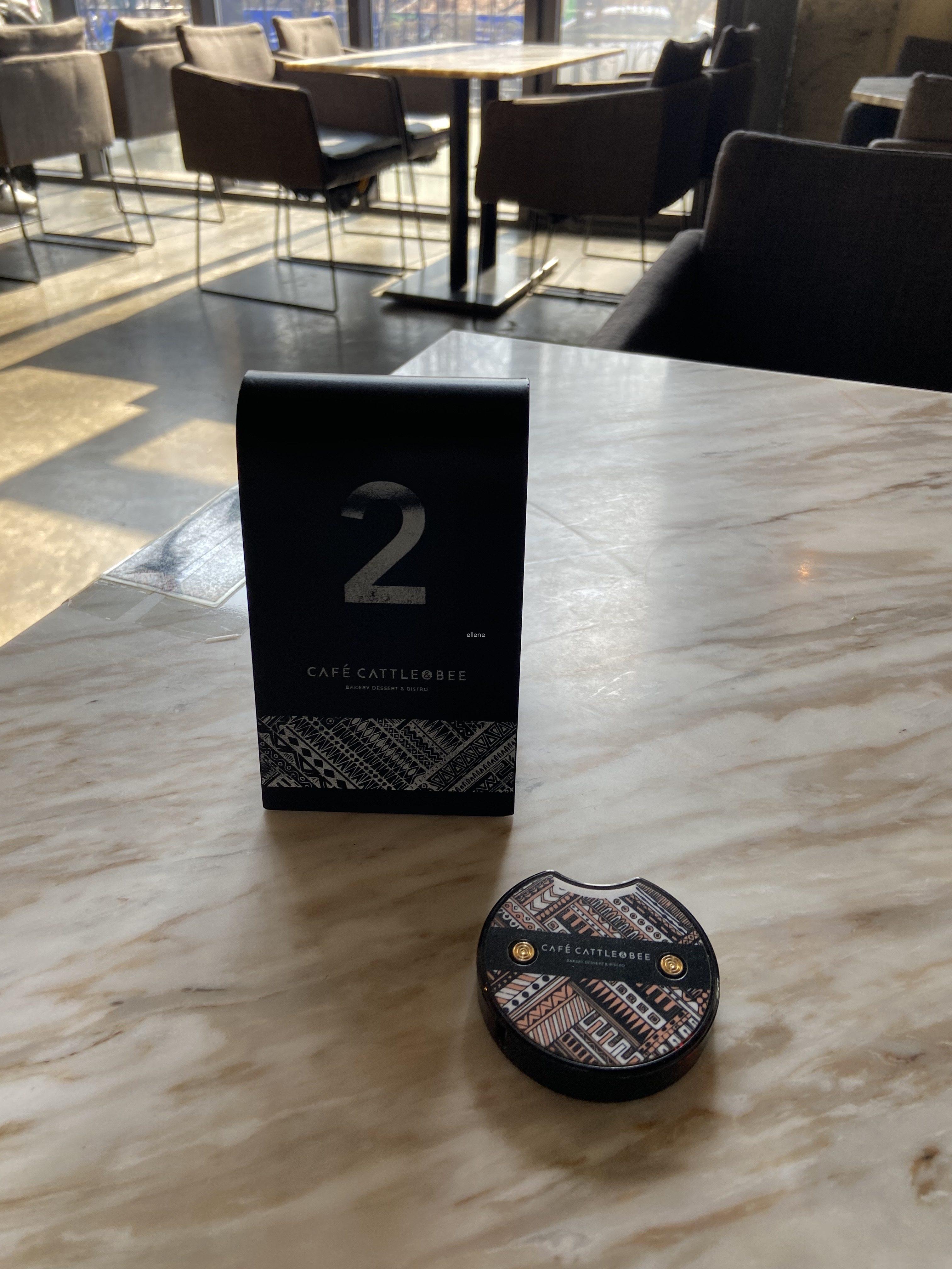 카운터에서 음식을 주문하면 직원이 번호가 적힌 스탠드를 하나 준다. 이 스탠드를 받아 테이블 위에 잘 보이도록 올려두어야, 나중에 직원이 메뉴를 가져다준다. 나는 2번 스탠드를 테이블에 올려두고 음식이 나올 때까지 기다렸다.