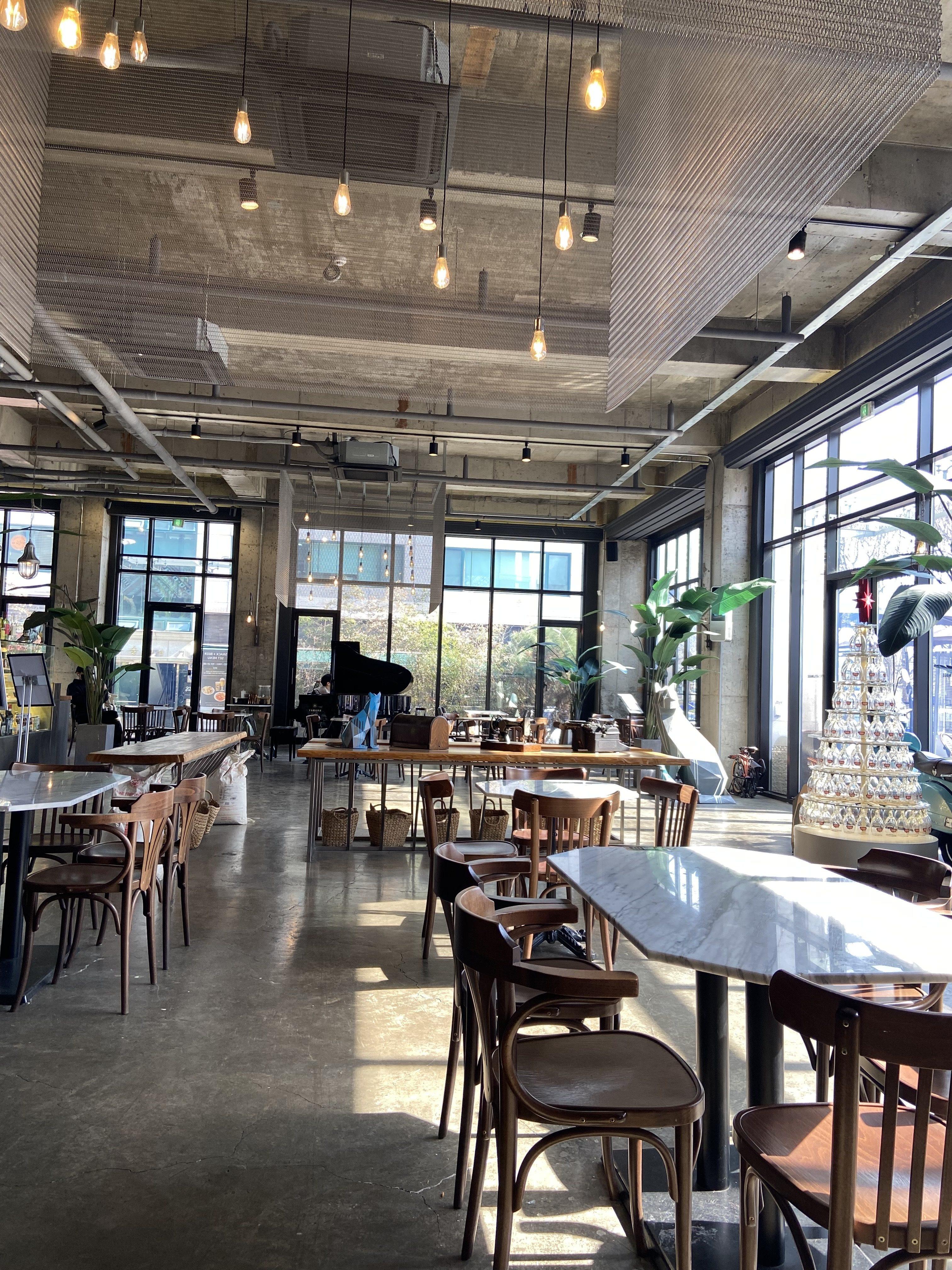 오랜만에 방문해도 브런치 카페 특유의 세련되고 탁 트인 분위기는 여전하더라. 층고도 높고, 통유리라 빛도 잘 들어오고, 테이블 간격도 매우 넓어 쾌적하다.