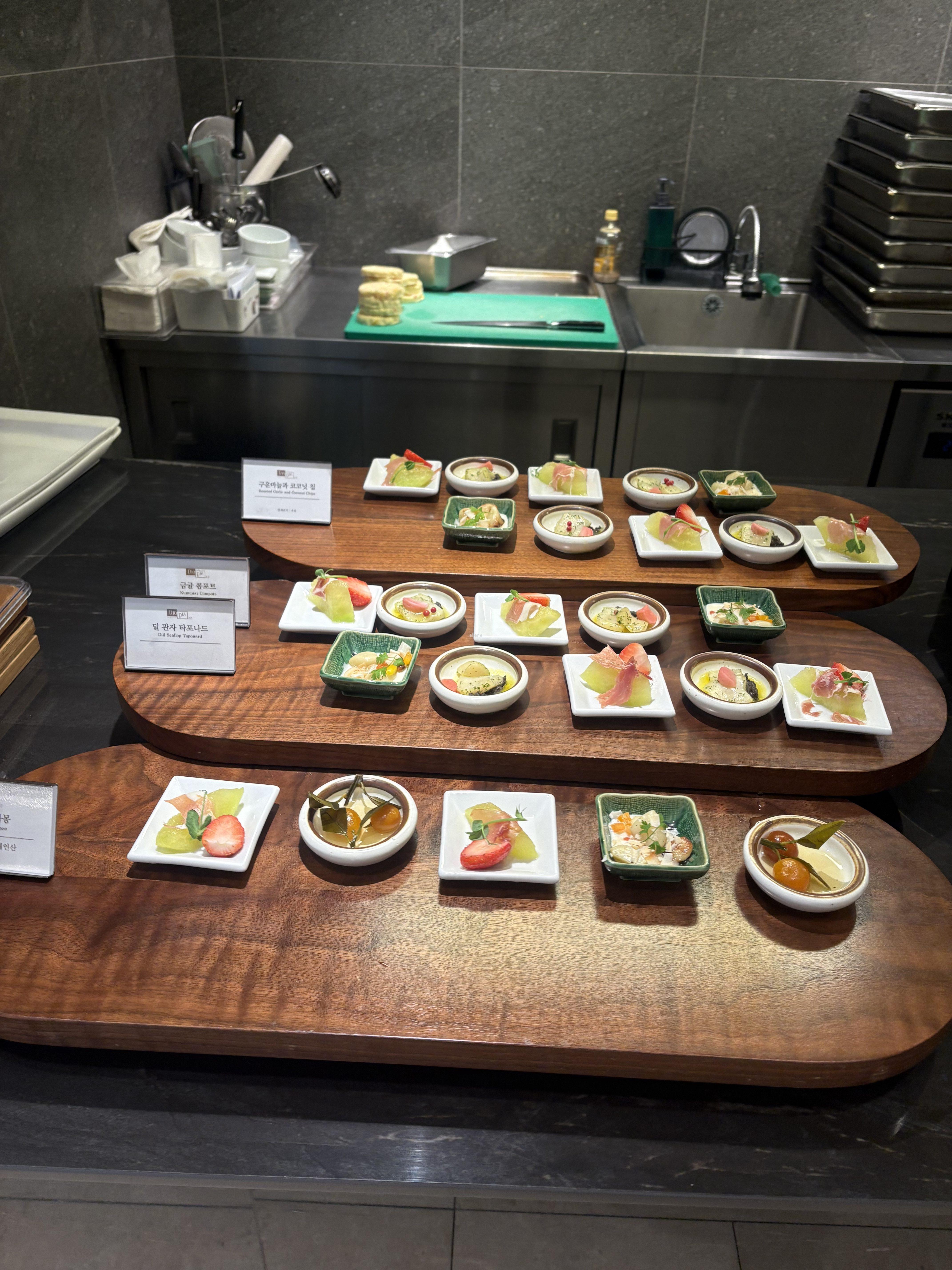 샐러드도 종류가 참 다양했다. 연어 샐러드, 단호박 샐러드, 토마토 등.