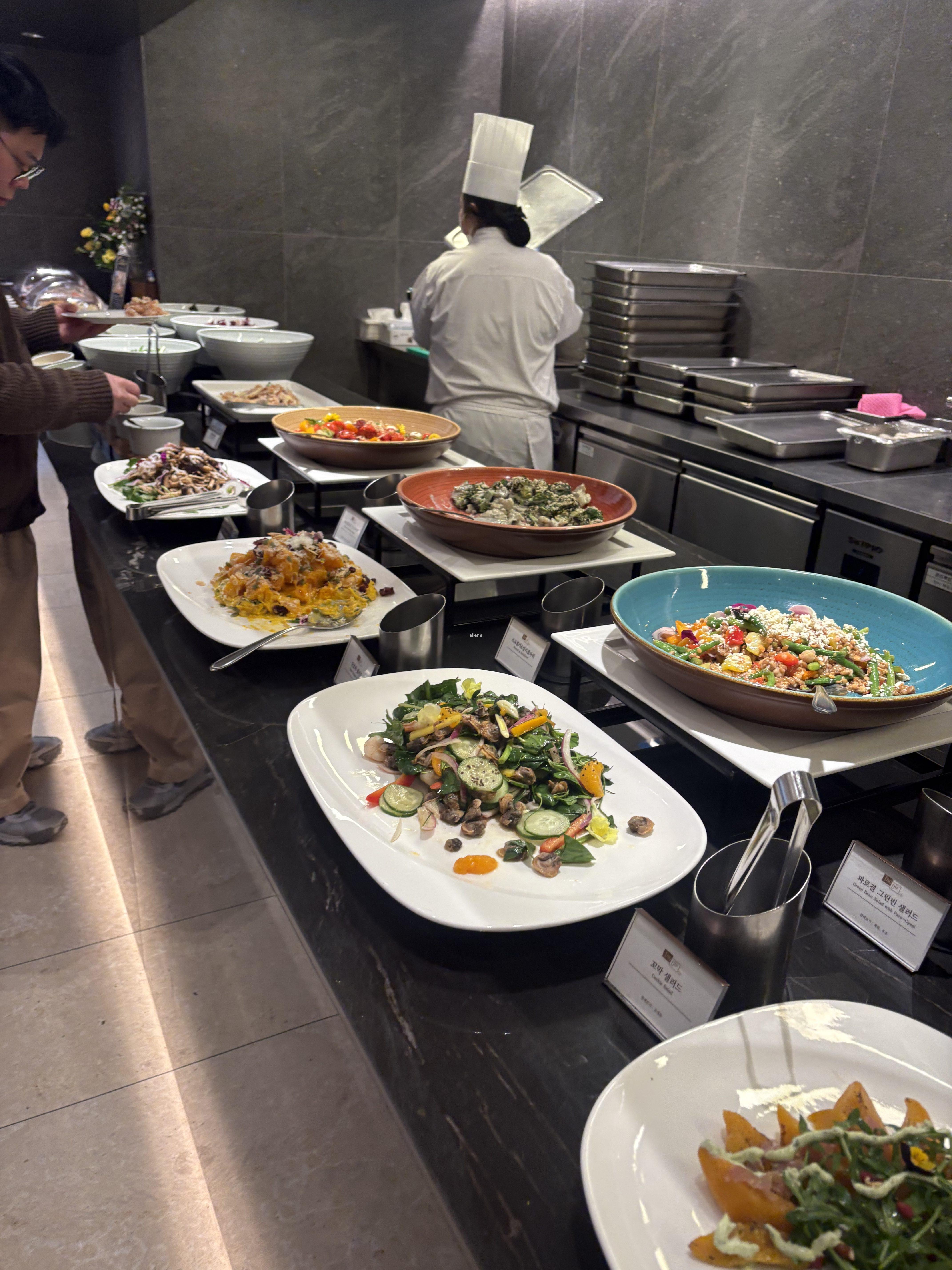 내가 가져온 첫 접시. 그 다음 접시는 식사하느라 다 찍지 못했지만, 아무튼 음식이 모두 맛있고 간도 적절했다.